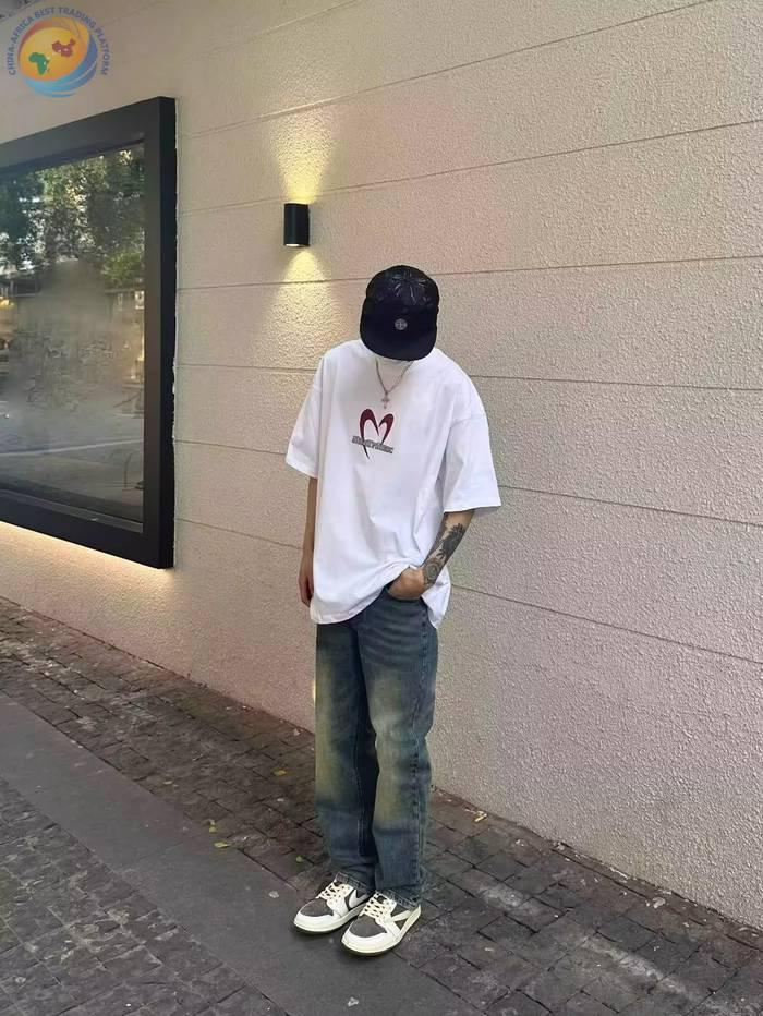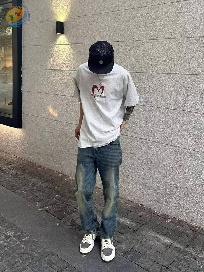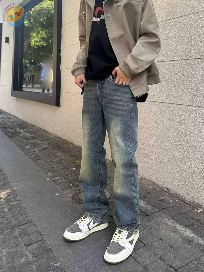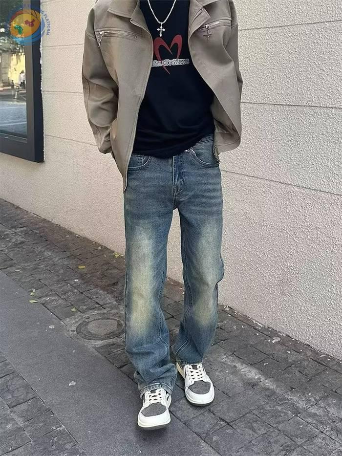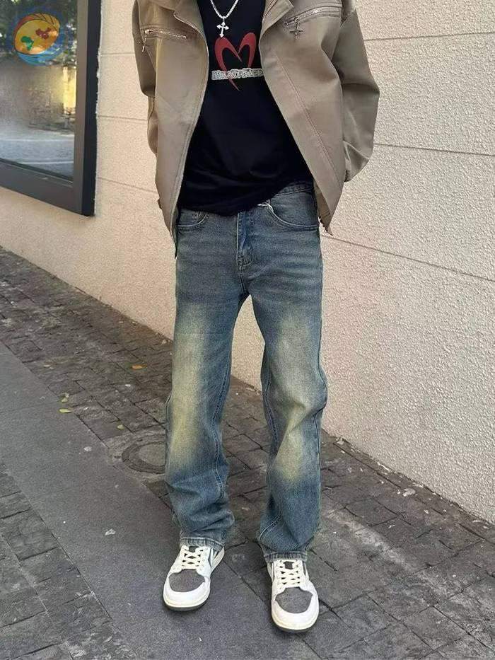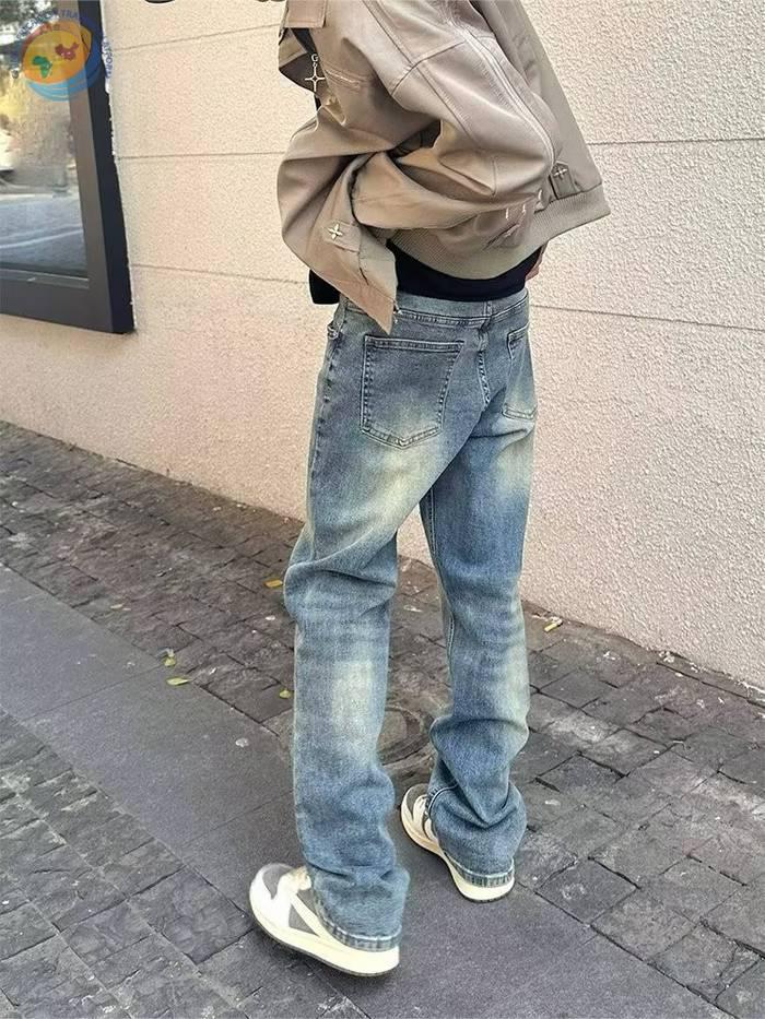 Men's Jeans American High street wash made old blue jeans slim loose trend all match straight leg pants