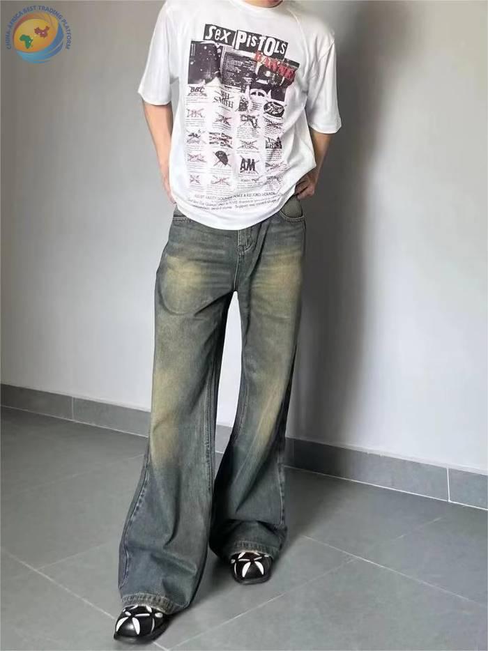 Men's Jeans High Street jeans Spring and autumn new loose straight wash to make old vintage pants