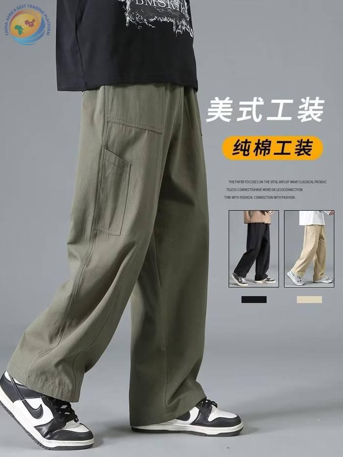 New solid color overalls Youth popular loose summer male fashion fashion trend brand casual pants long pants