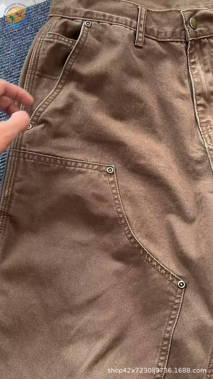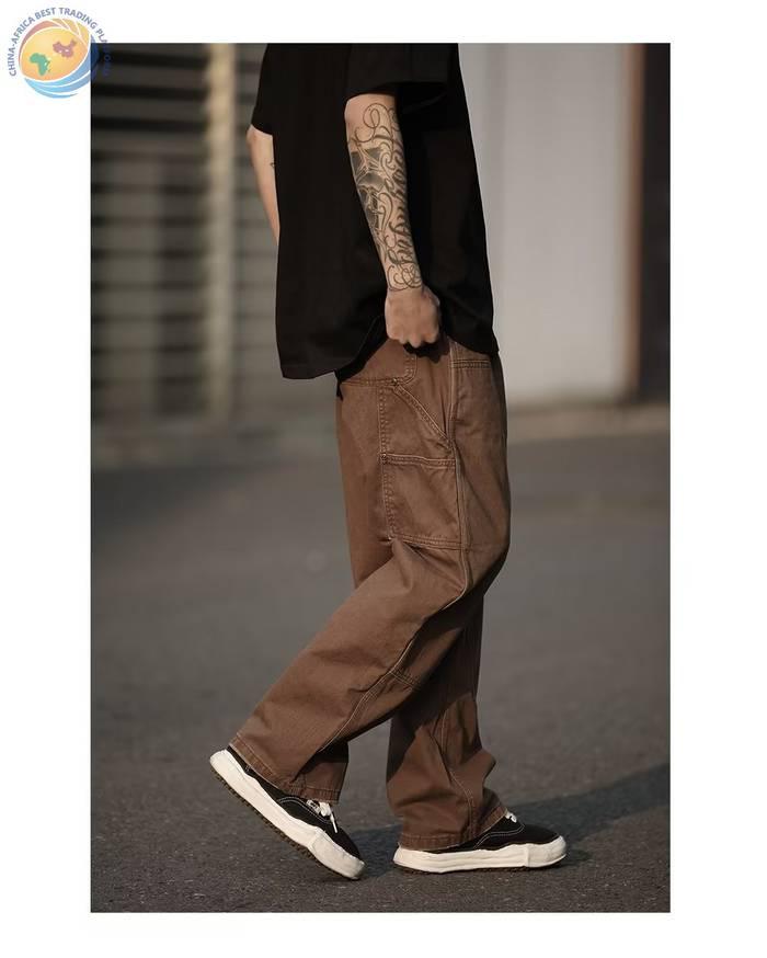 Men's Overalls Men's High Street straight leg casual pants trend i loose wide-leg pants