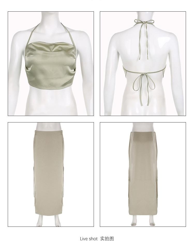 Sexy island vacation style halter halter with satin swing neck loose lace-up slit dress set