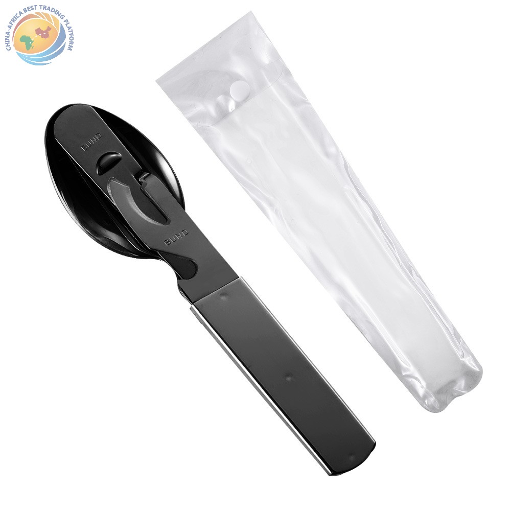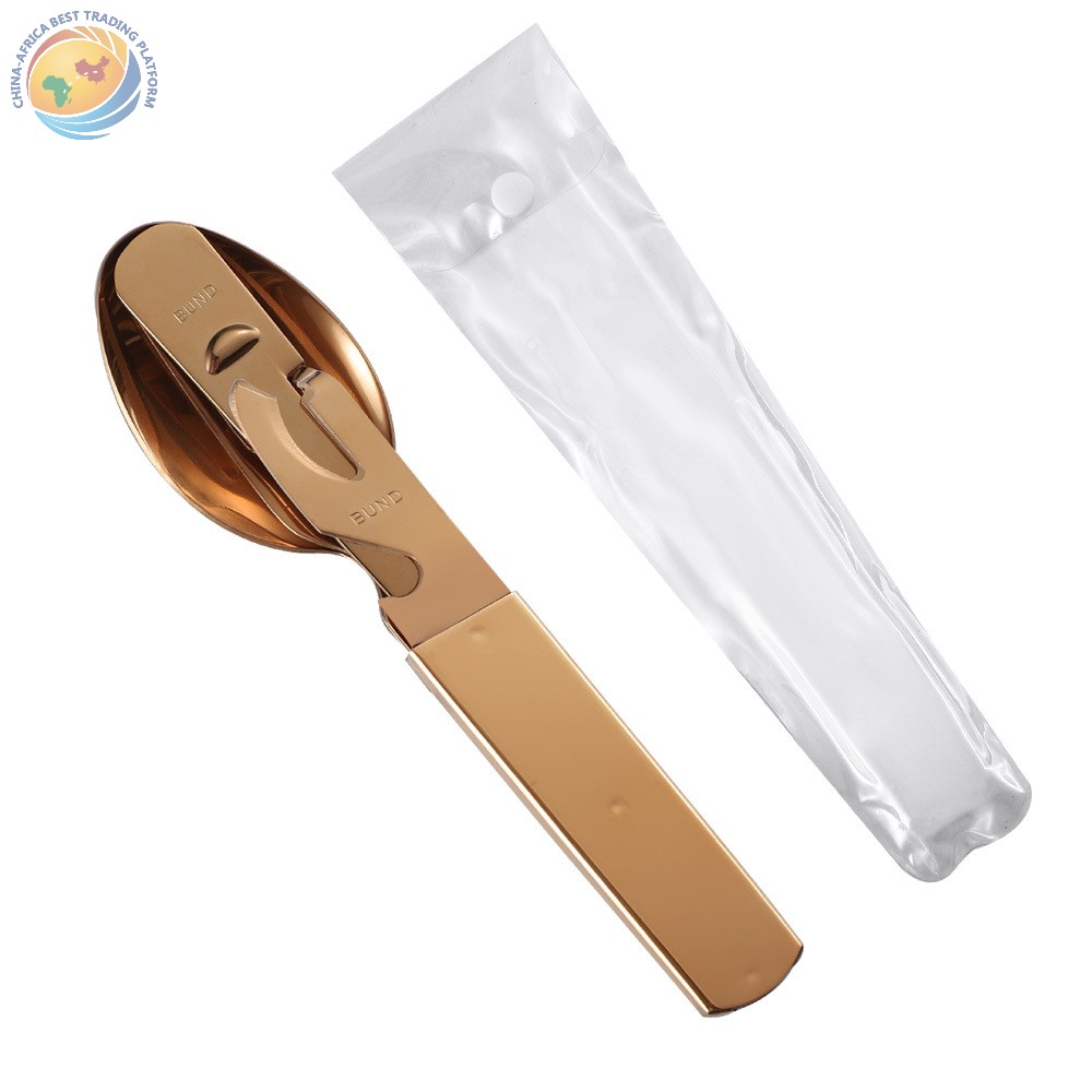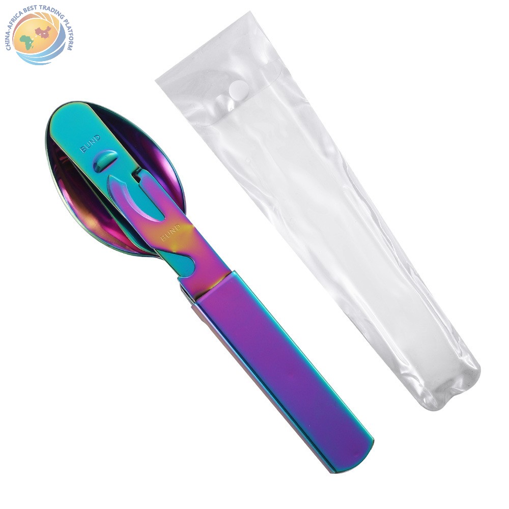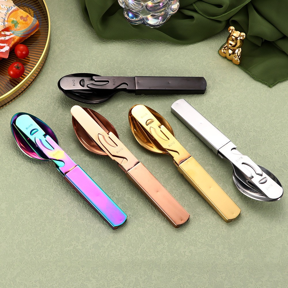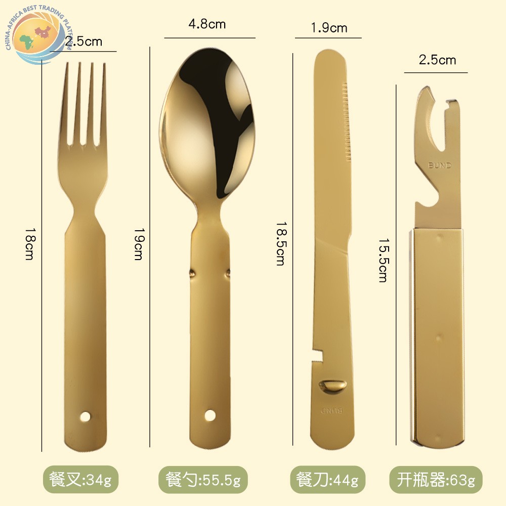 Outdoor Camping Titanium Pvd Stainless Steel 304 Portable Cutlery Set With Opener Knife Spoon Fork