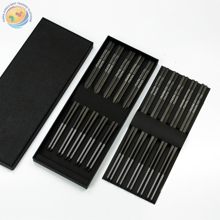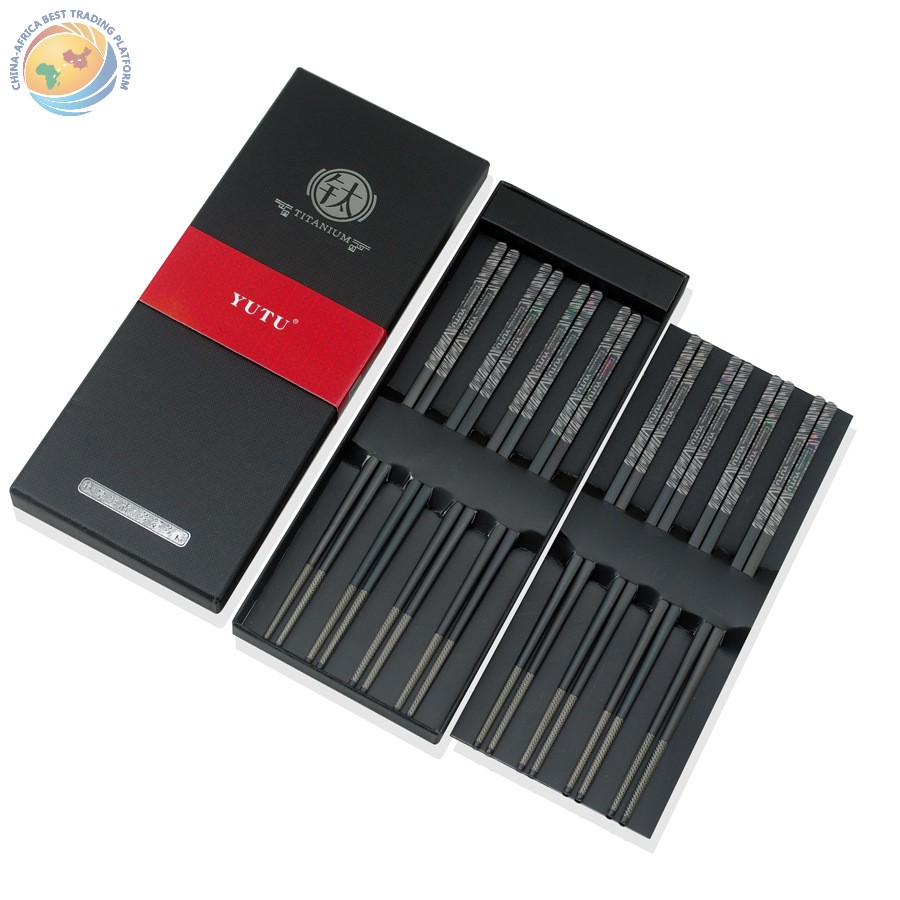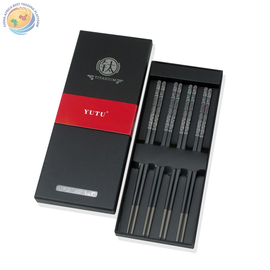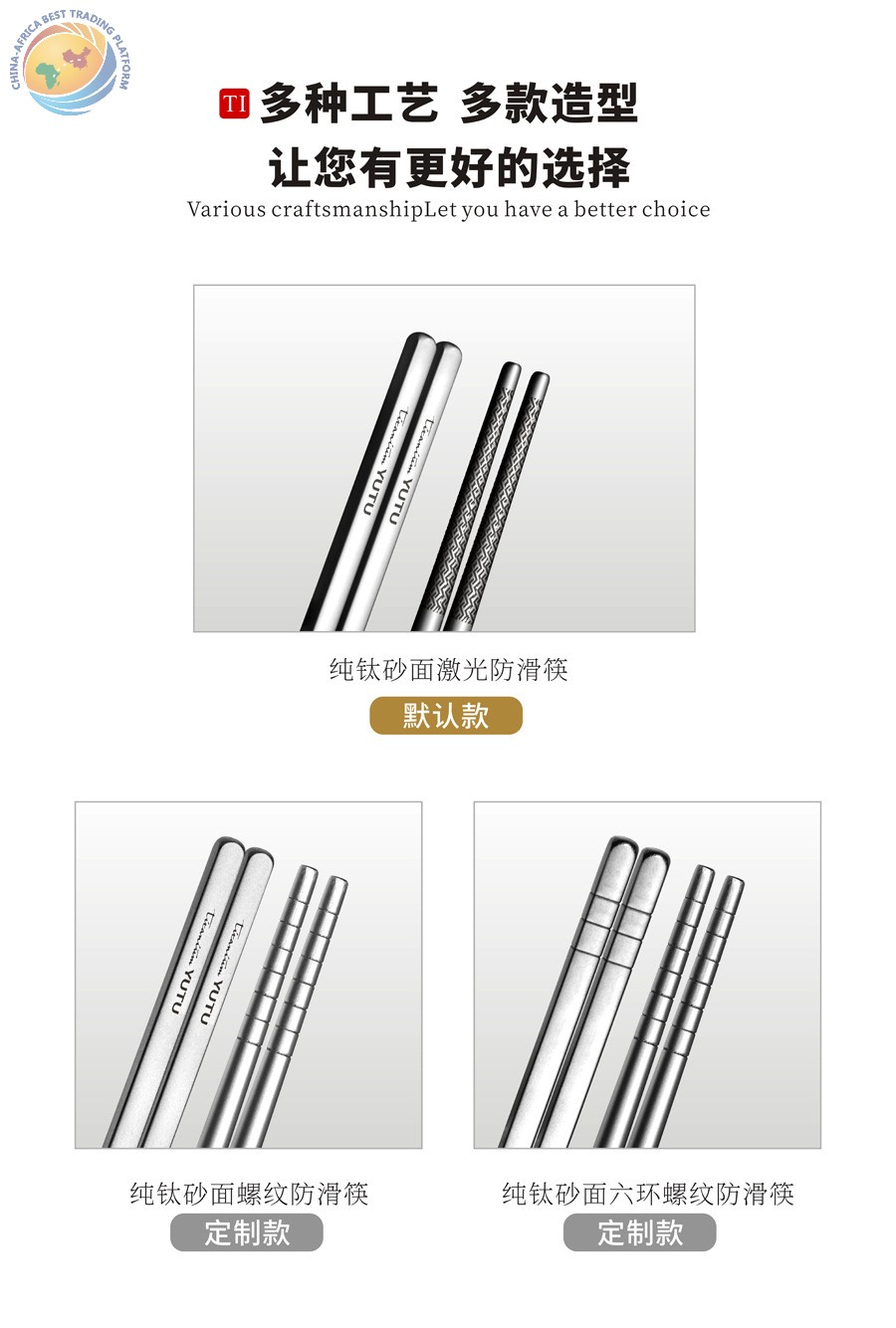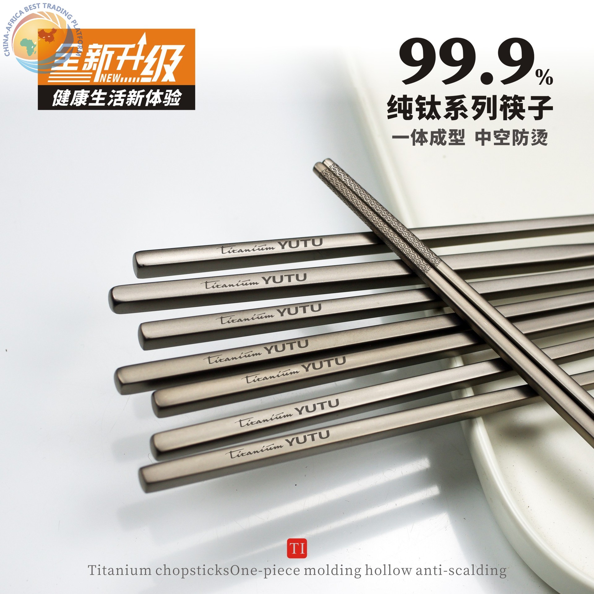 纯钛筷子家用野营钛餐具防滑单双礼盒户外耐高温黑色筷子