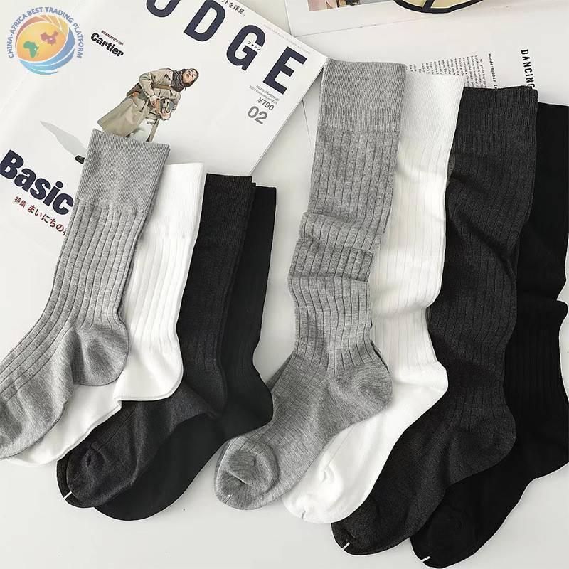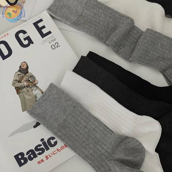 ins黑白春夏韩版长筒袜棉袜中筒袜