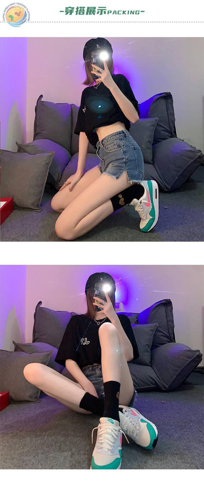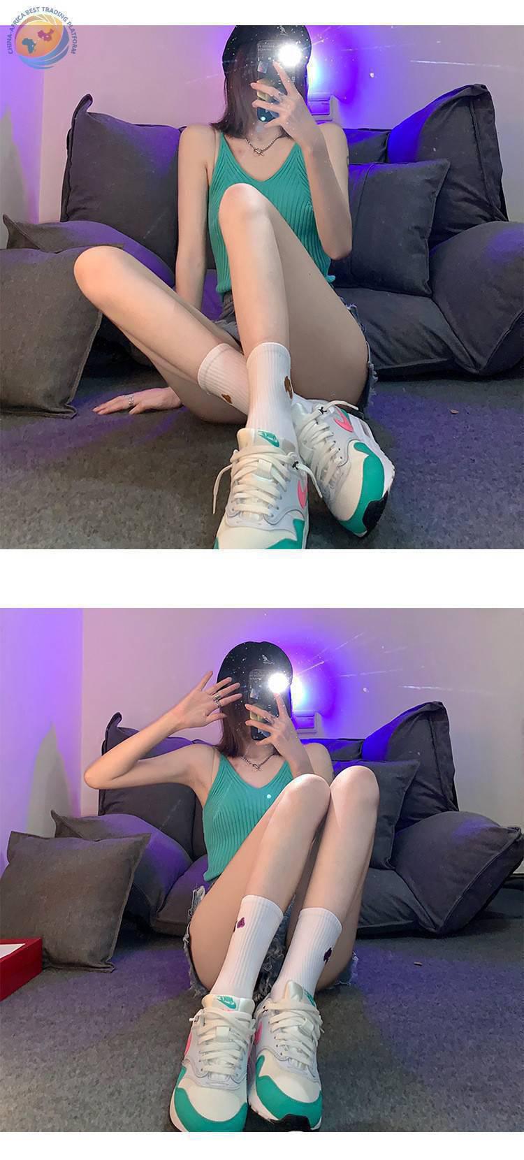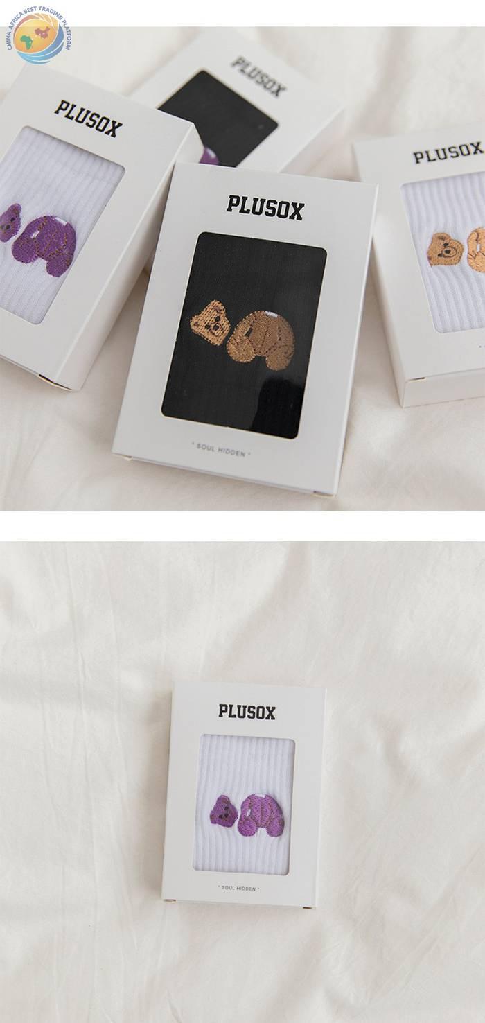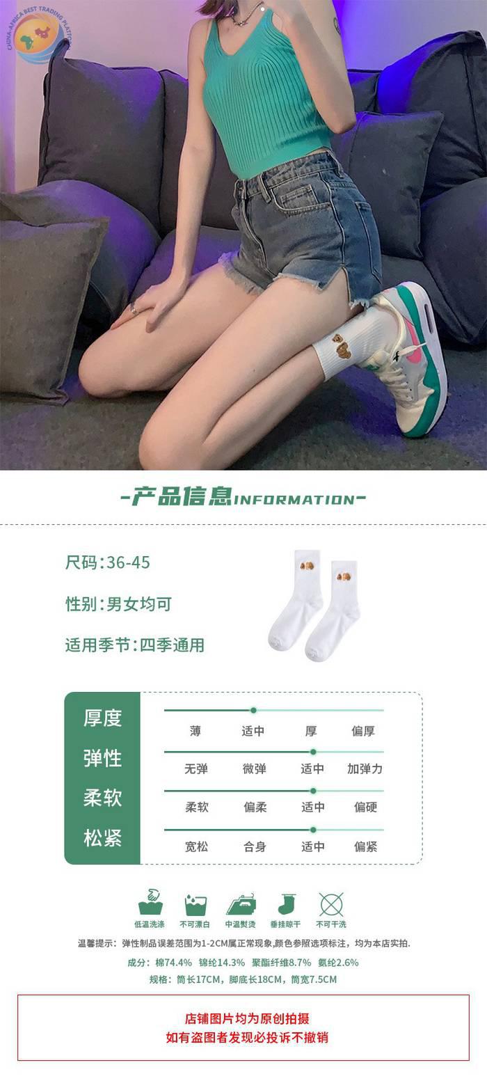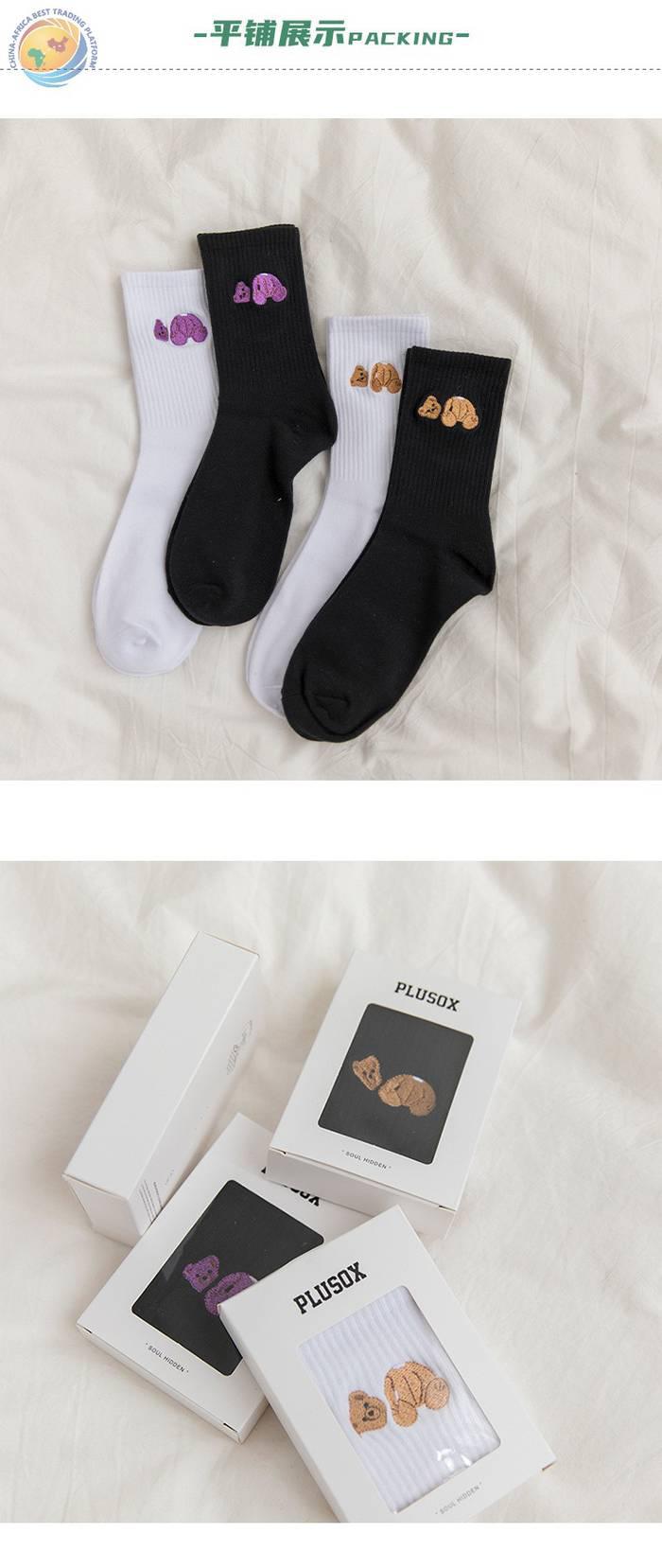 紫色棕榈树断头小熊天使刺绣运动男女袜ins潮中筒袜
