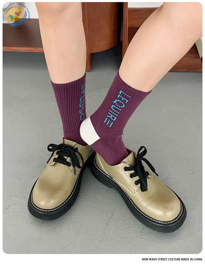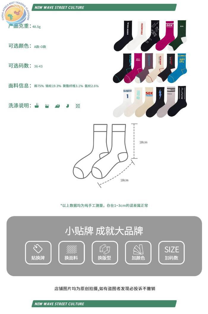 袜子女ins潮春秋中筒袜男简约字母日系街头长袜