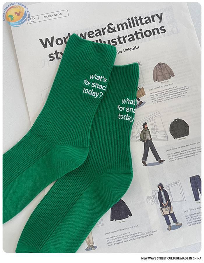 Embroidered letters outside wearing solid color pile pile tube socks female Instagram trend network red sports socks