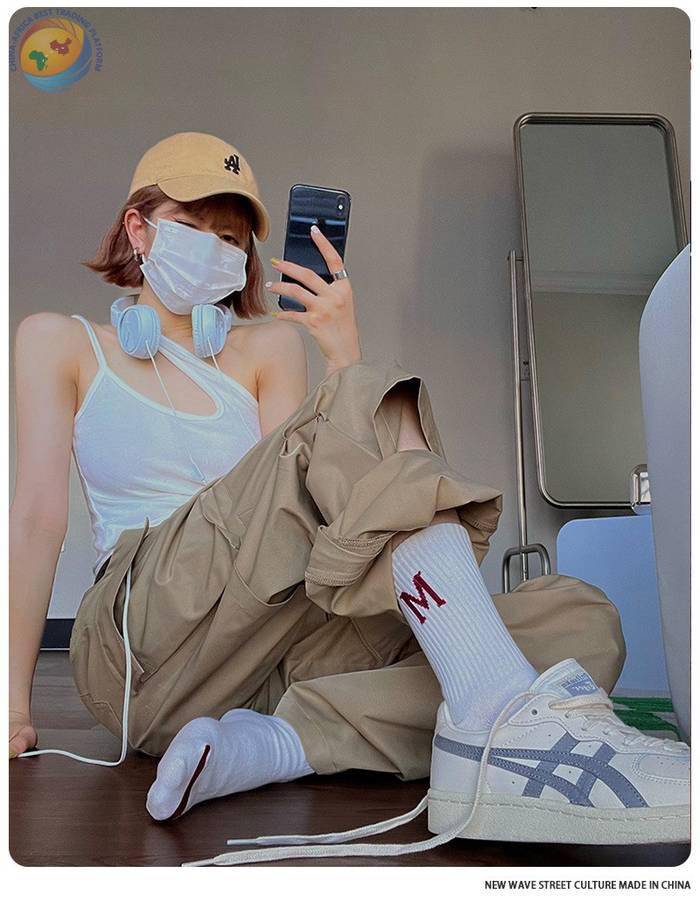 日系高螺纹口女袜纯色字母棉袜运动情侣袜