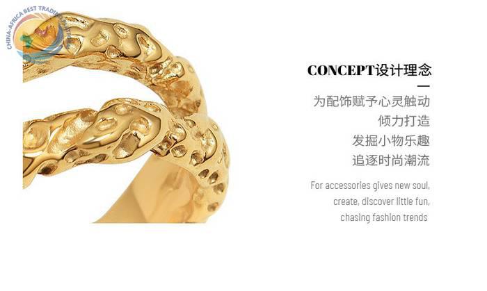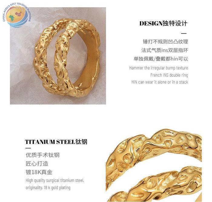 Tin foil textured double ring Titanium steel 18k gold index finger ring ring ins Wind tail ring