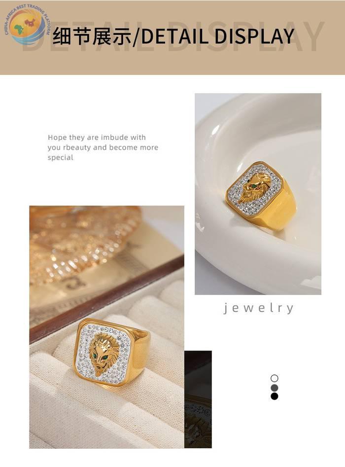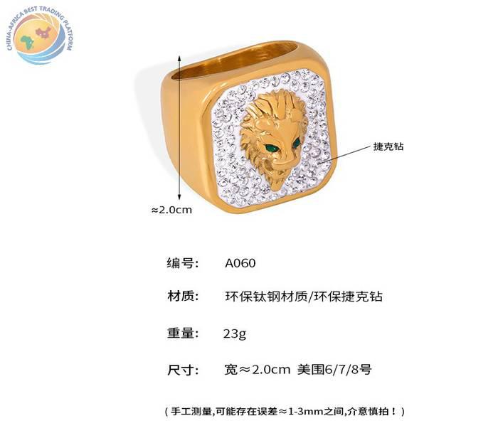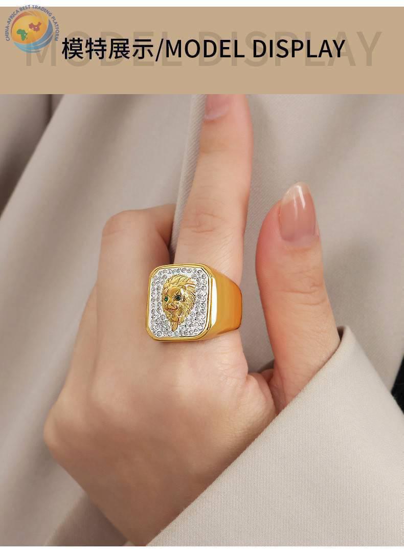 New European and American wind animal world titanium steel gold-plated lion head diamond ring