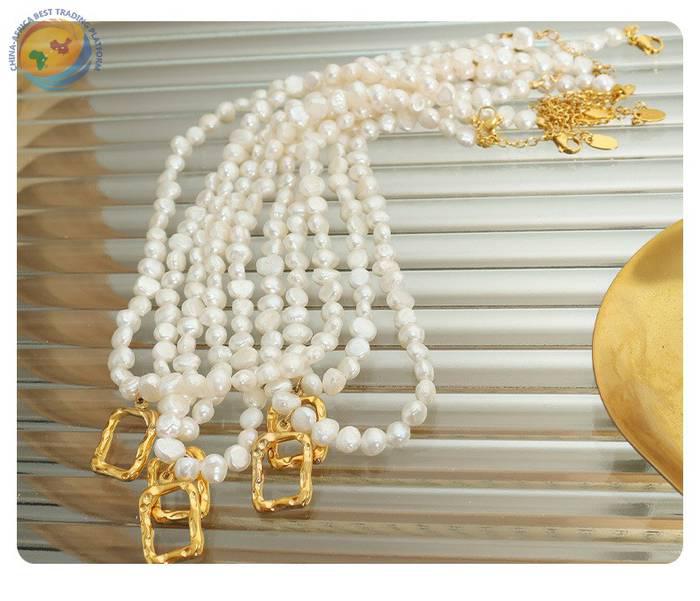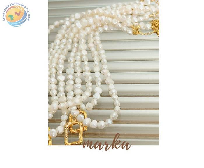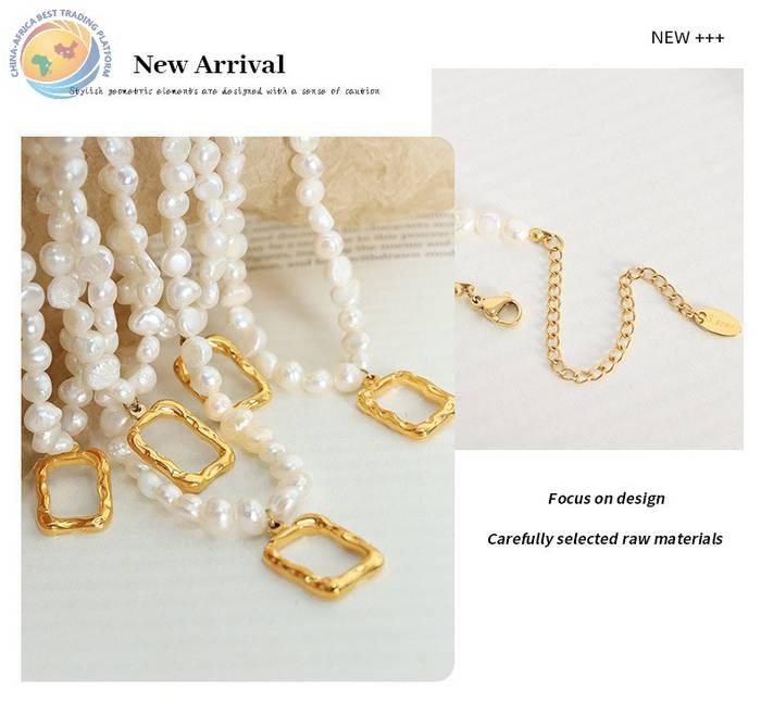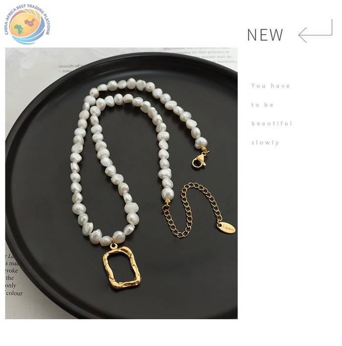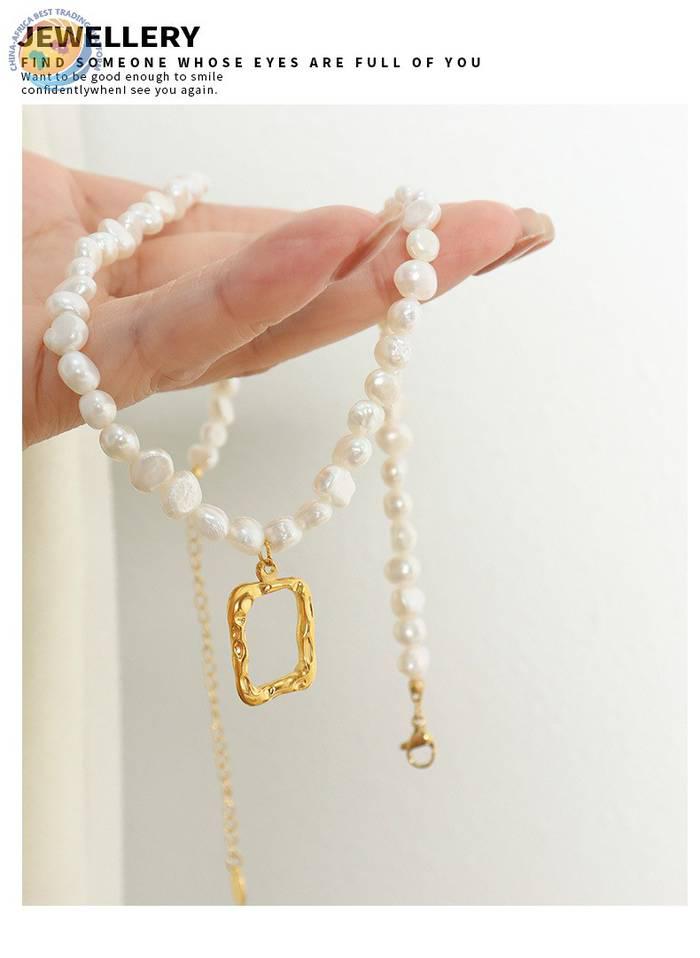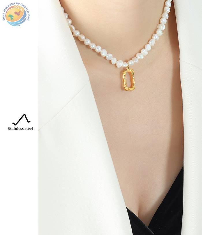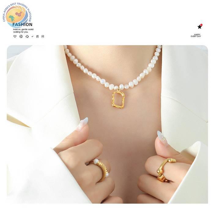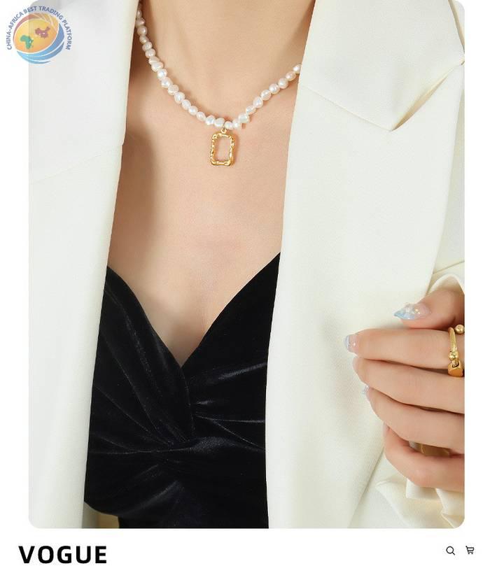 不规则椭圆淡水珍珠链钛钢个性气质几何锁骨项链