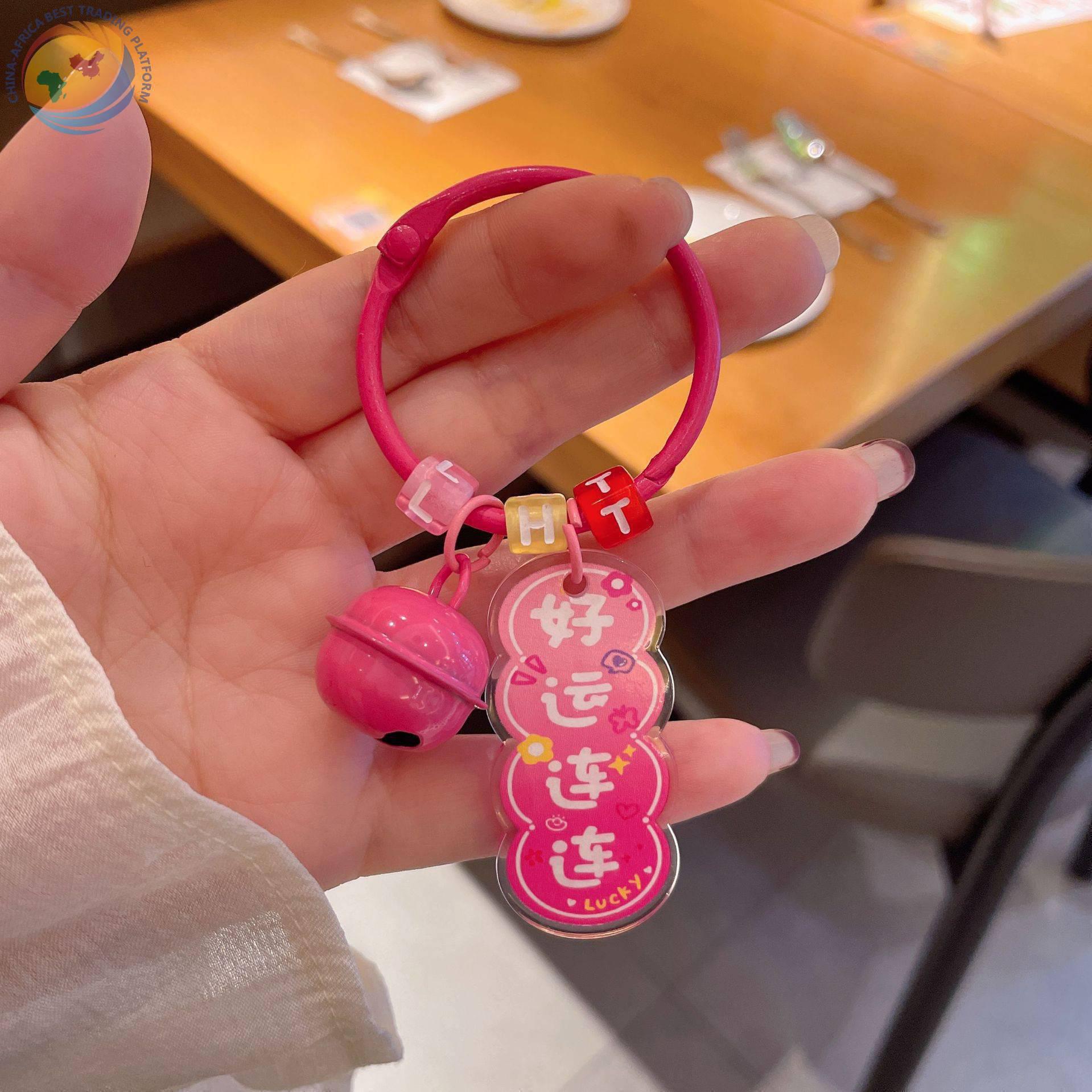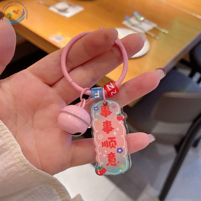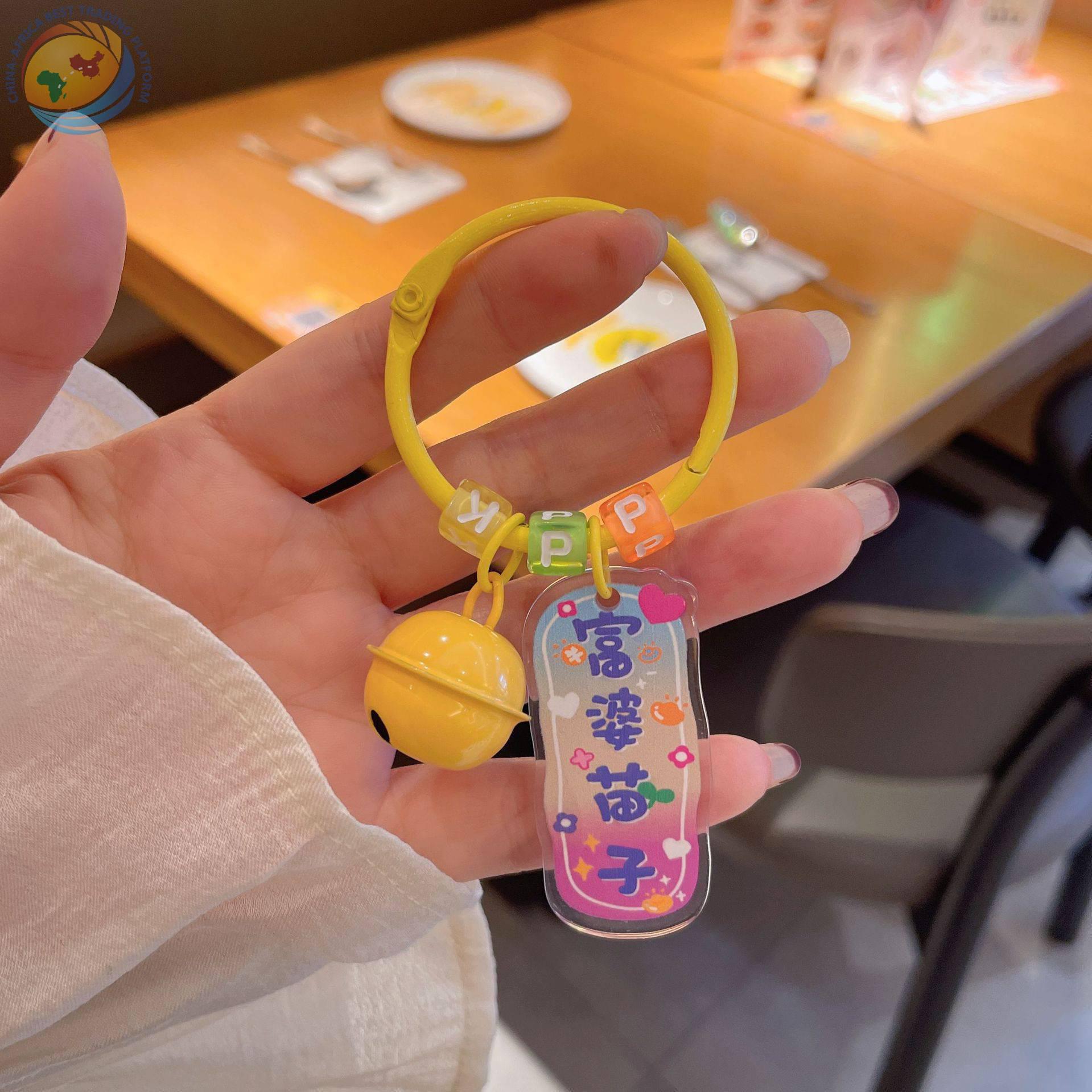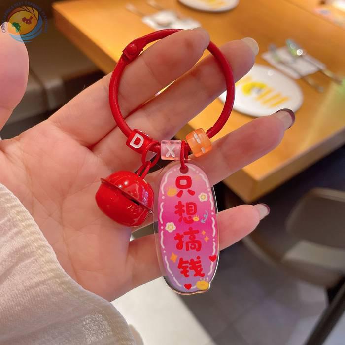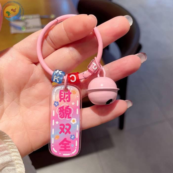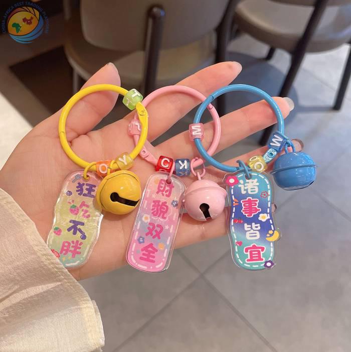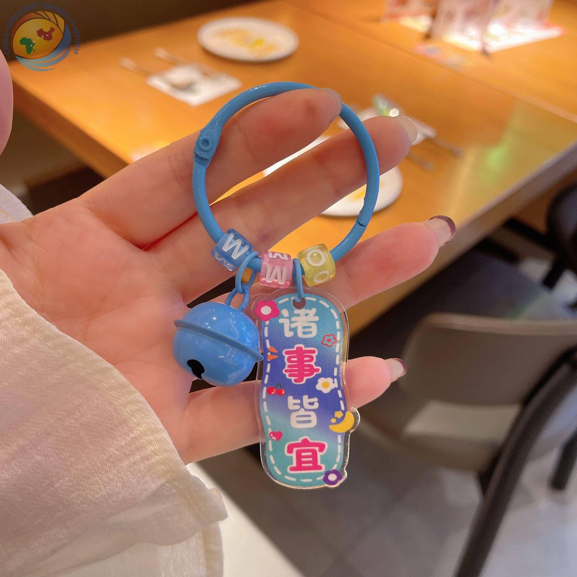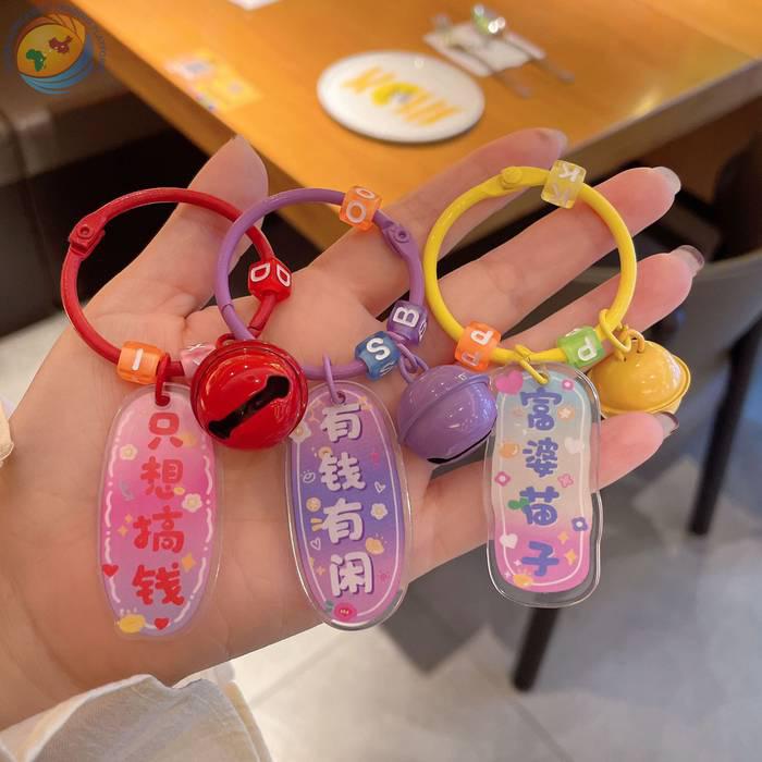 钥匙扣创意祝福文字双面挂件小清新彩色铃铛挂饰品
