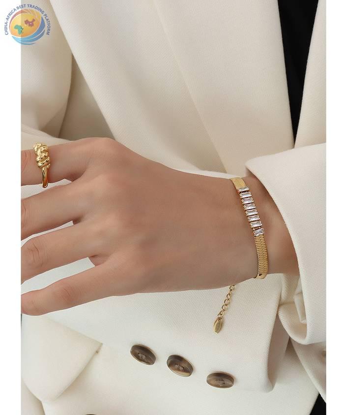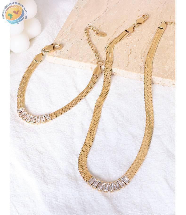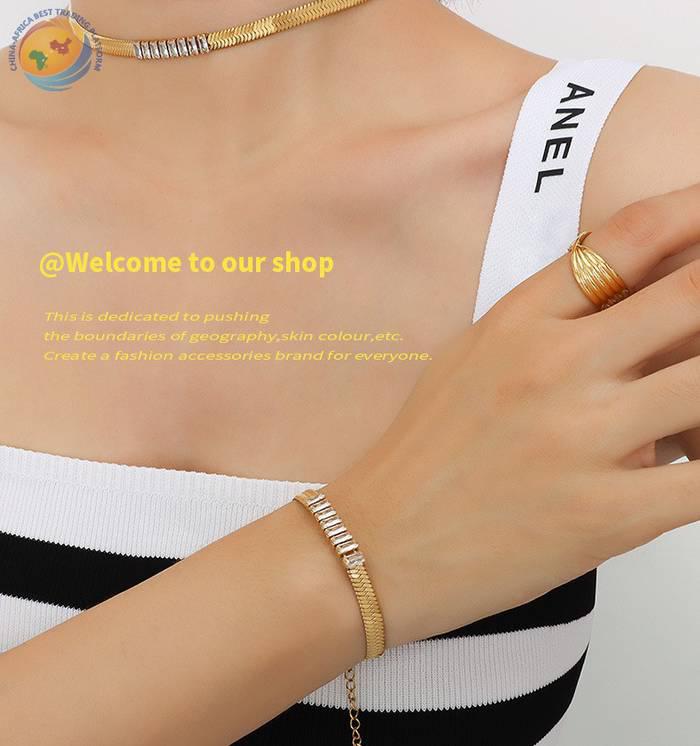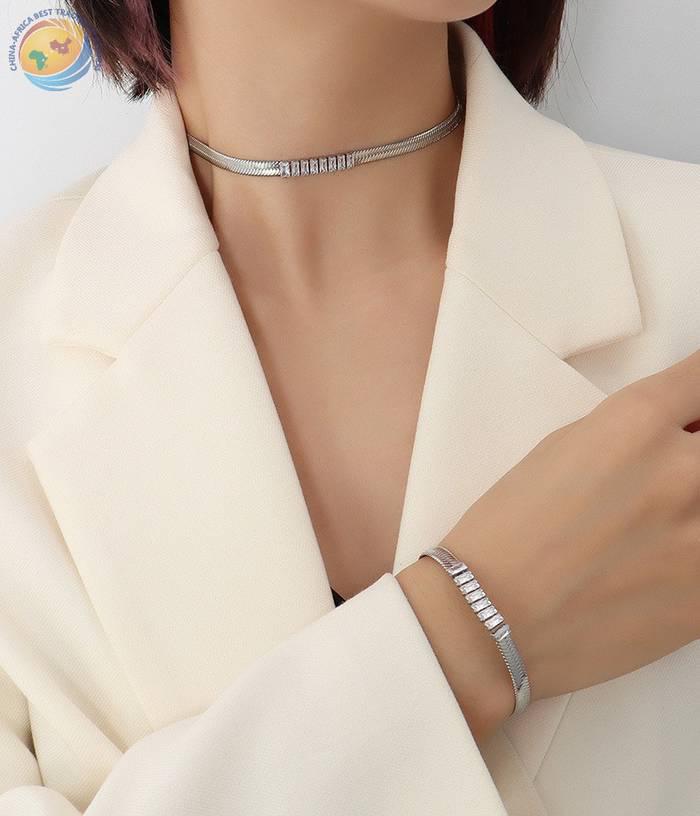 冷淡风设计刀片链衔接方形锆钻钛钢项链手链
