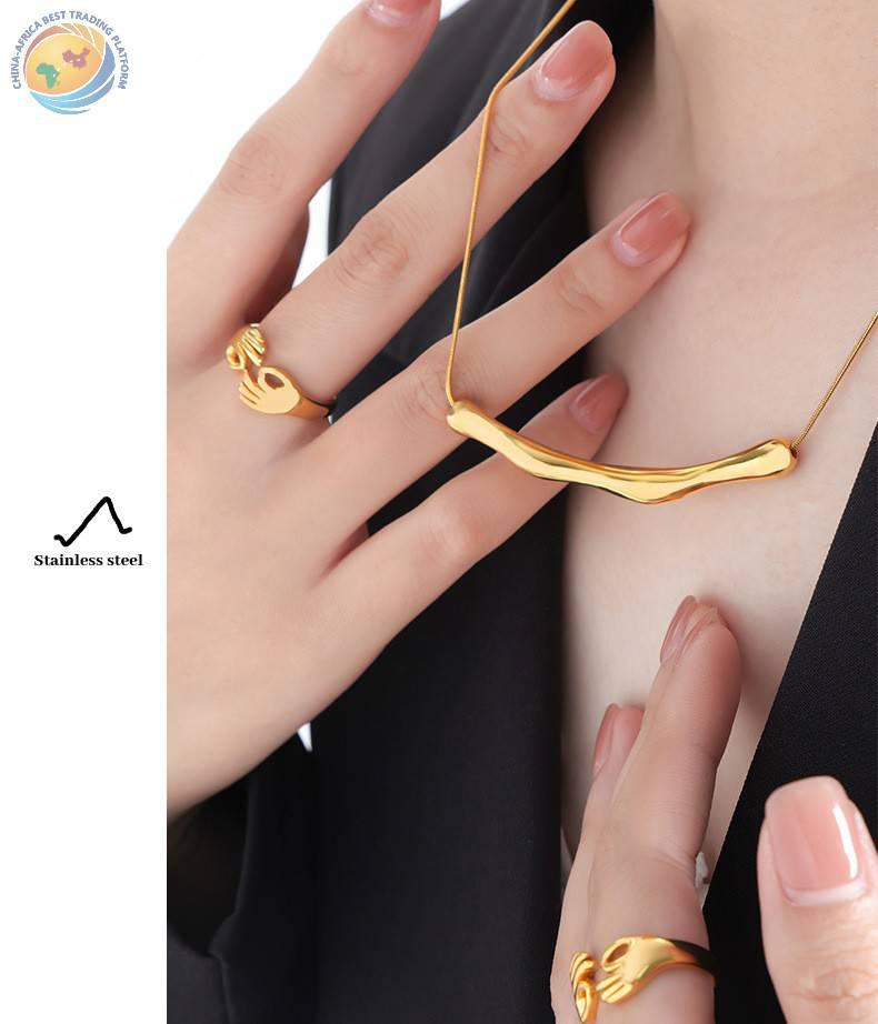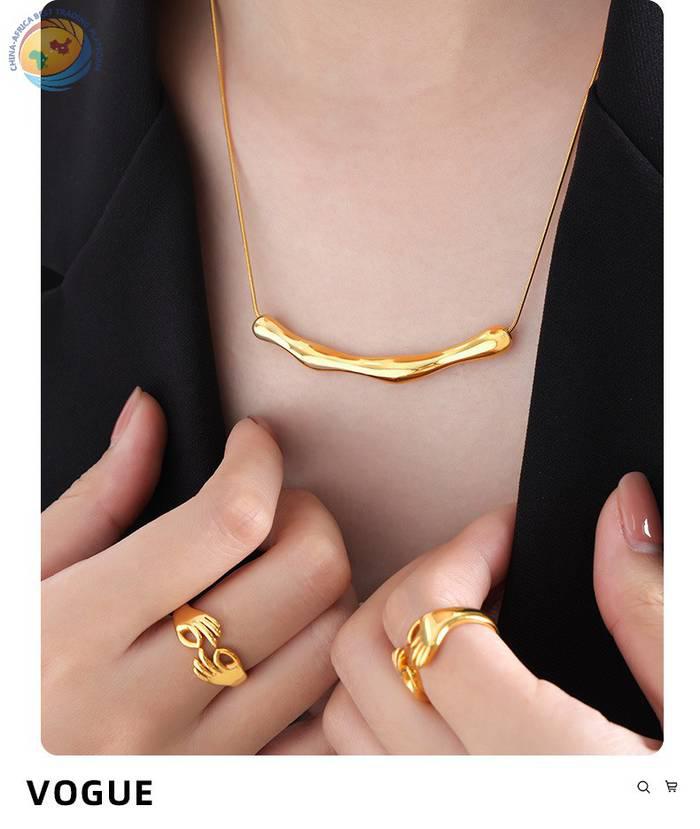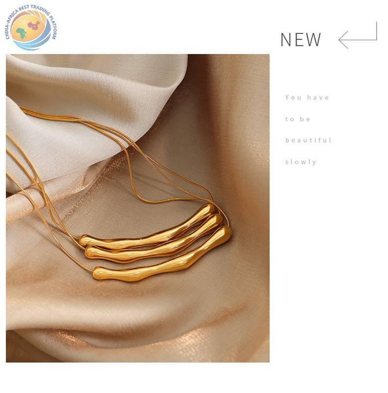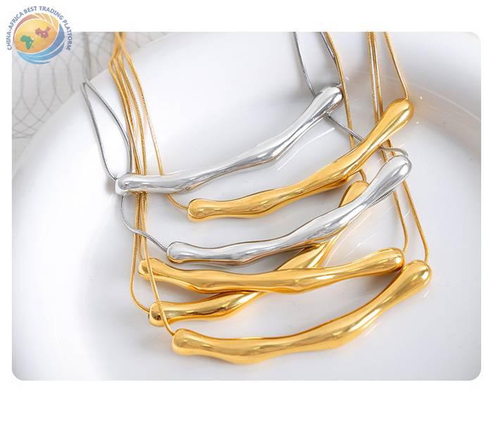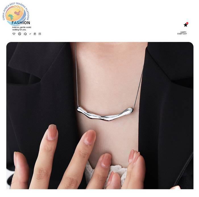 跨境电商爆款欧美个性时尚男女百搭条状不规则吊坠冷淡项链圆蛇链