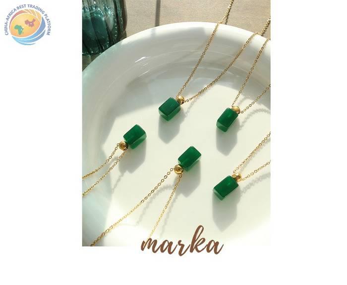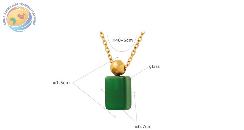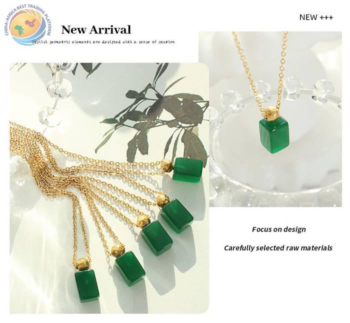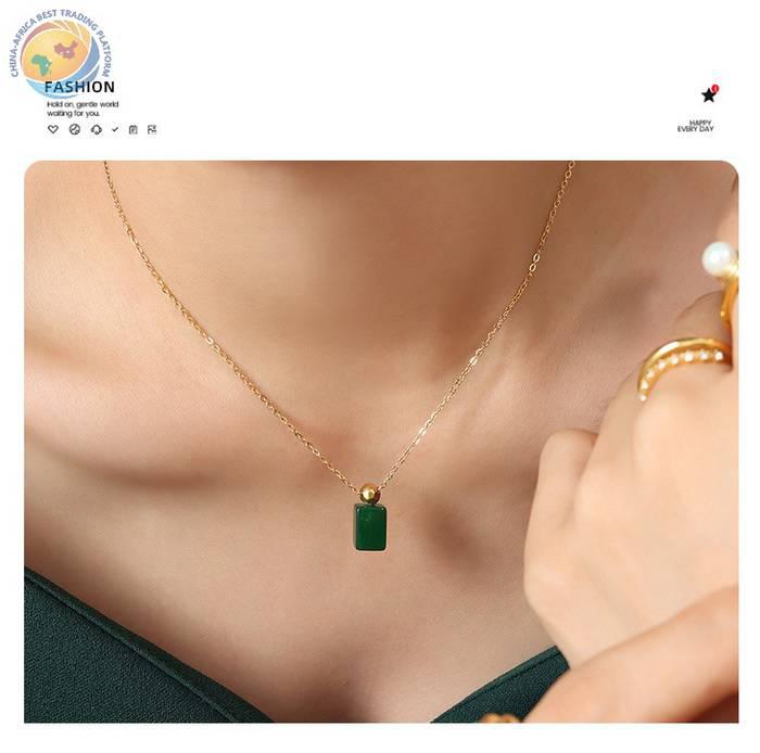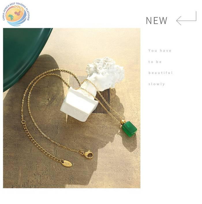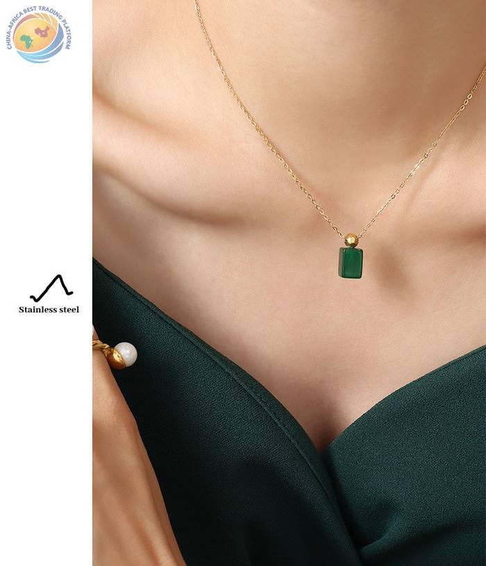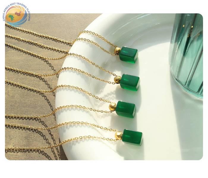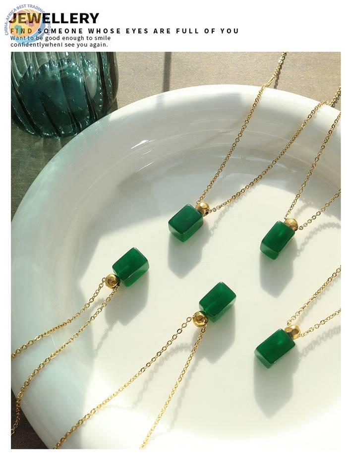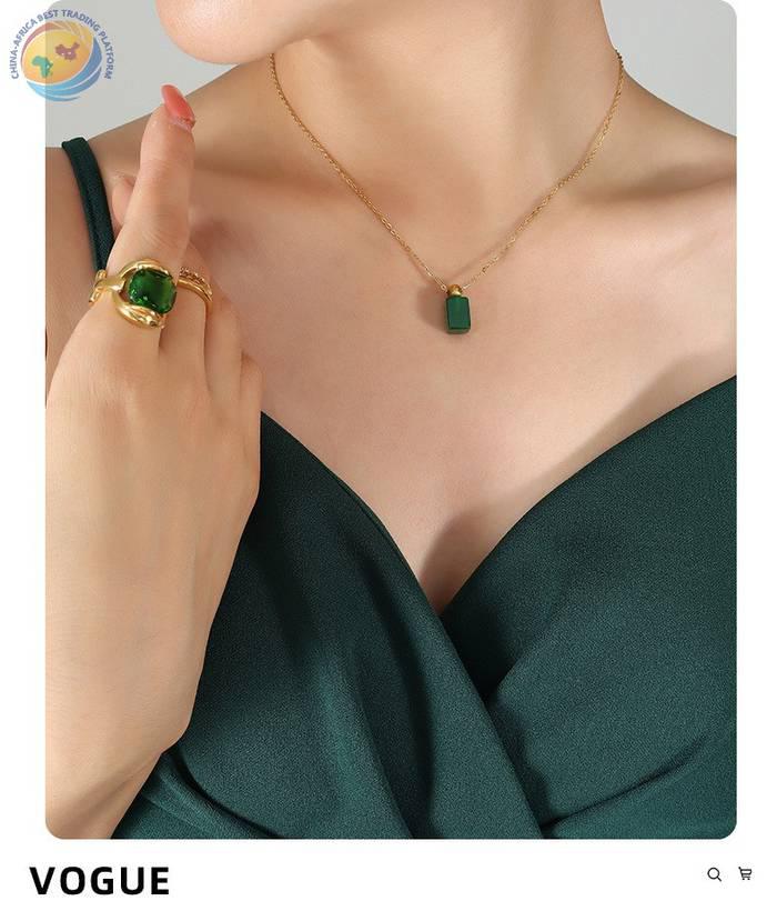 中性风复古设计感个性时尚祖母绿玻璃吊坠项链不褪色钛钢镀金首饰