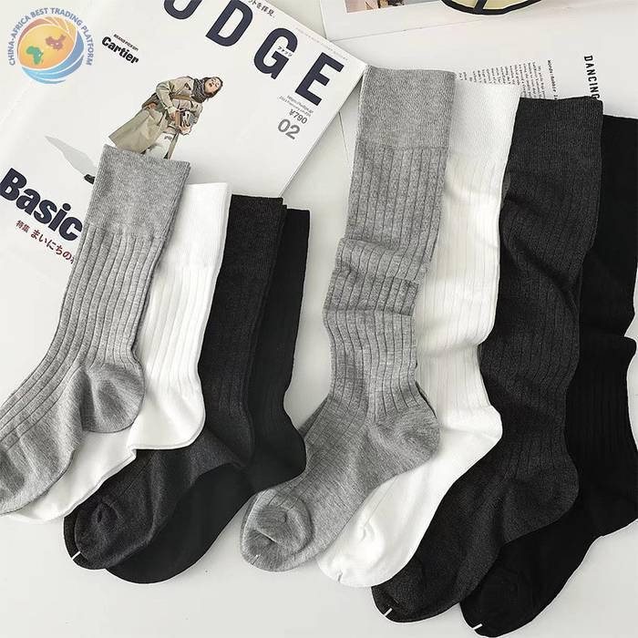 plusox新品黑白袜子春夏韩版长筒袜棉袜中筒袜及膝袜ins潮袜批发