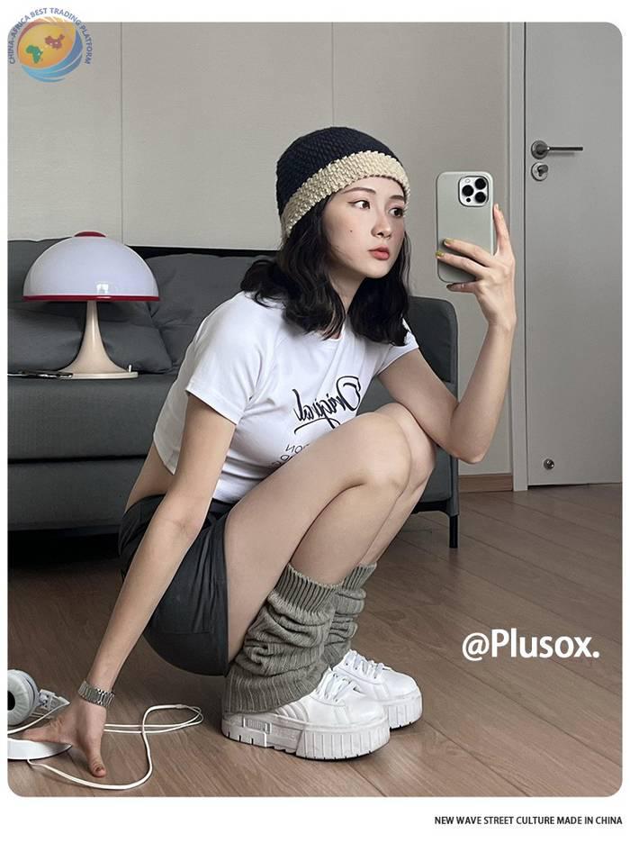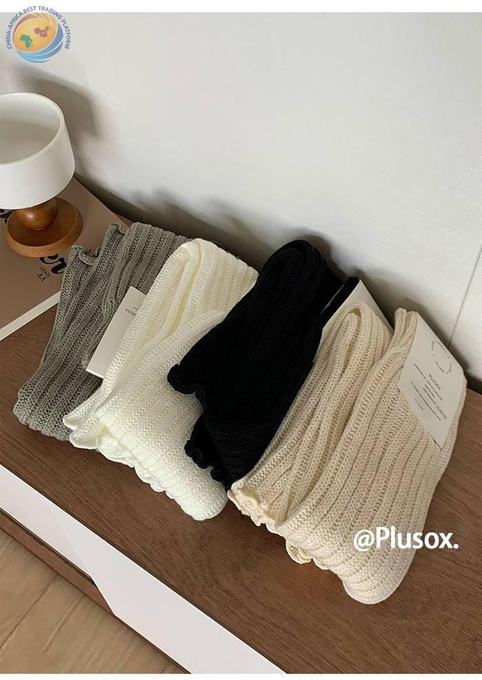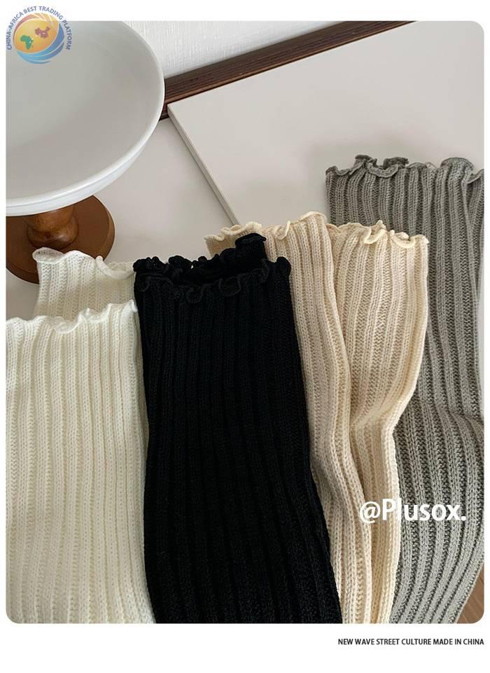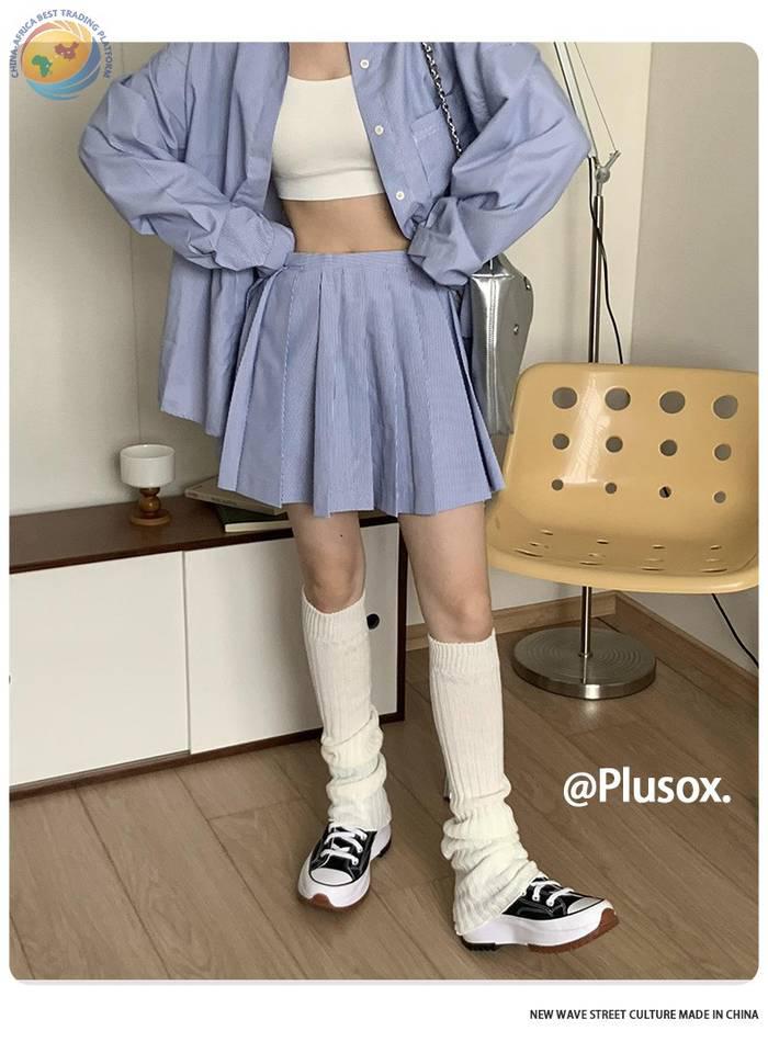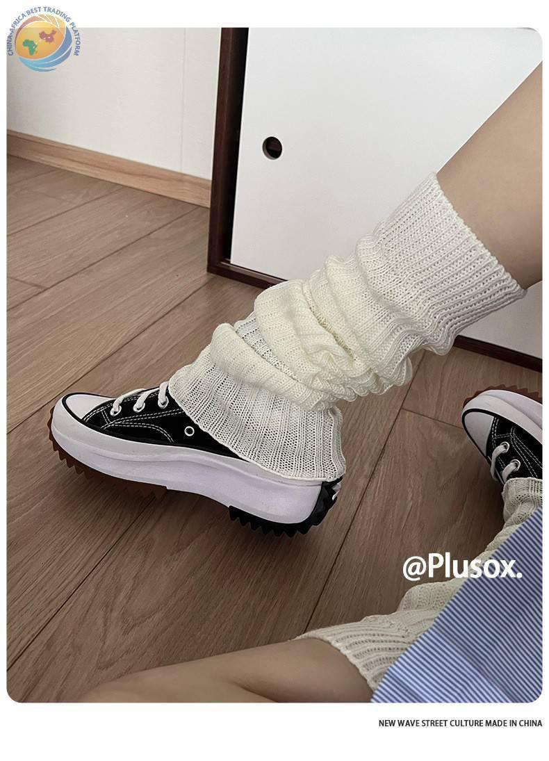 plusox白色袜子女jk堆堆袜条纹针织袜套亚文化腿套辣妹夏季薄