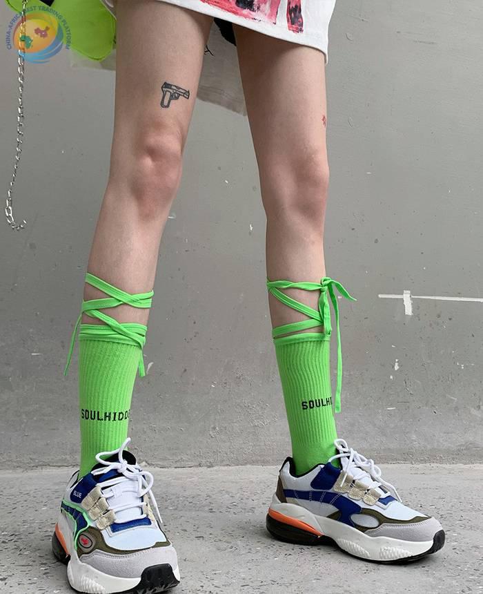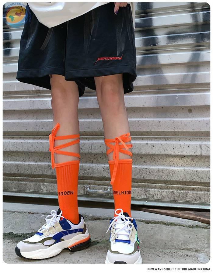 Plusox 秋冬新品洛丽塔交叉绑带袜子女ins吸睛潮袜 小腿袜 中筒袜