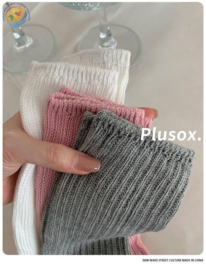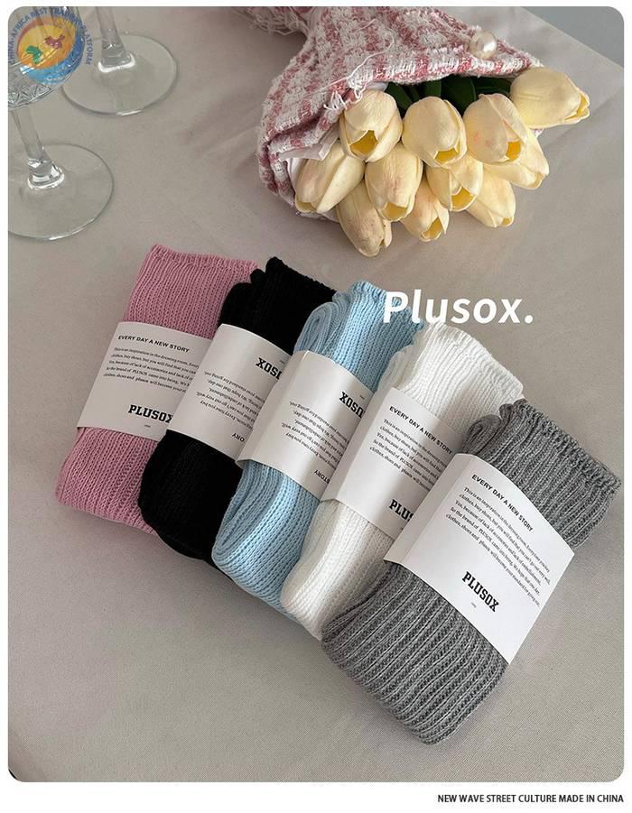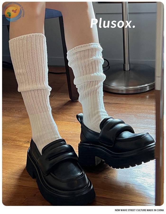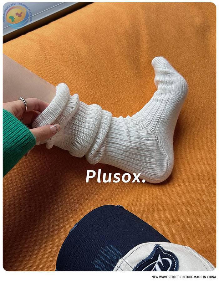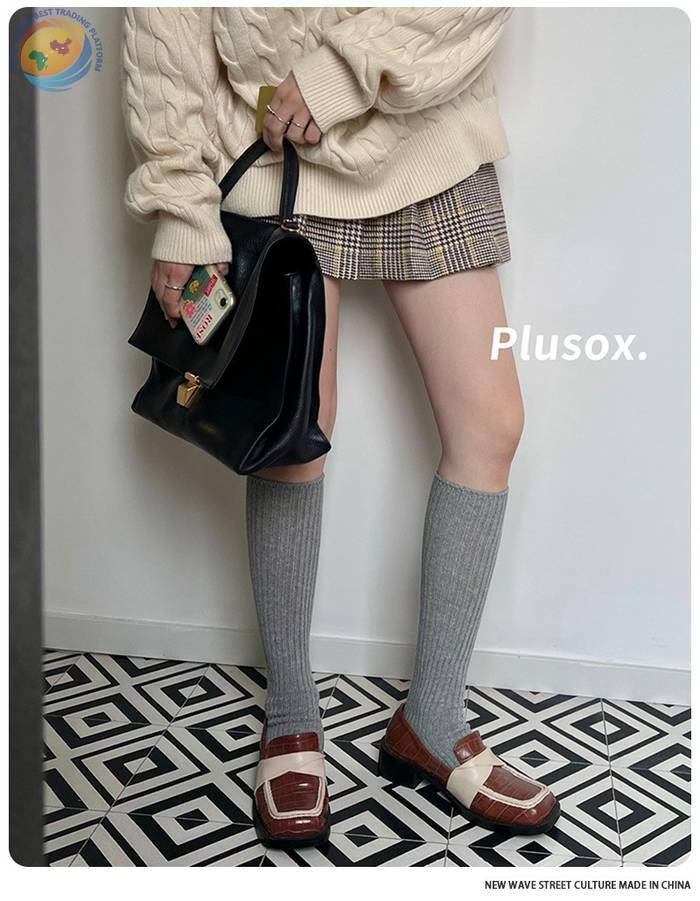 plusox秋冬新款纯色及膝袜小腿袜加厚甜美双针堆堆袜子长筒诸暨袜