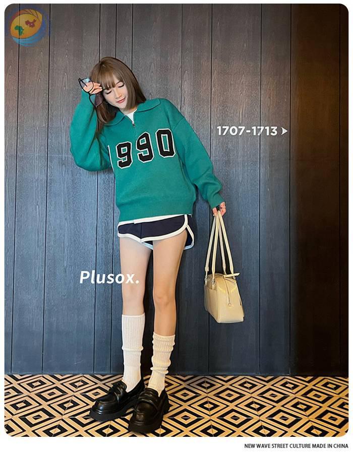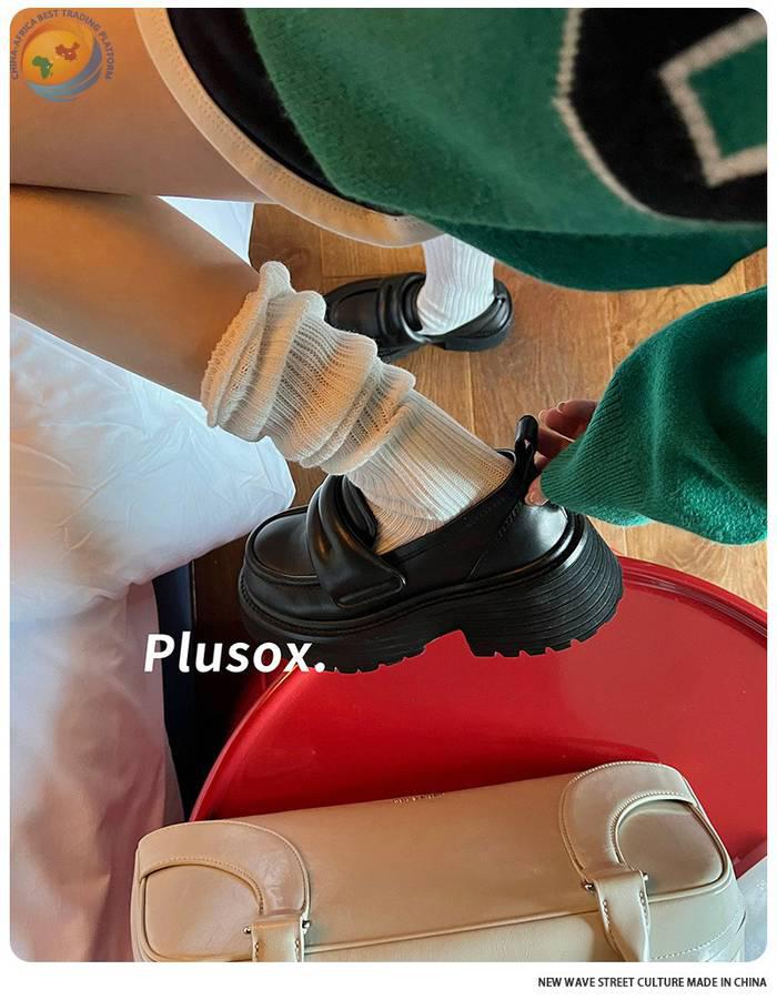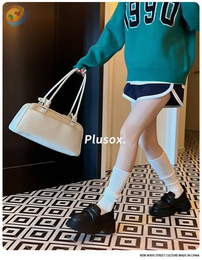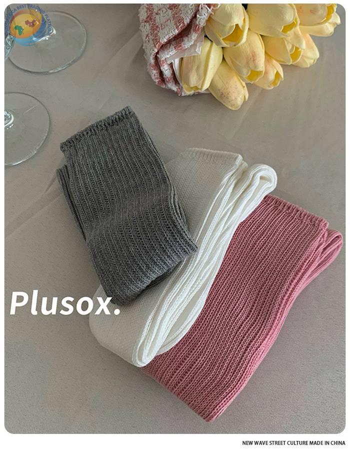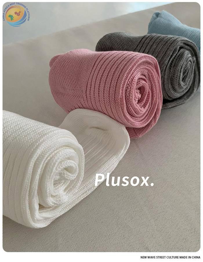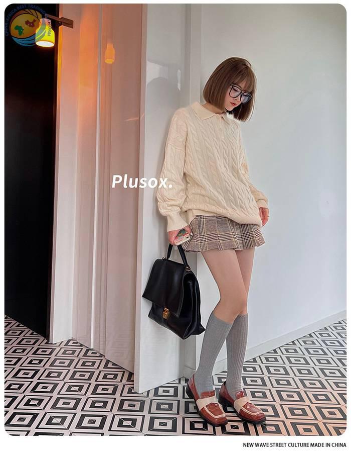 plusox秋冬新款纯色及膝袜小腿袜加厚甜美双针堆堆袜子长筒诸暨袜