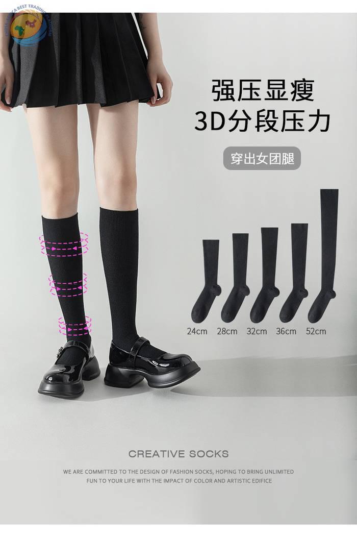 压力瘦腿小腿袜女秋款jk袜子长筒长袜冬季过膝强压黑色半截中筒袜
