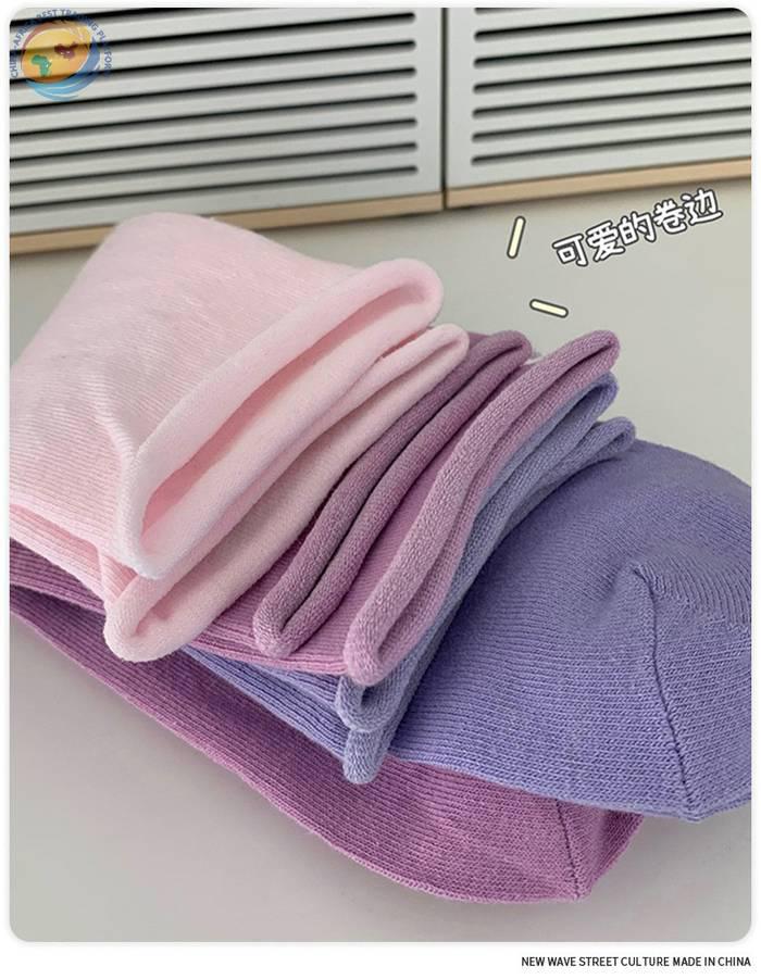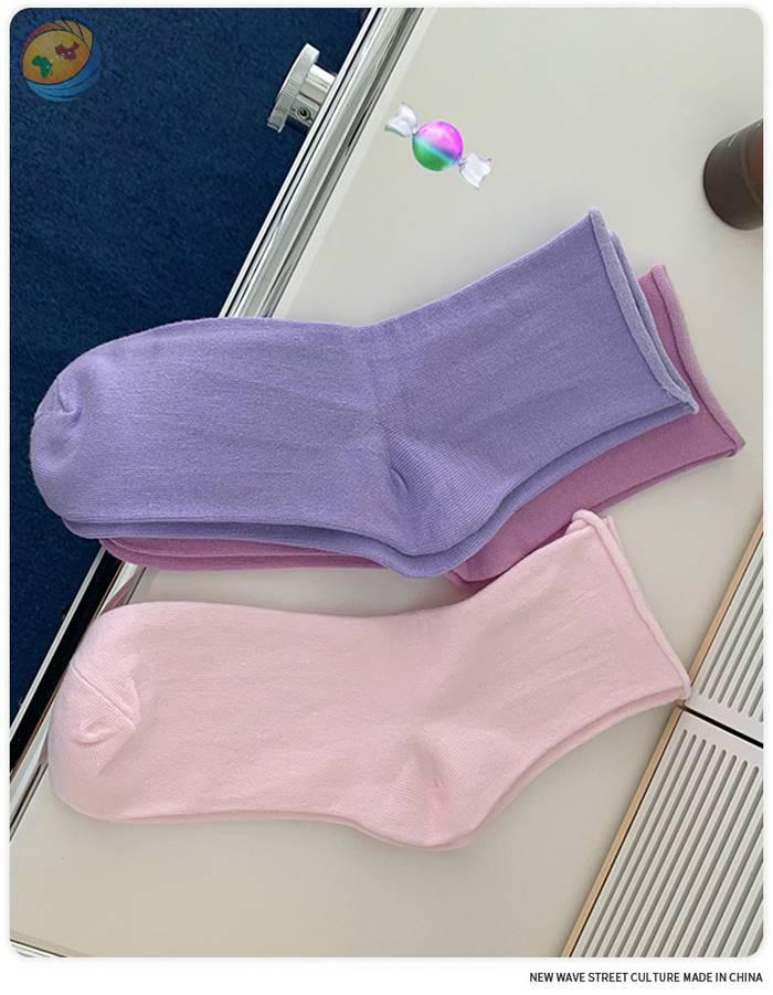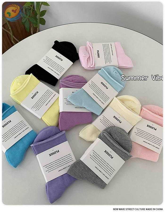 plusox低帮薄款短袜纯色卷边糖果船袜春夏棉质袜子女透气日系女袜