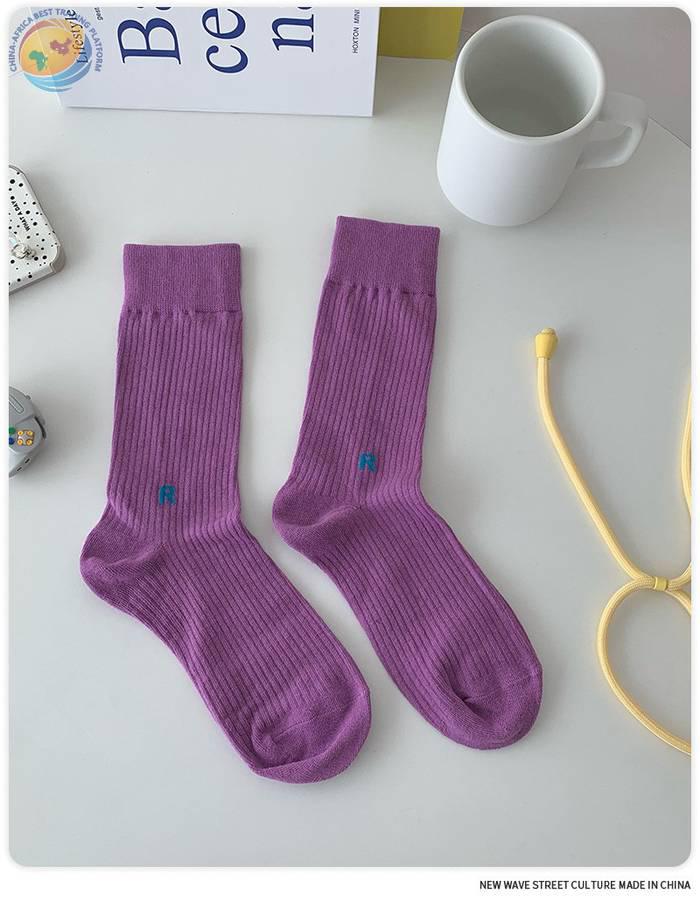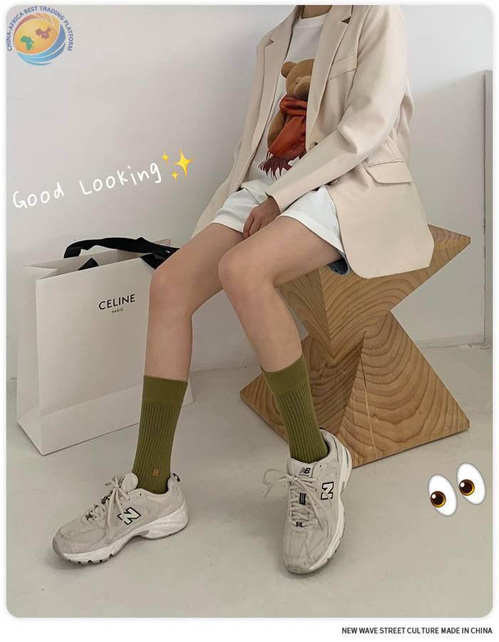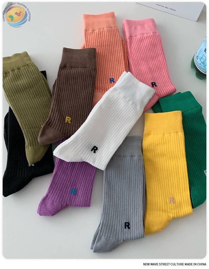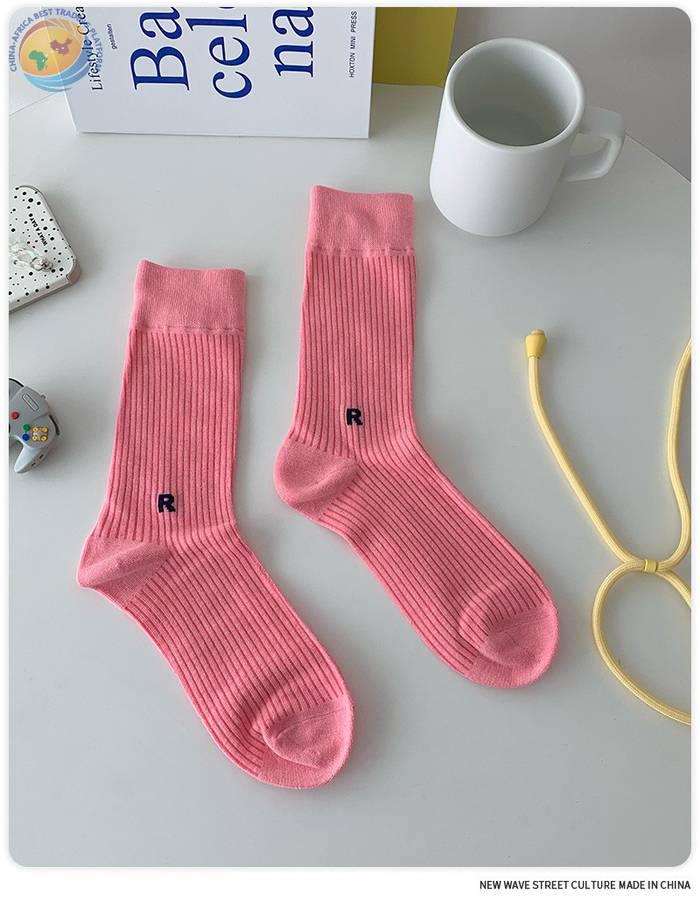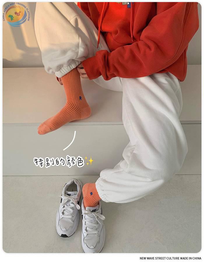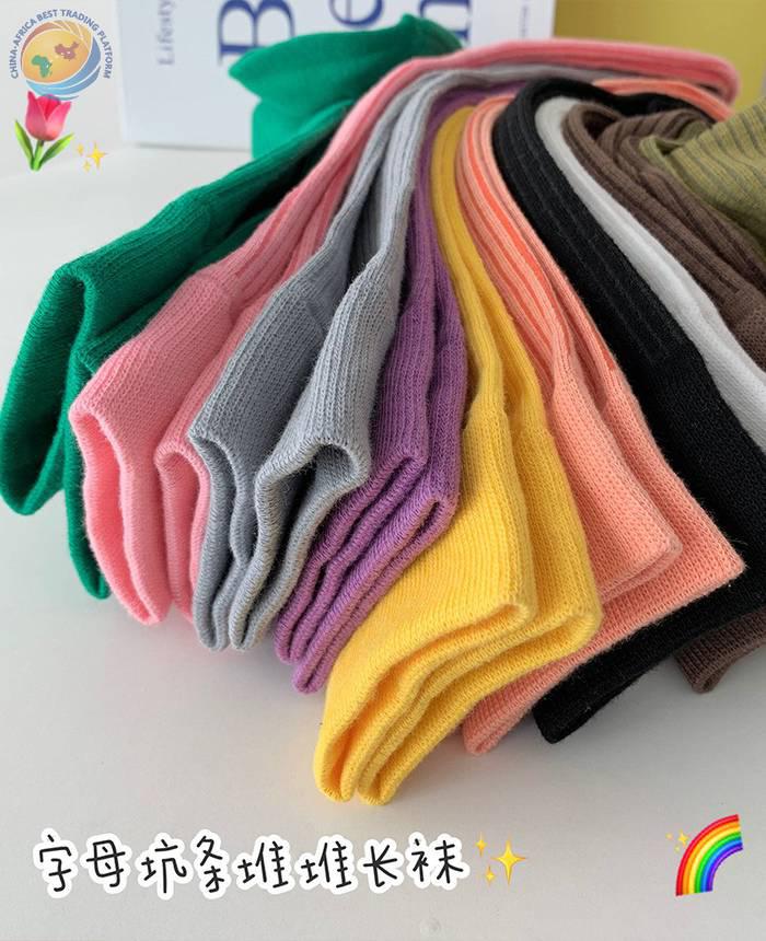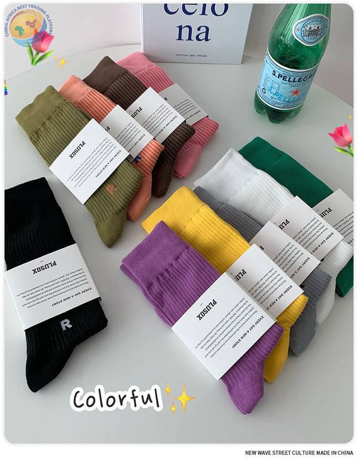 Plusox韩国字母竖条堆堆袜子女春秋彩色韩中筒袜ins潮长筒堆堆袜