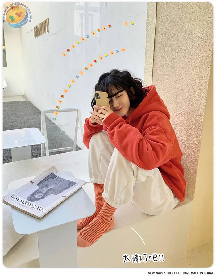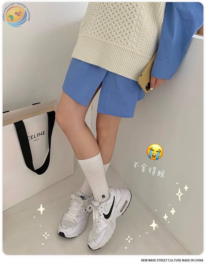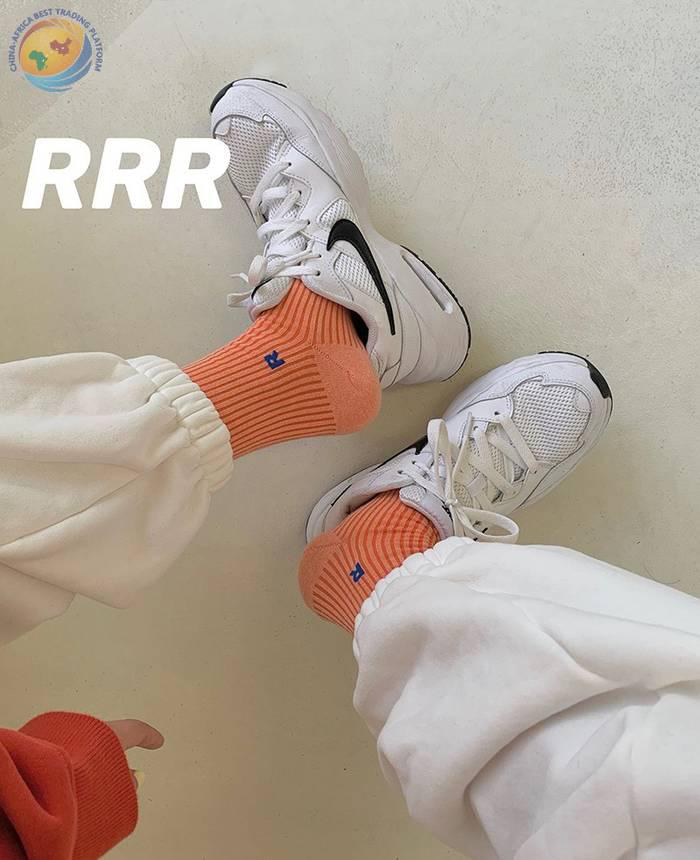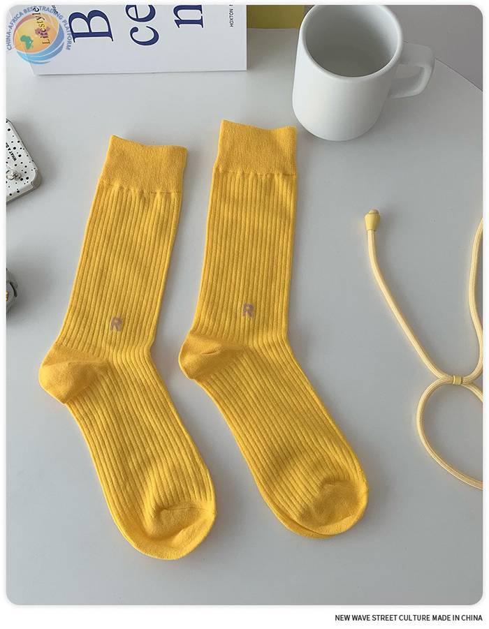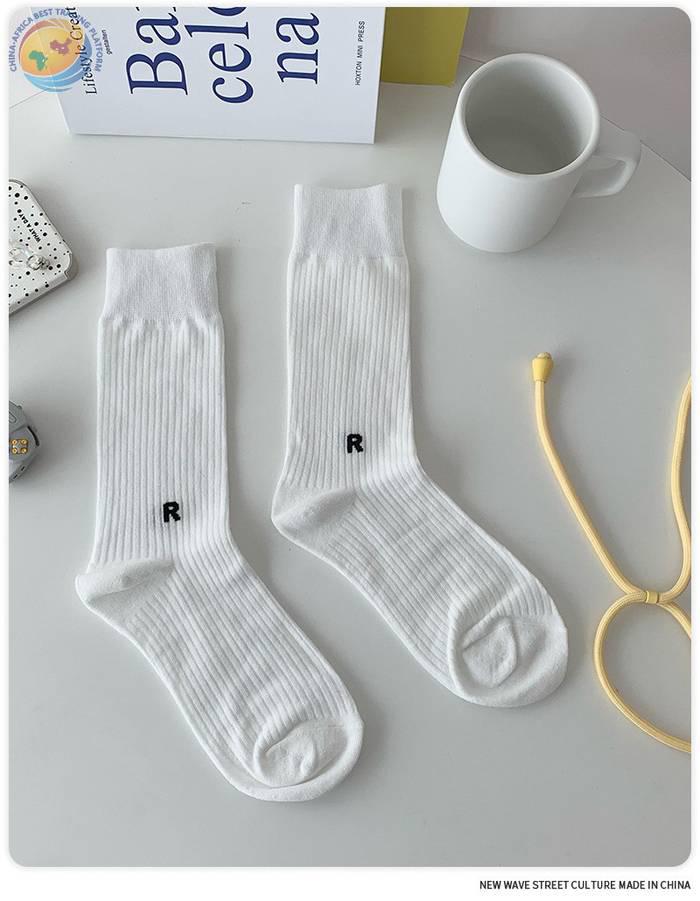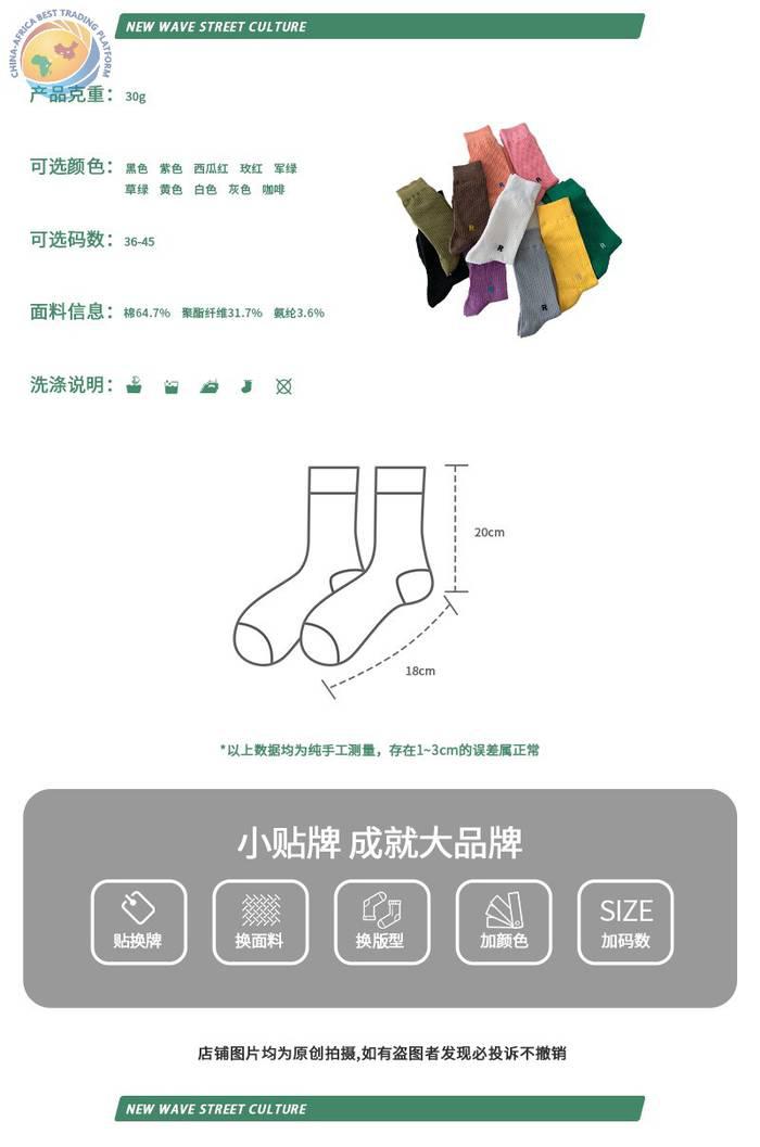 Plusox韩国字母竖条堆堆袜子女春秋彩色韩中筒袜ins潮长筒堆堆袜