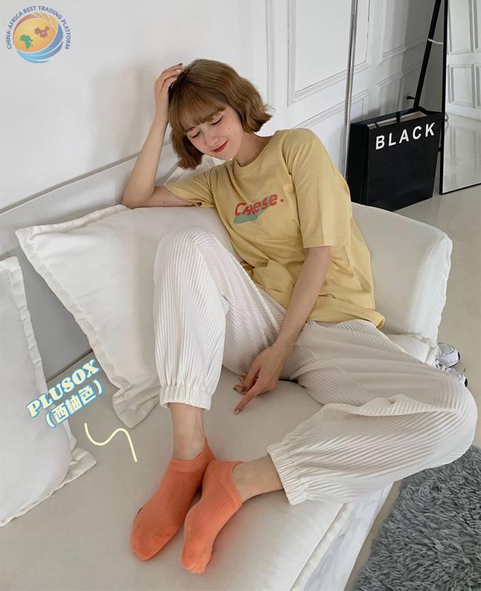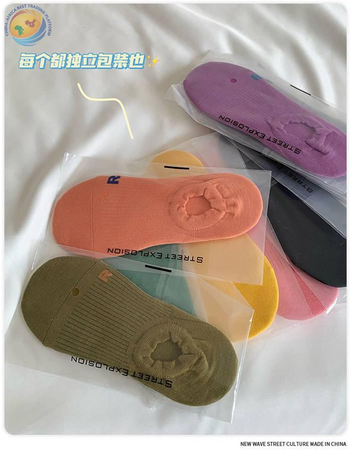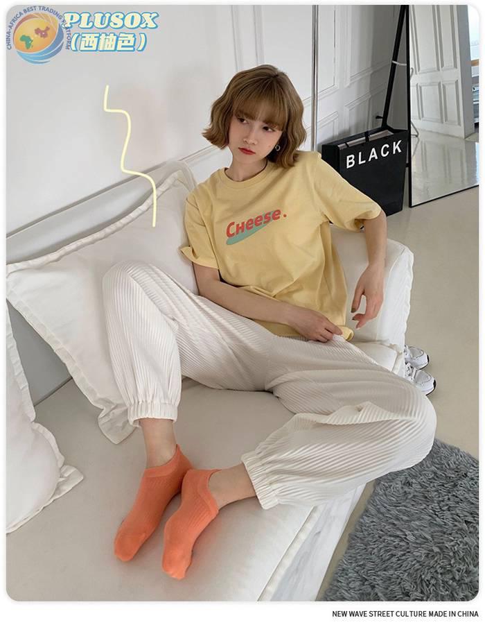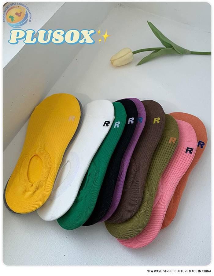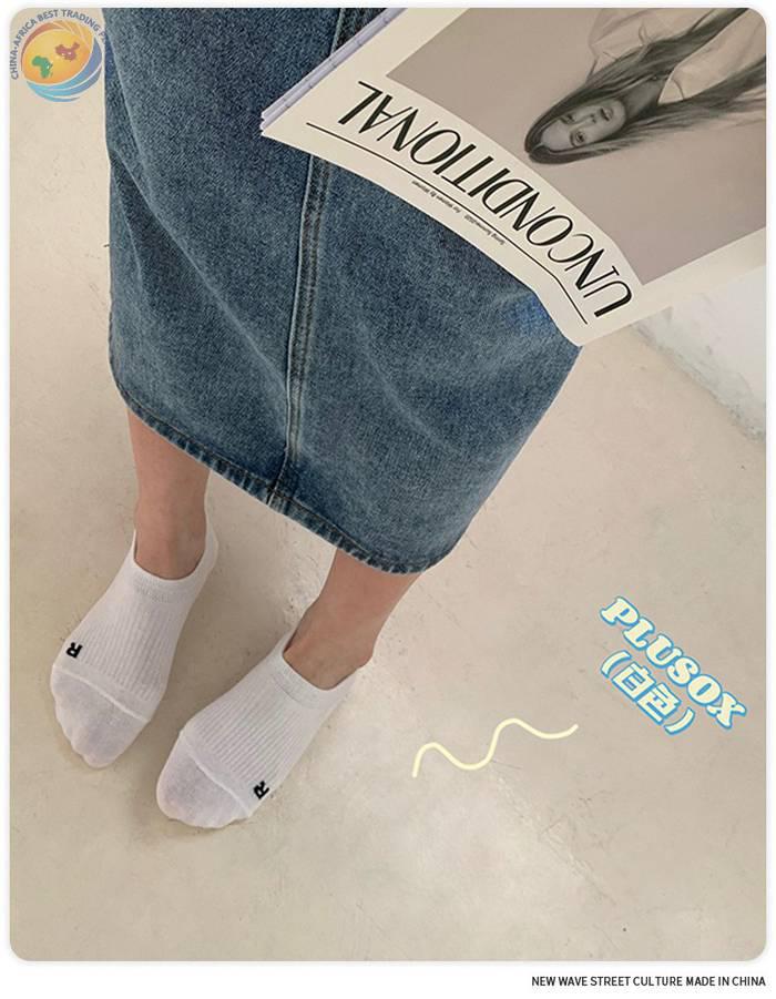PLUSOX 韩国字母竖条袜子女短袜浅口ins船袜夏季薄款低帮潮透气