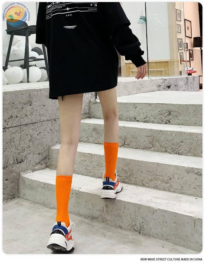 堆堆袜女秋冬日系彩色潮中筒袜ins韩版街头网红黑色袜子森系长袜