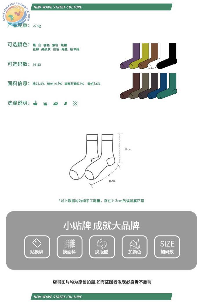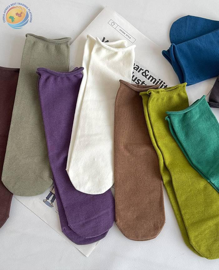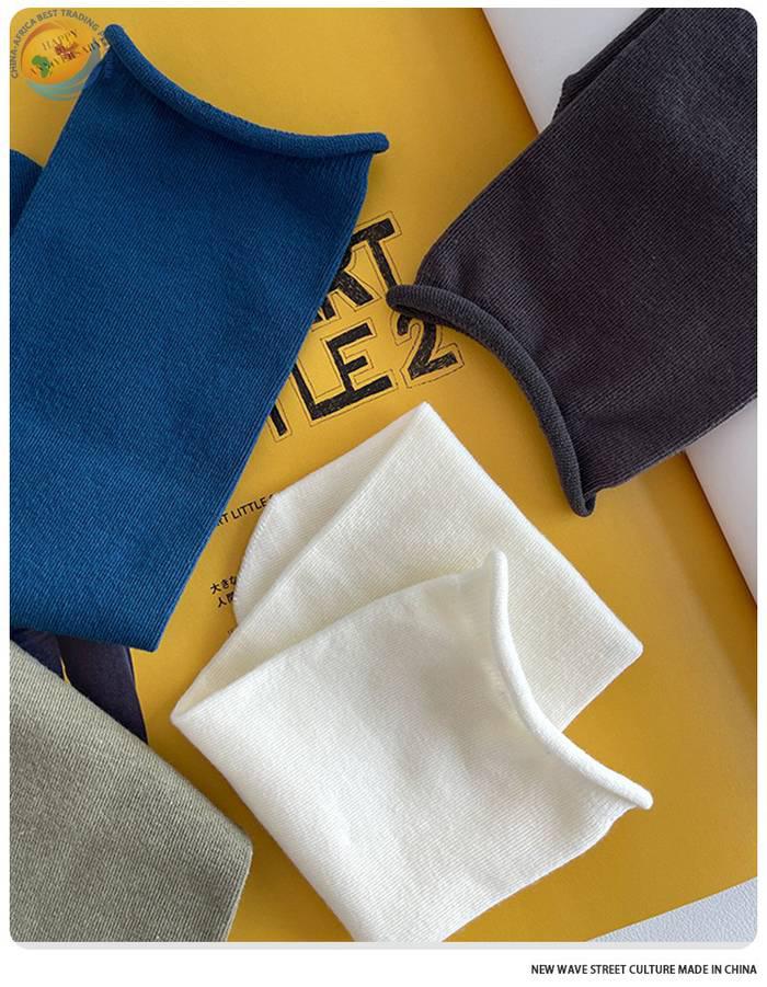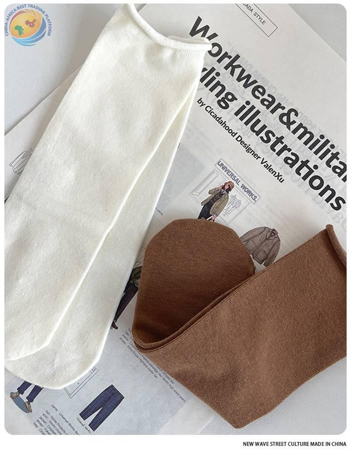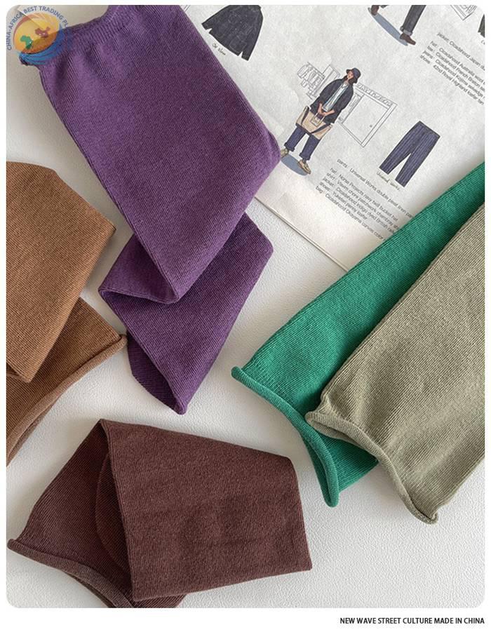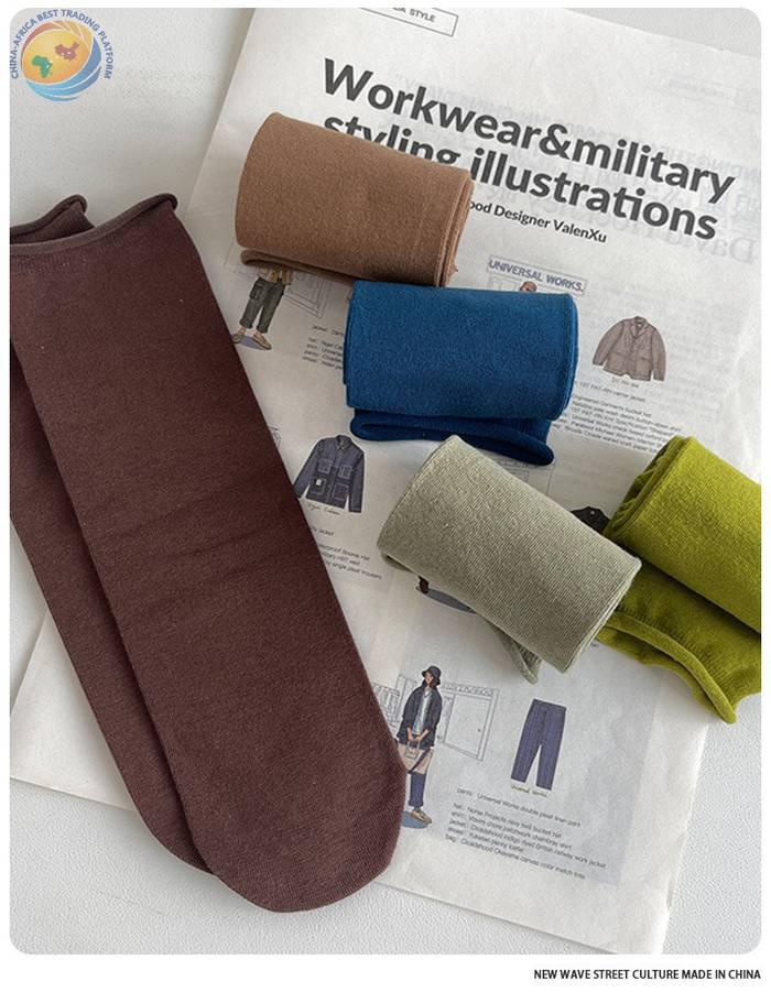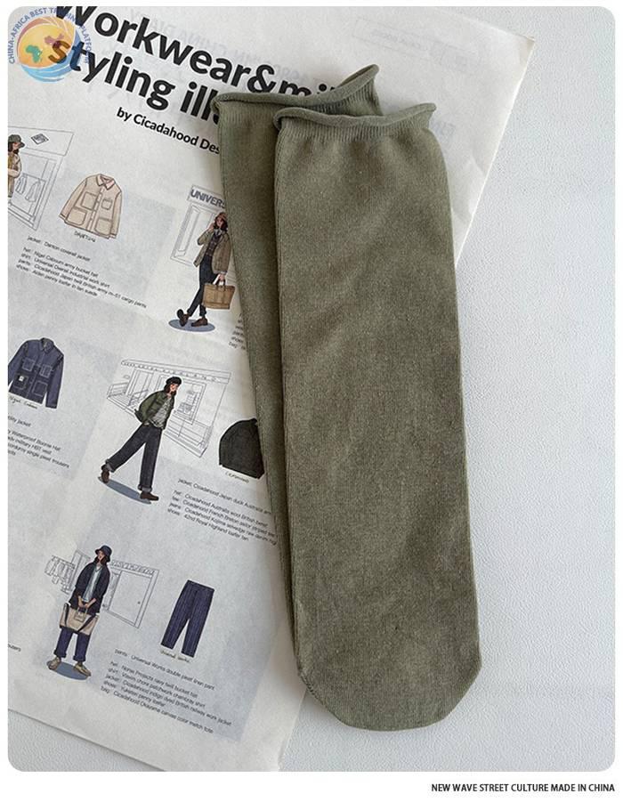 plusox袜子女中筒简约纯色百搭春秋薄款星期袜堆堆袜棉网红ins潮