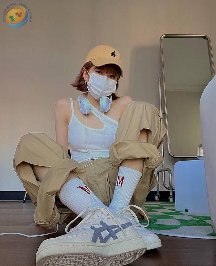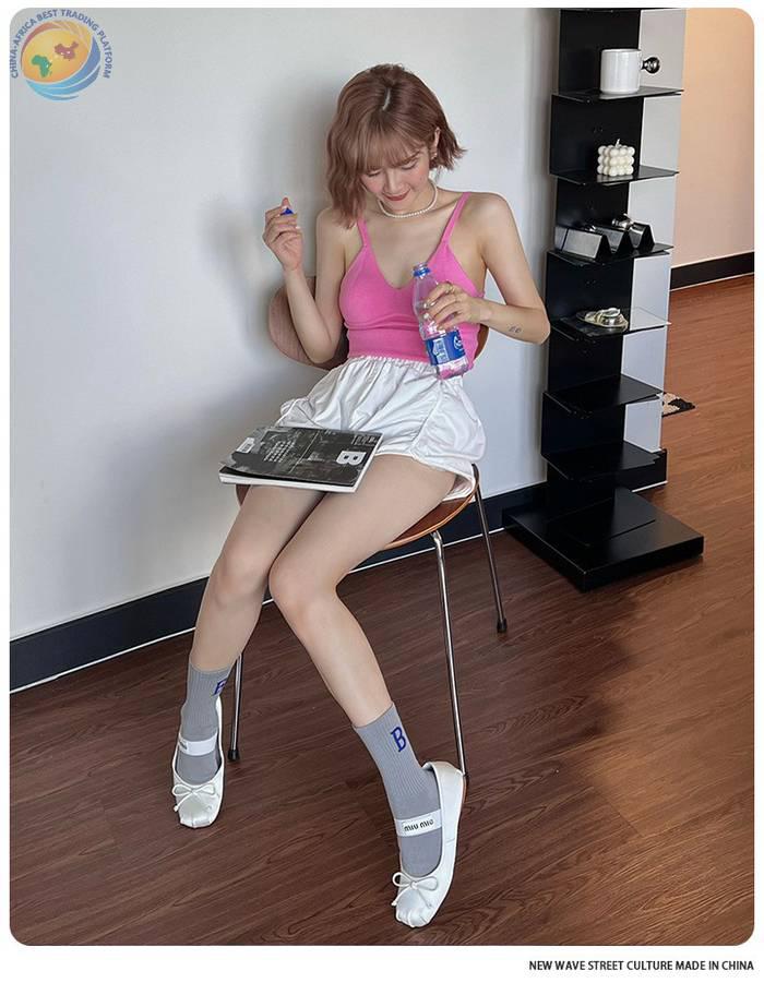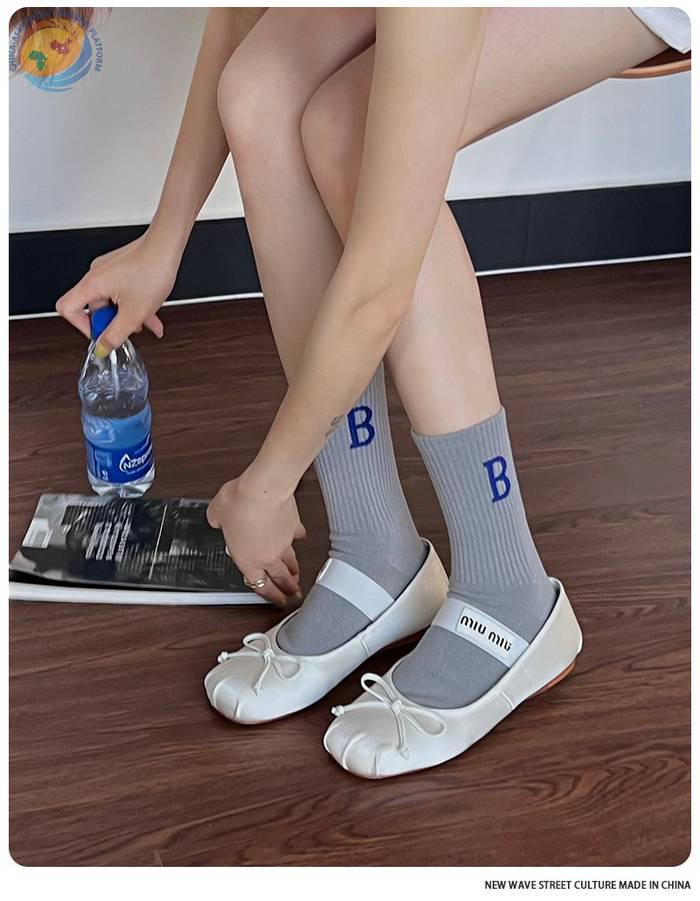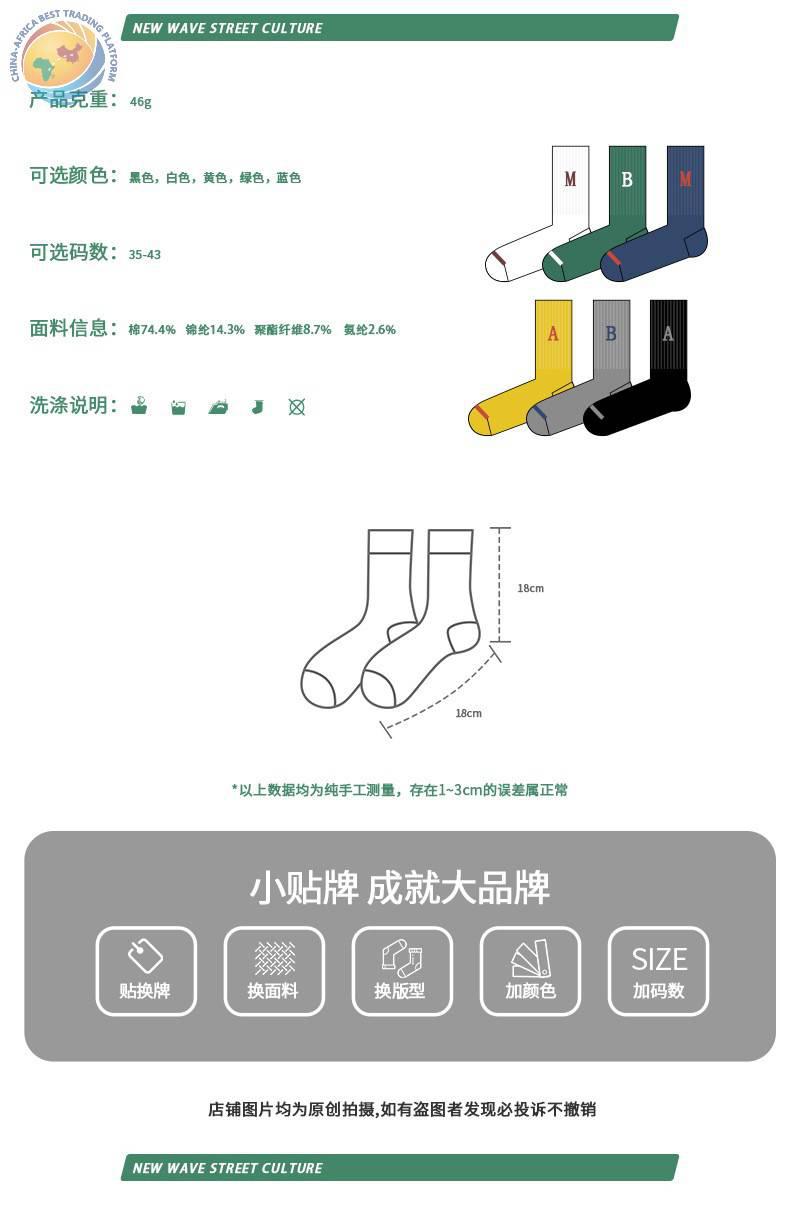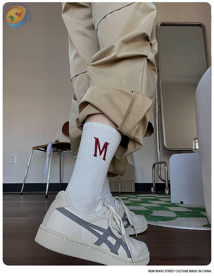 plusox日系高螺纹口中筒袜子ins女袜纯色字母棉袜四季运动情侣袜