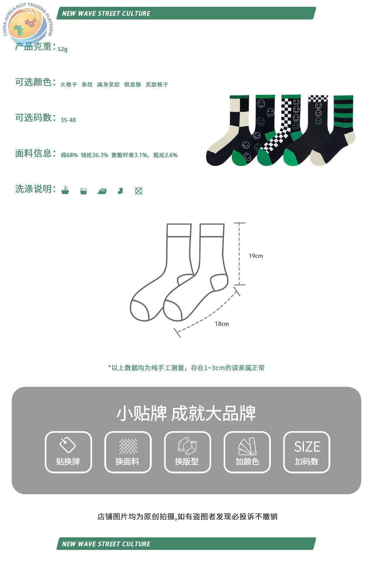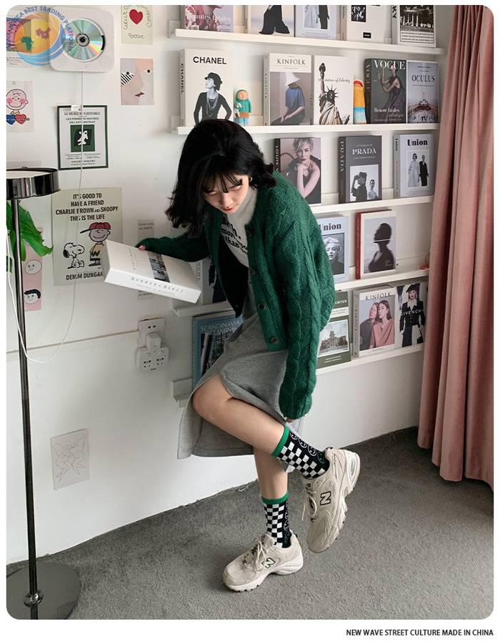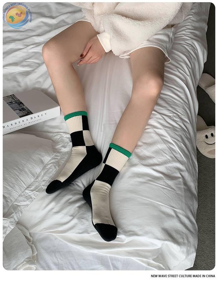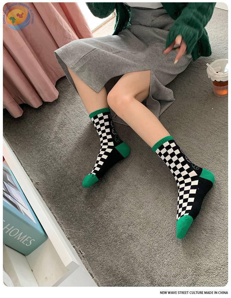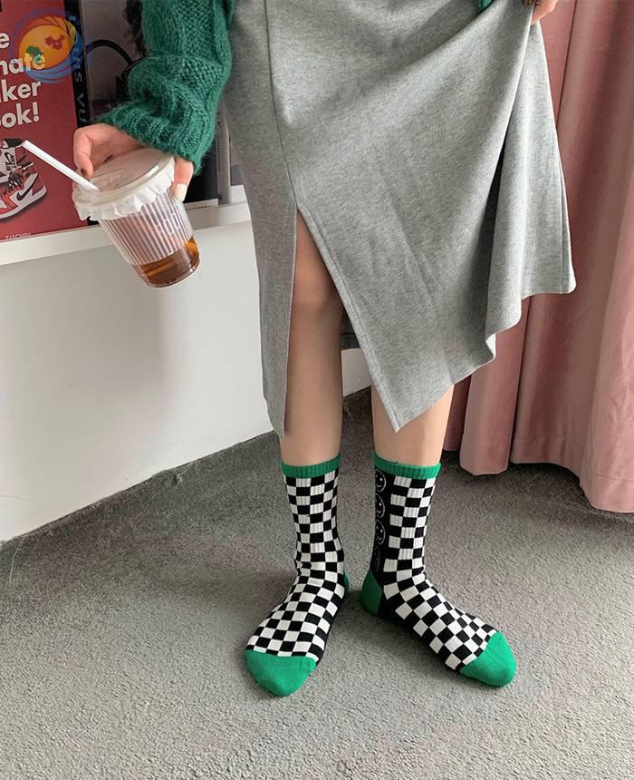 plusox 棋盘格袜子女秋冬ins潮春秋中筒袜潮流街头滑板潮牌男长袜