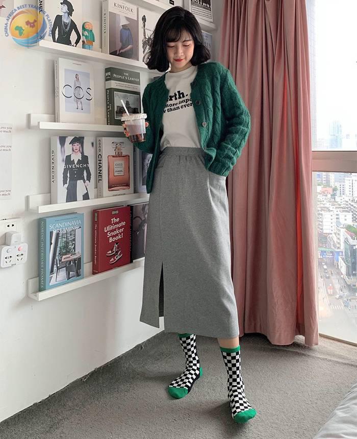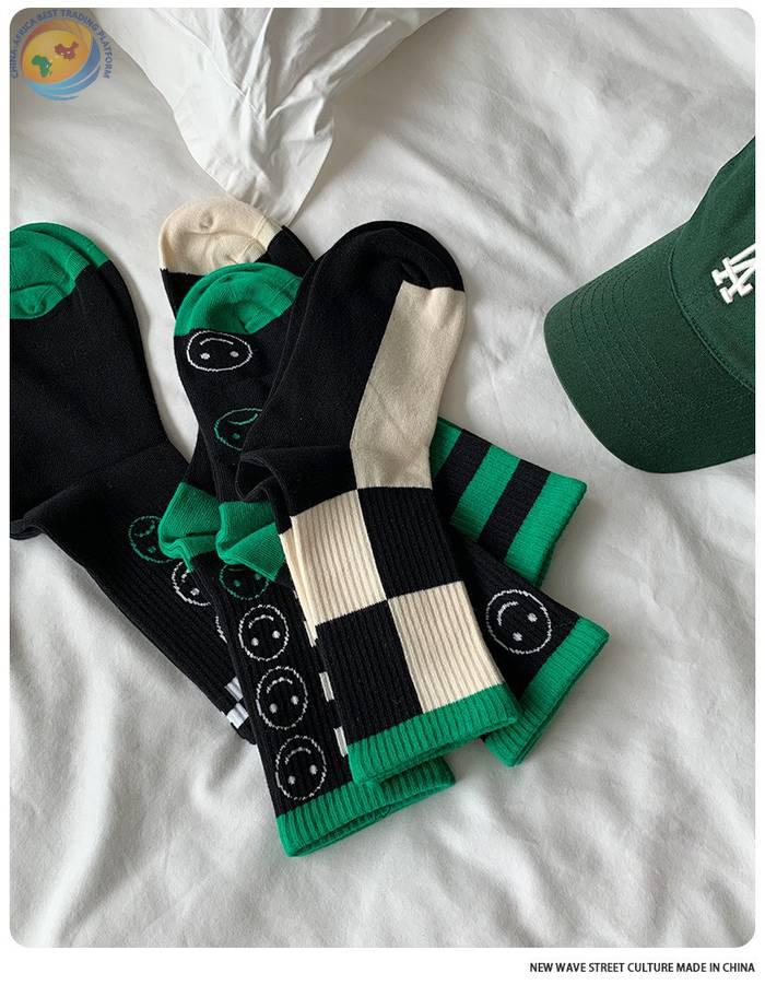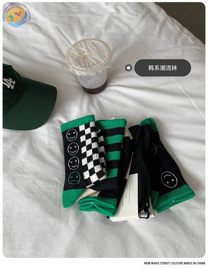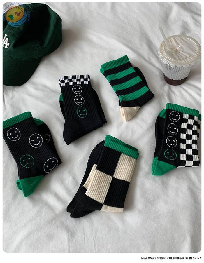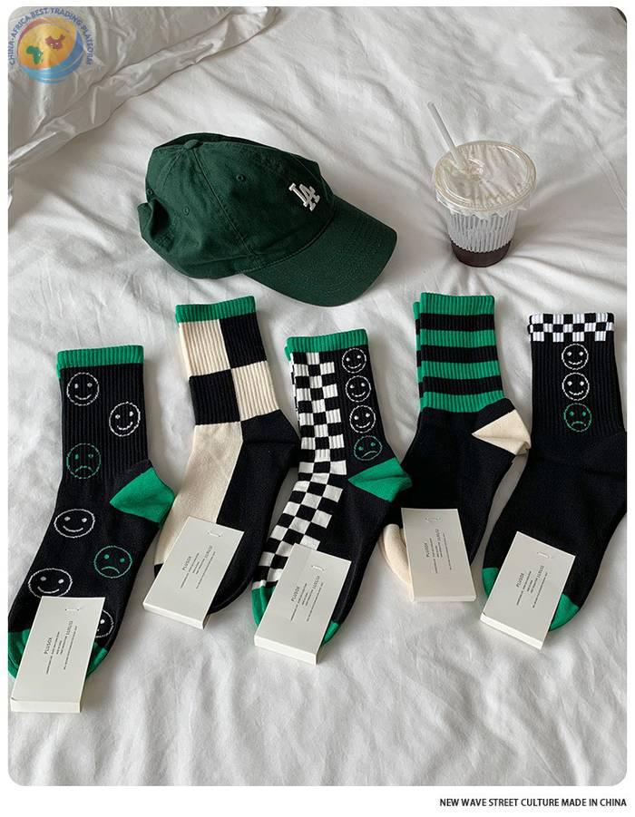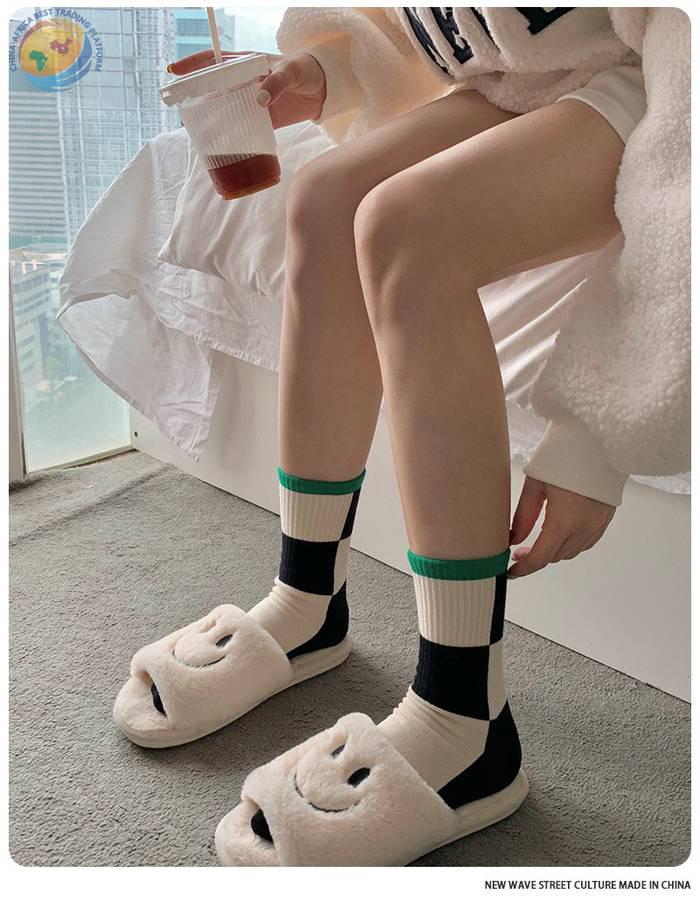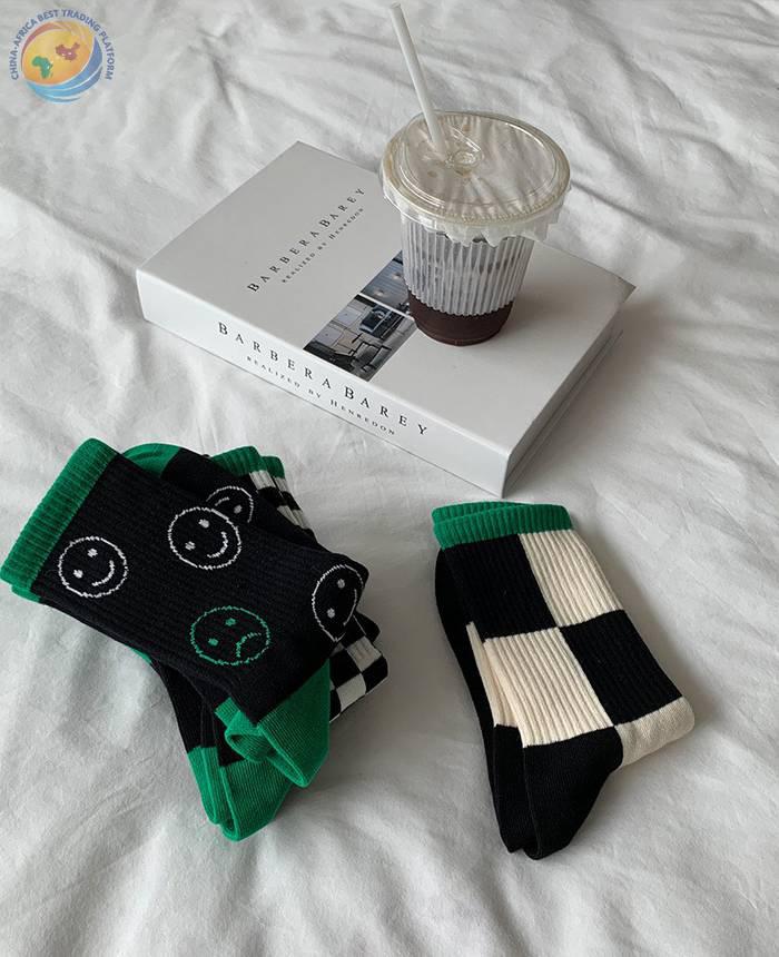 plusox 棋盘格袜子女秋冬ins潮春秋中筒袜潮流街头滑板潮牌男长袜