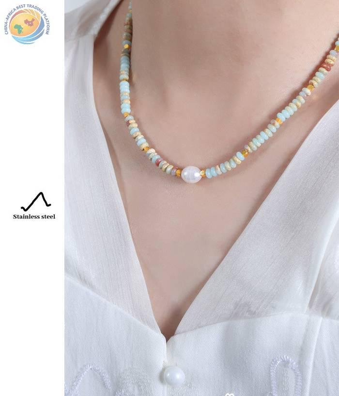 跨境新款创意小众复古宫廷风华丽时尚手工串珠锁骨链珍珠轻奢项链