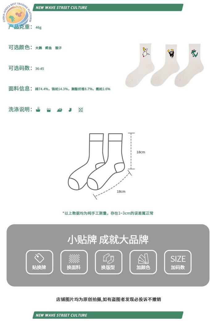 plusox潮牌街头中筒袜潮流袜子男篮球长袜大鹅猴子鳄鱼运动风女冬