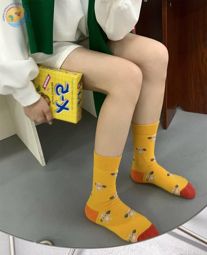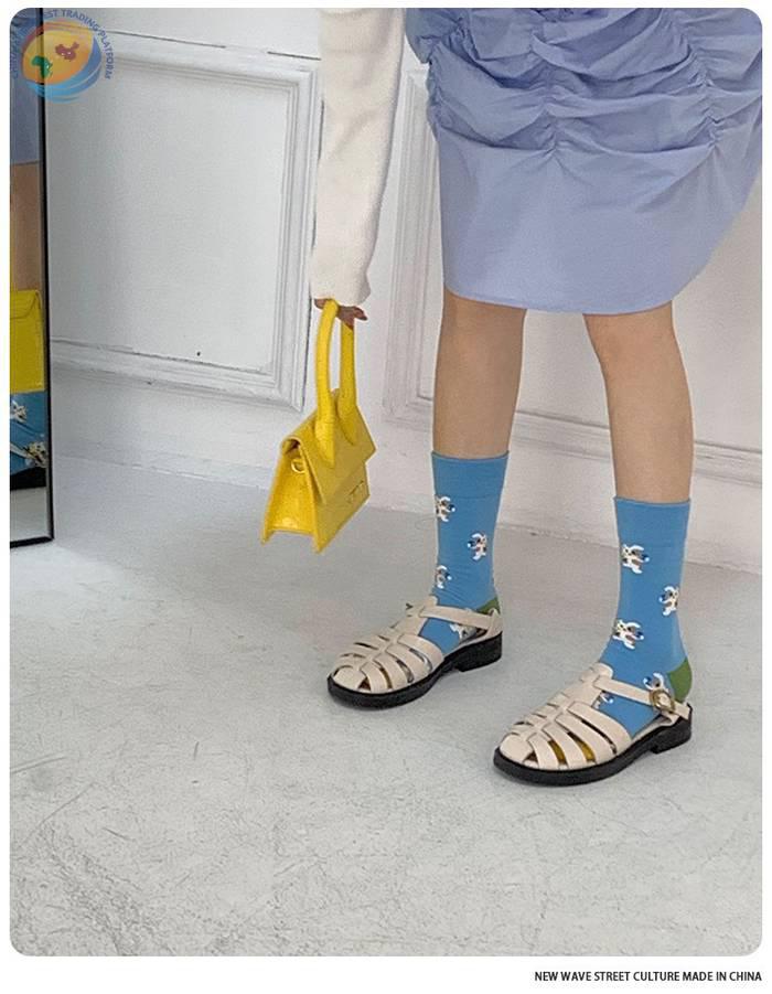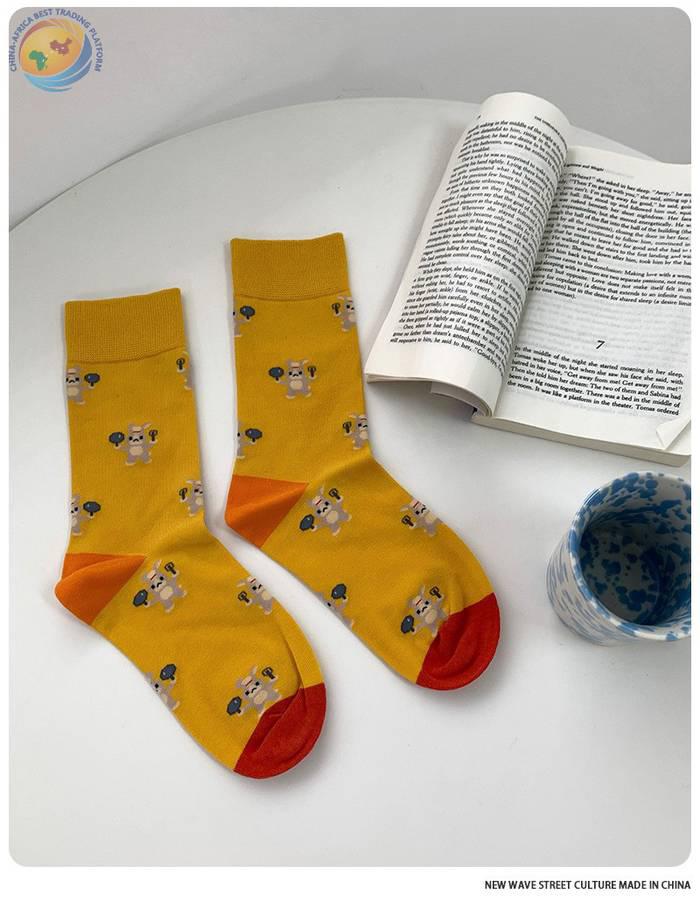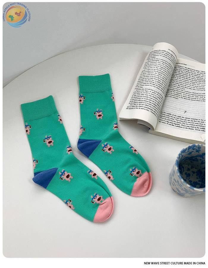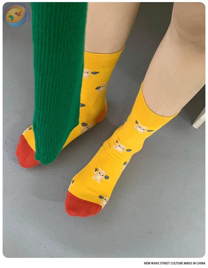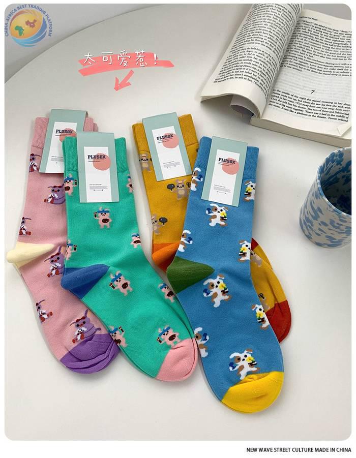 plusox袜子女秋季ins潮日系可爱街头中筒袜春秋卡通潮牌棉 长袜冬