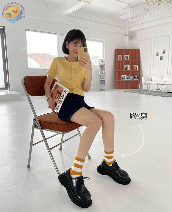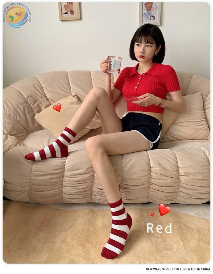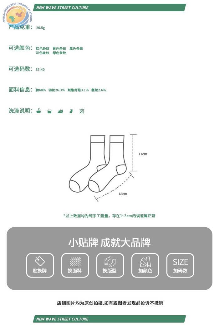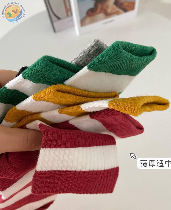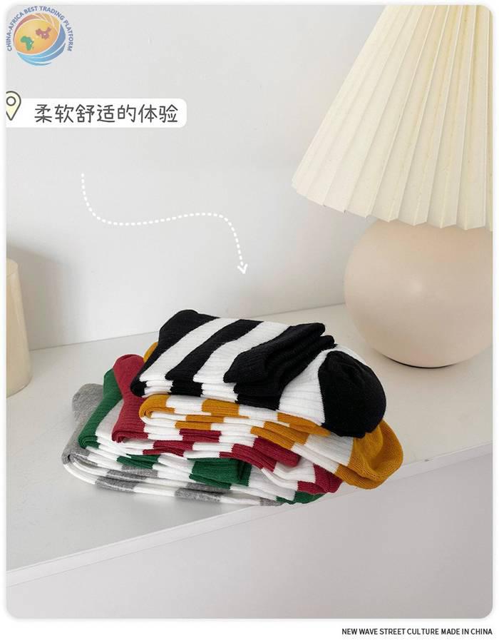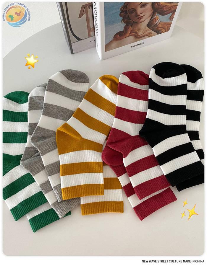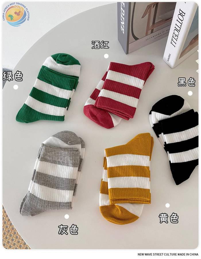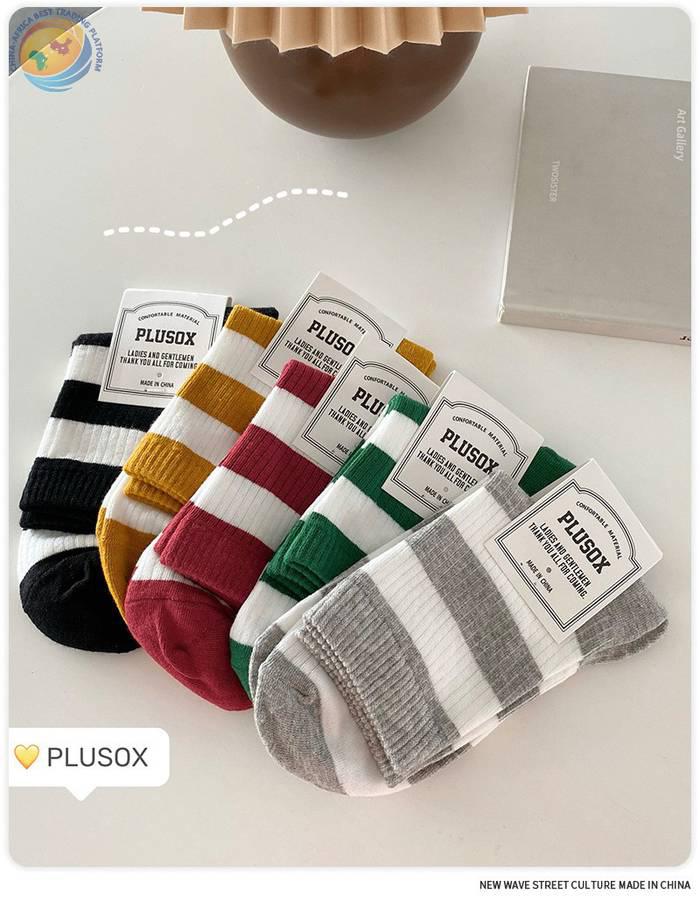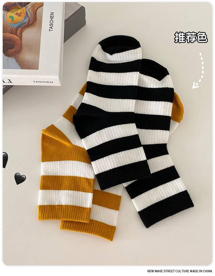 plusox条纹拼色撞色中筒短袜子女潮学院风春夏款透气舒适简约棉袜