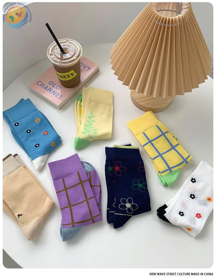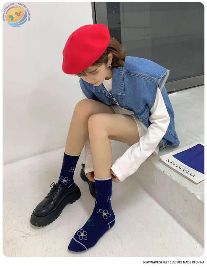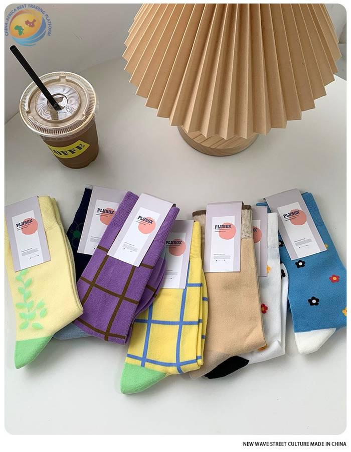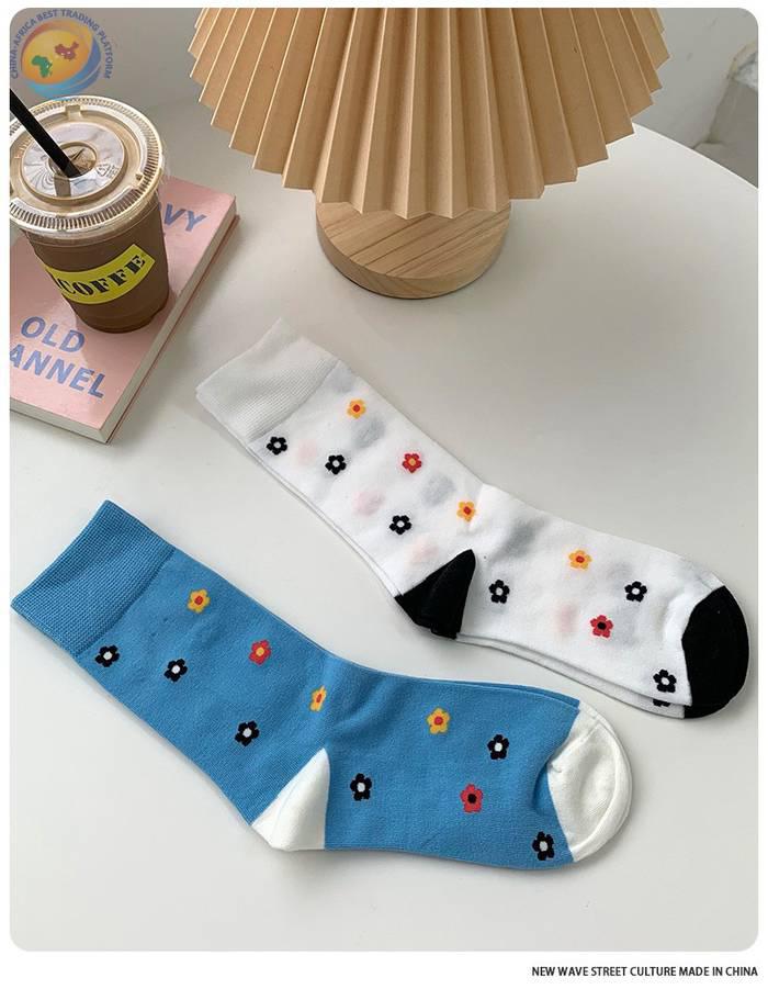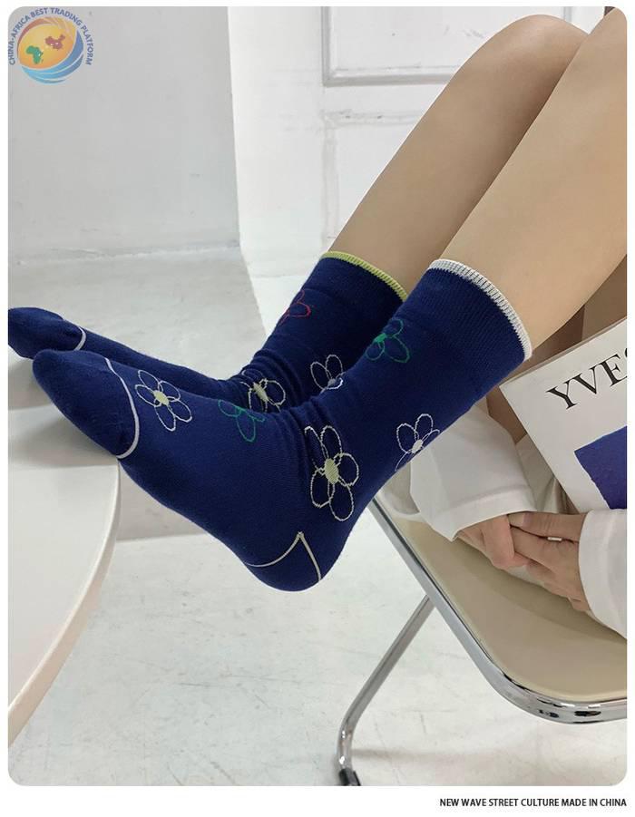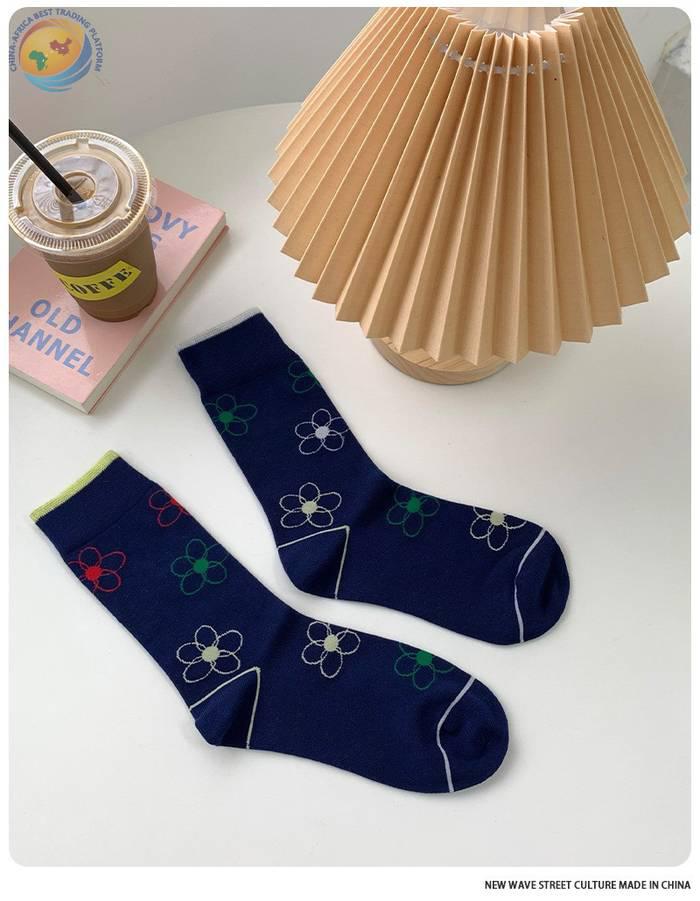 plusox 袜子女ins潮中筒袜秋冬花朵小花彩色潮牌学院风学生长袜棉