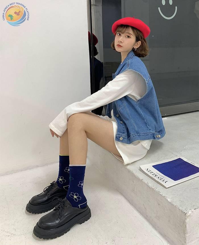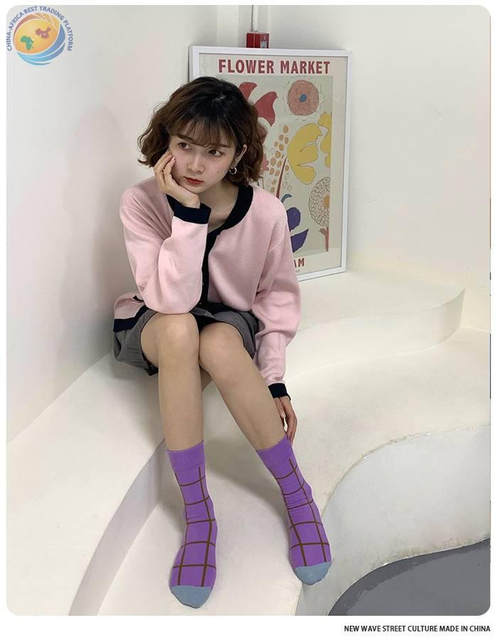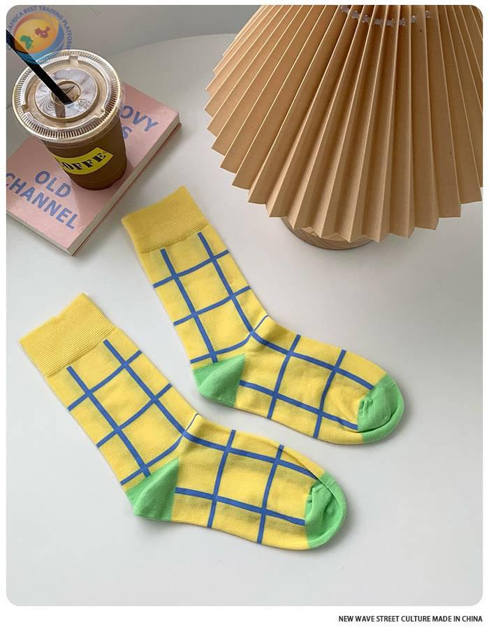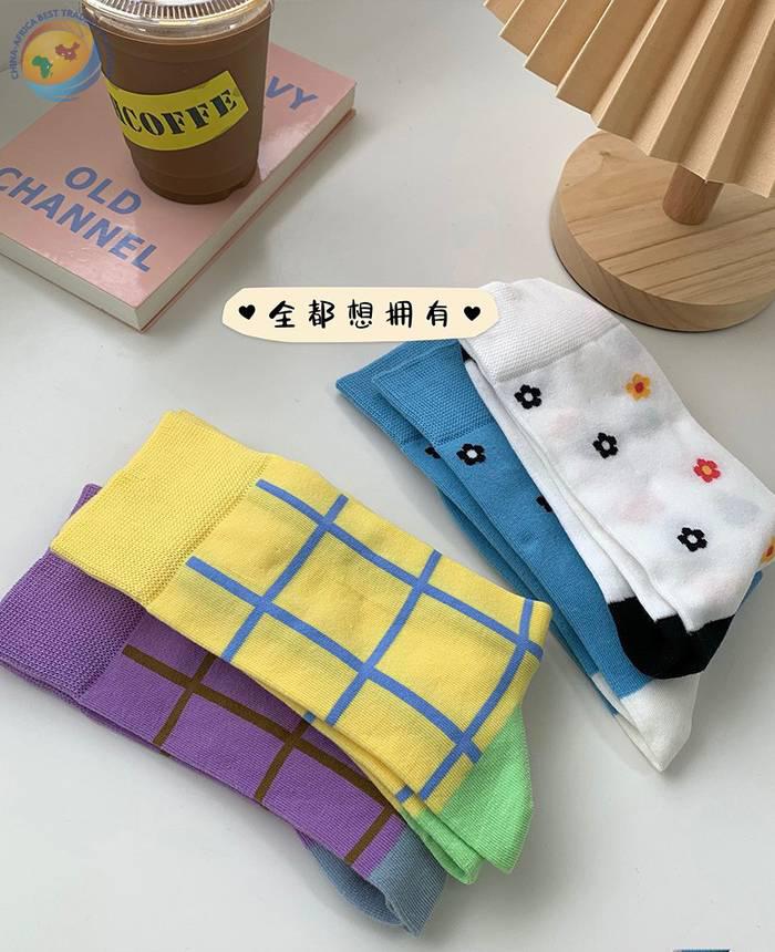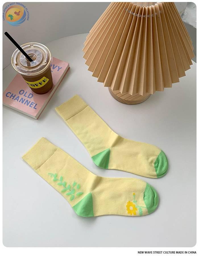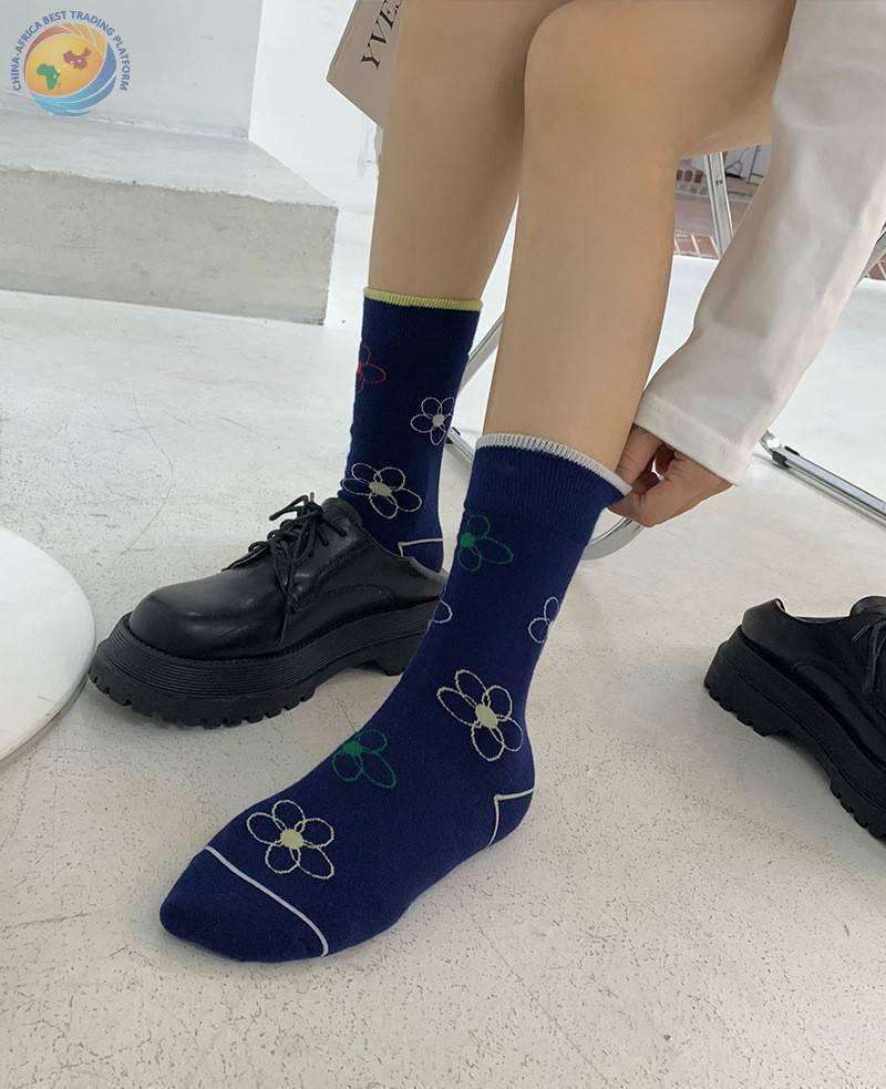 plusox 袜子女ins潮中筒袜秋冬花朵小花彩色潮牌学院风学生长袜棉