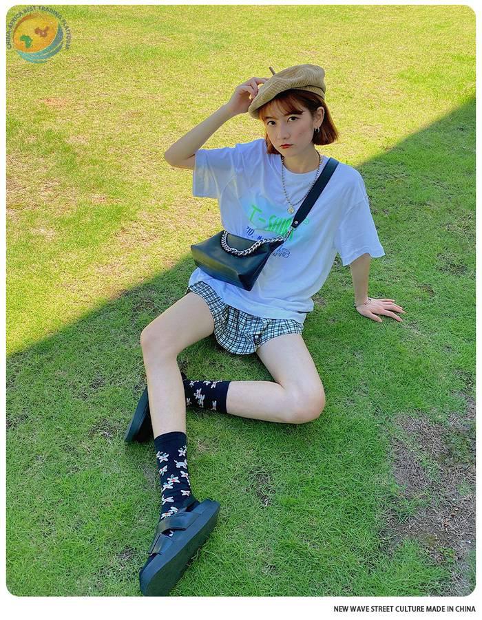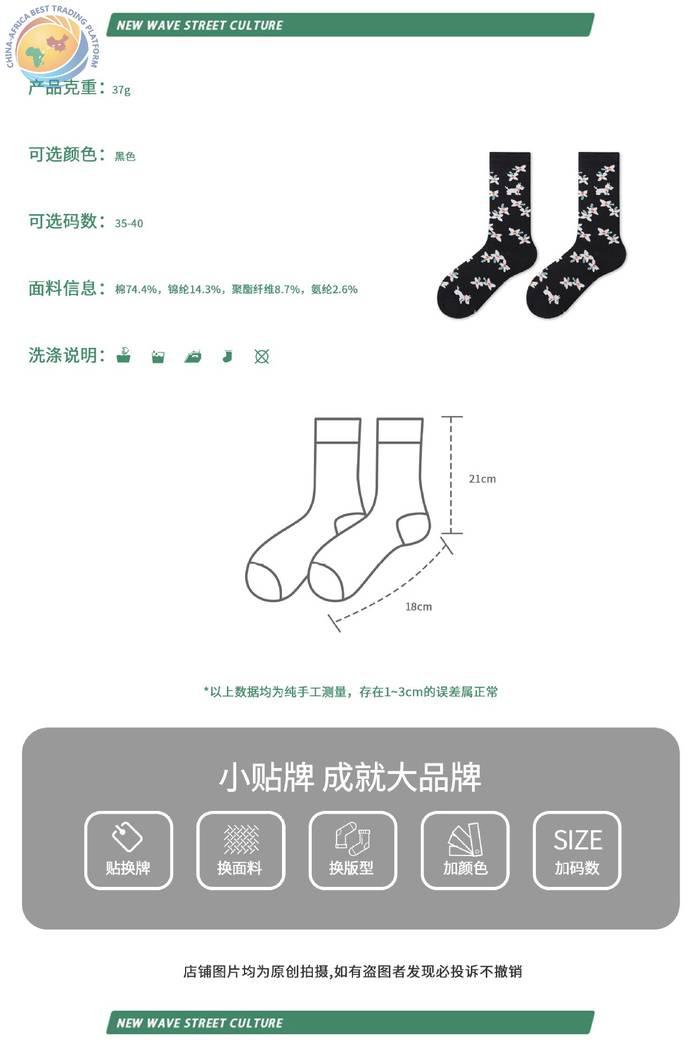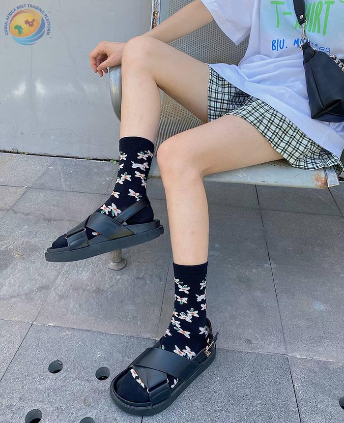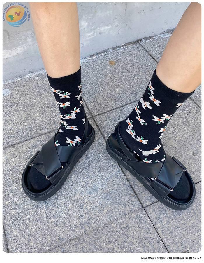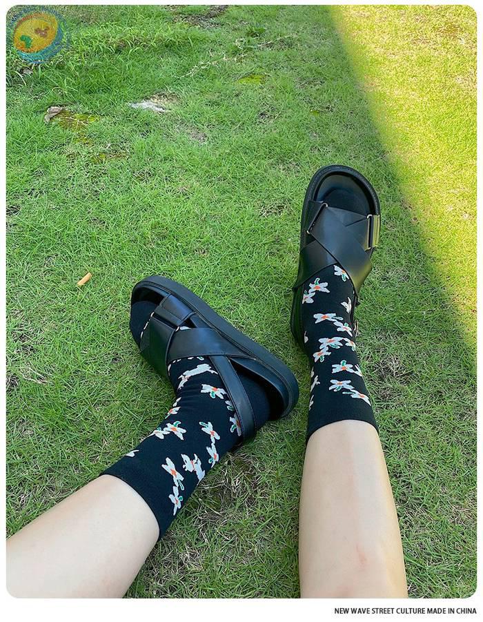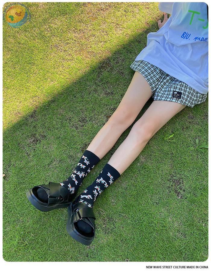 Plusox 新品日系少女花朵小狗复古男女袜ins潮中筒袜 棉袜 潮袜