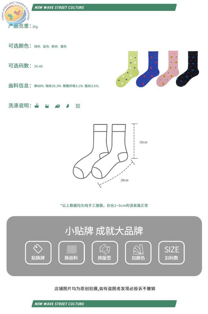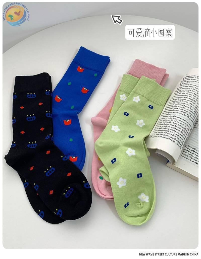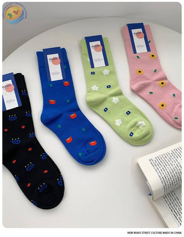 plusox 袜子女秋季ins潮日系可爱街头中筒袜春秋卡通潮牌棉长袜冬