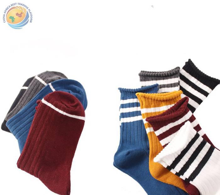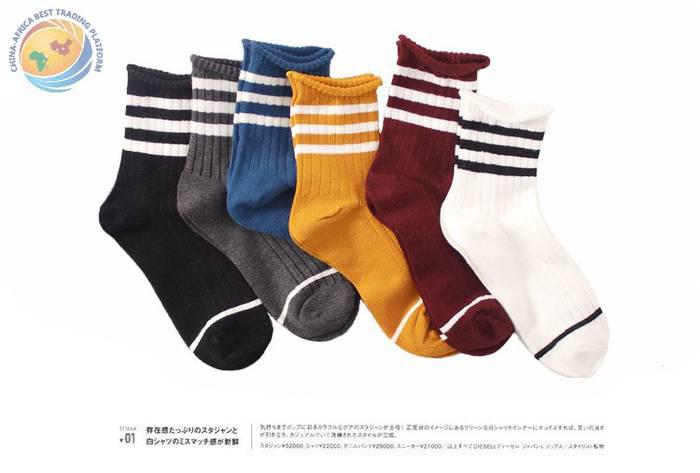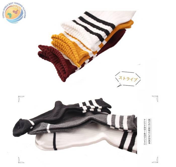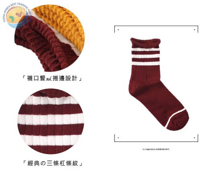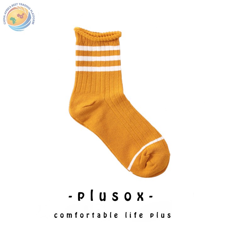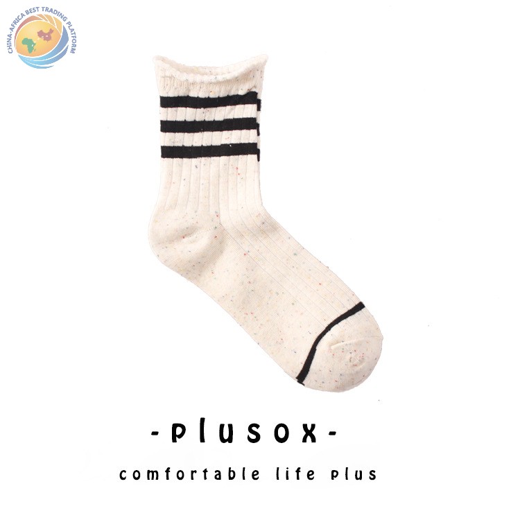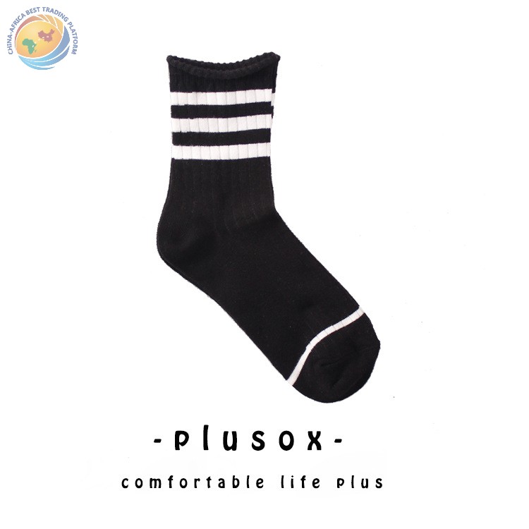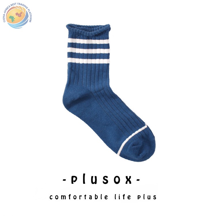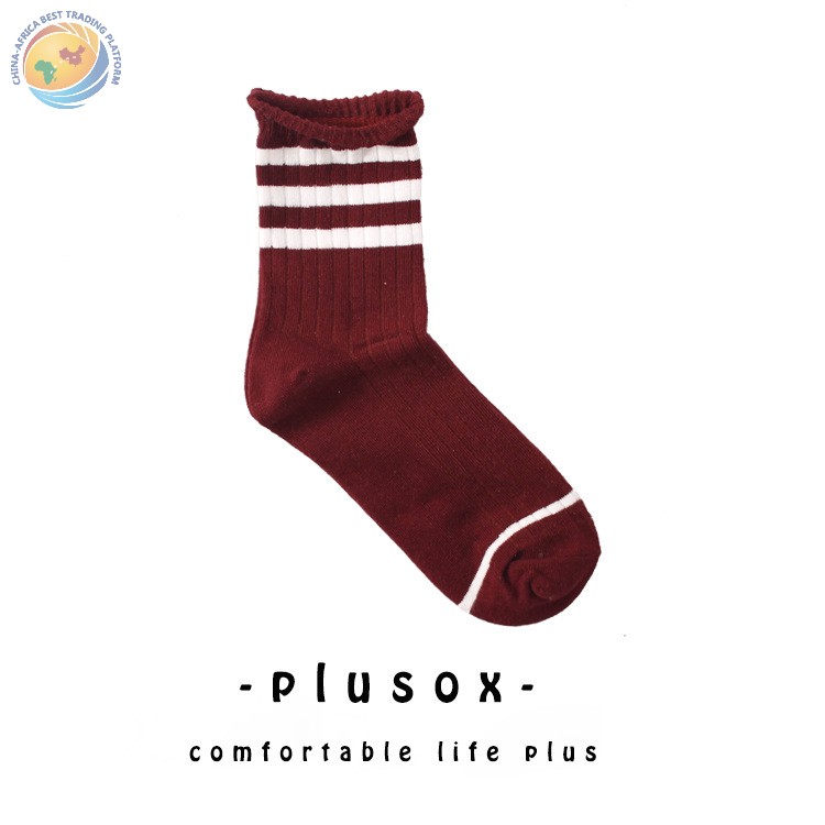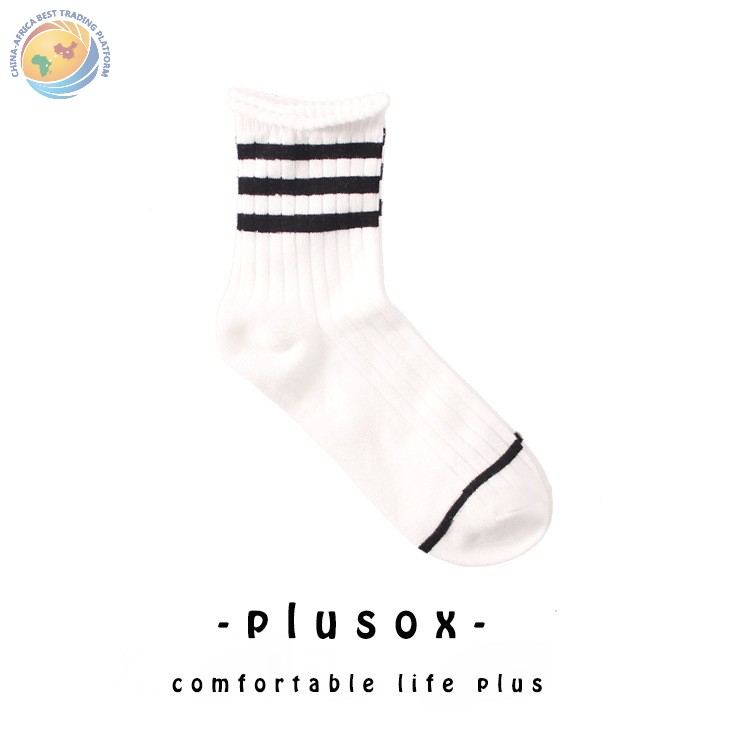 Plusox 运动条纹潮日系纯色三条杠复古卷边基础款袜子女 棉袜 短