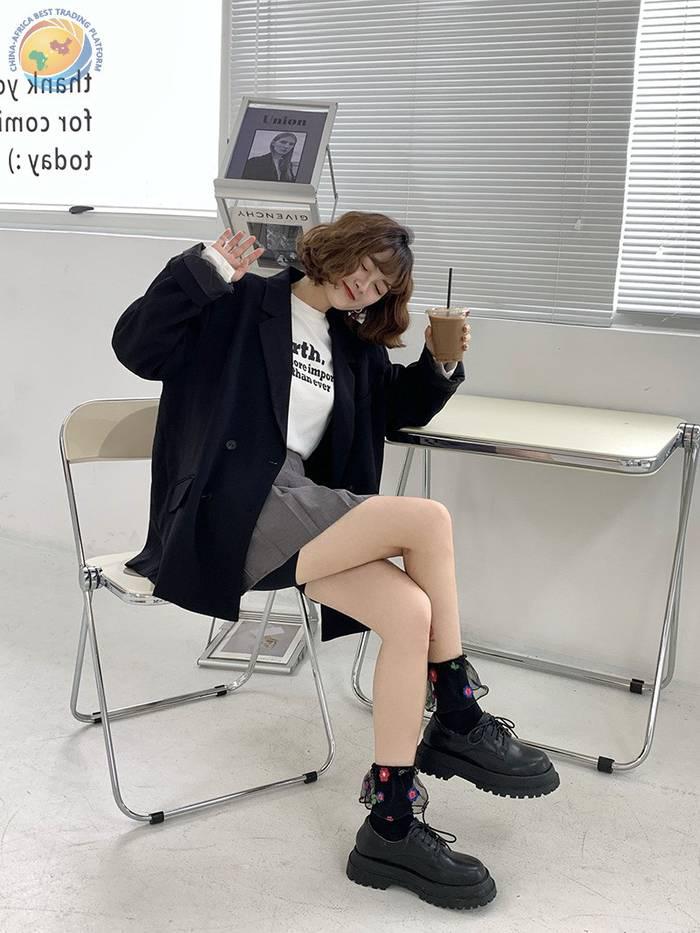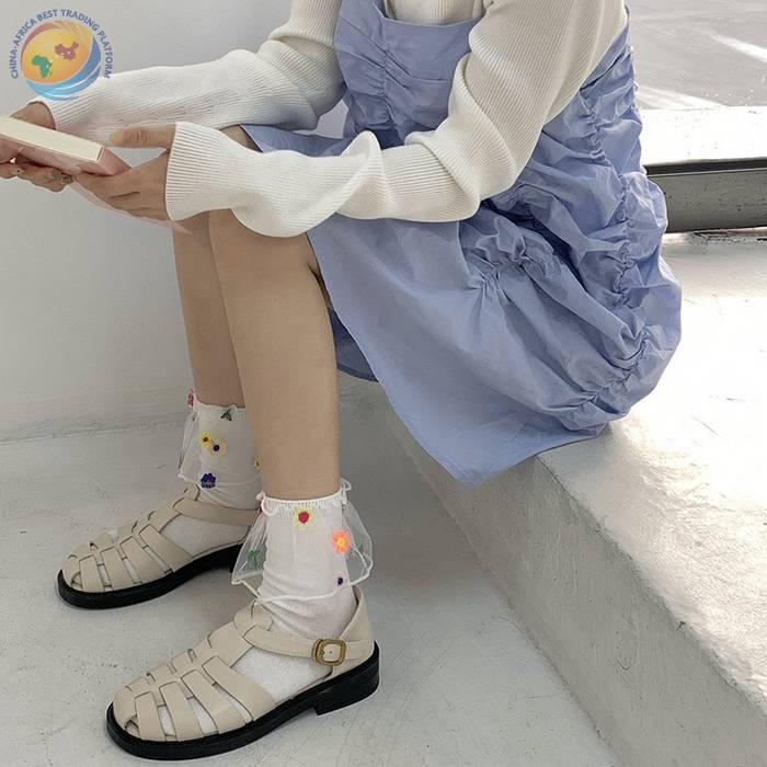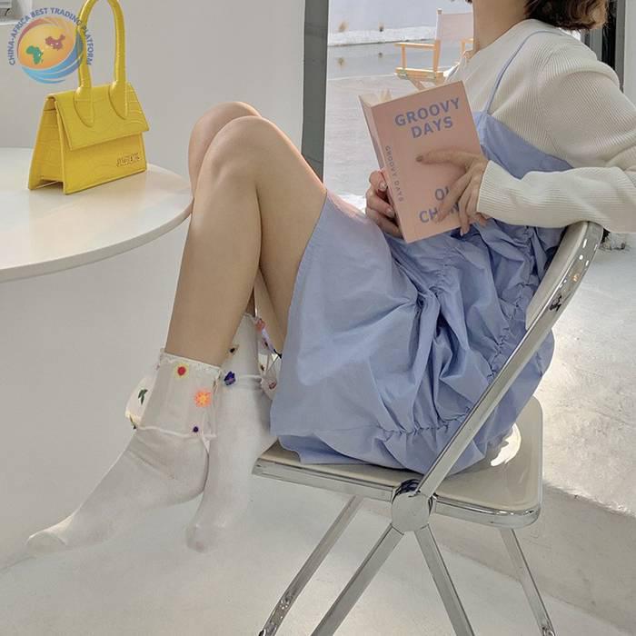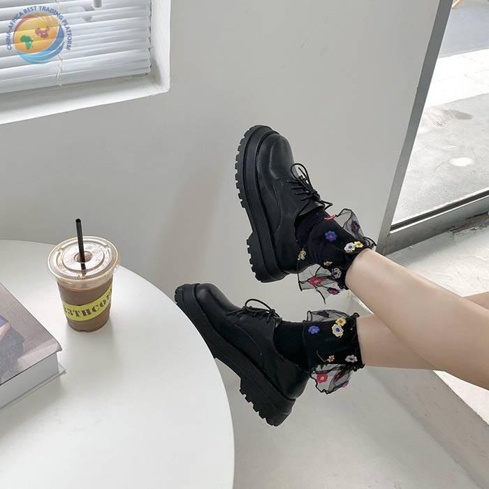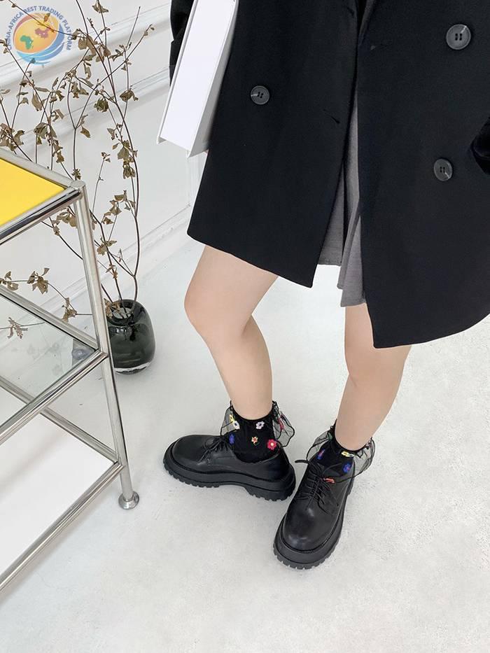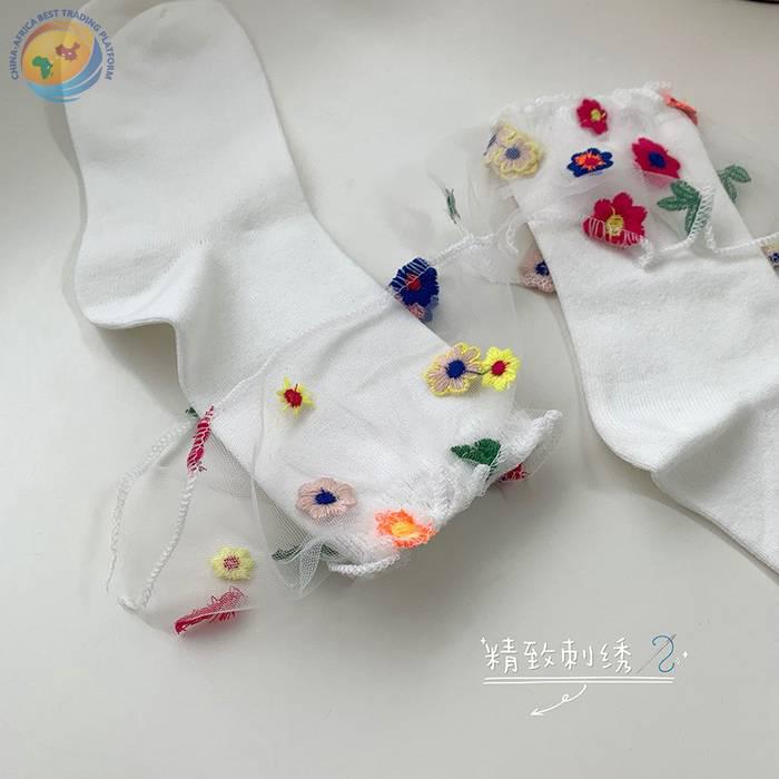 plusox 秋冬中筒袜女士韩版ins潮流百搭秋天少女蕾丝花边碎花袜子
