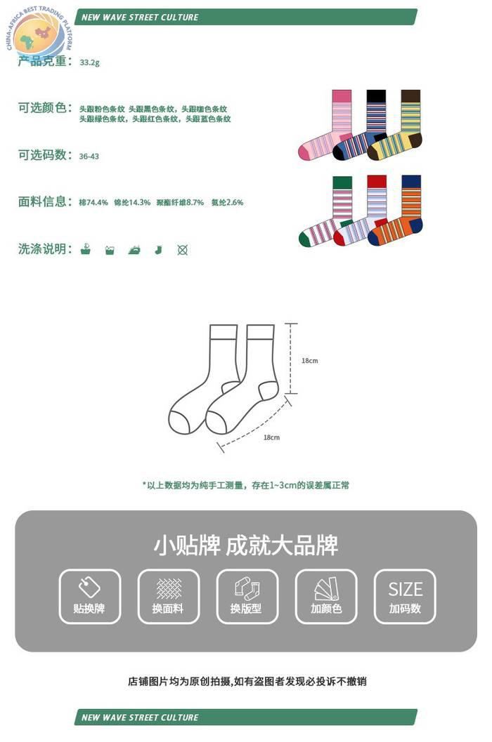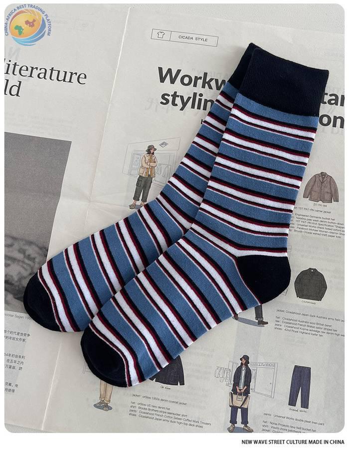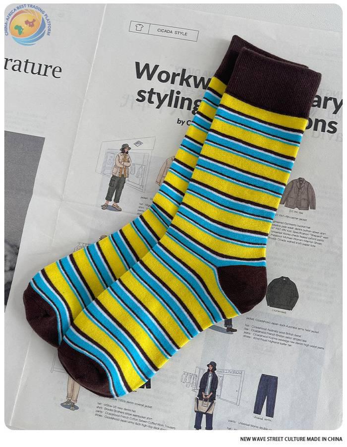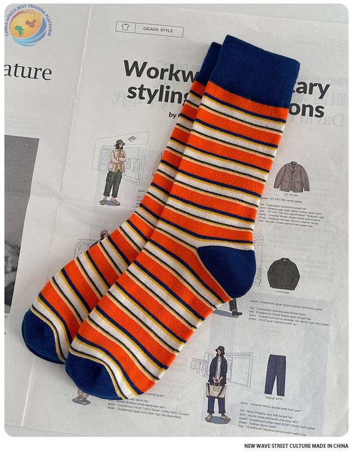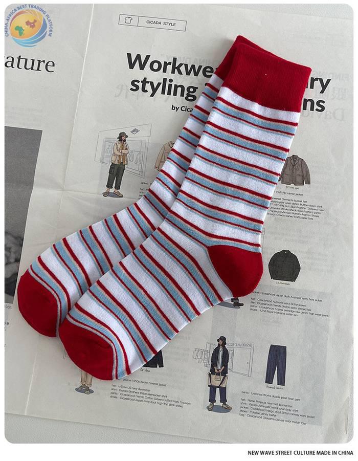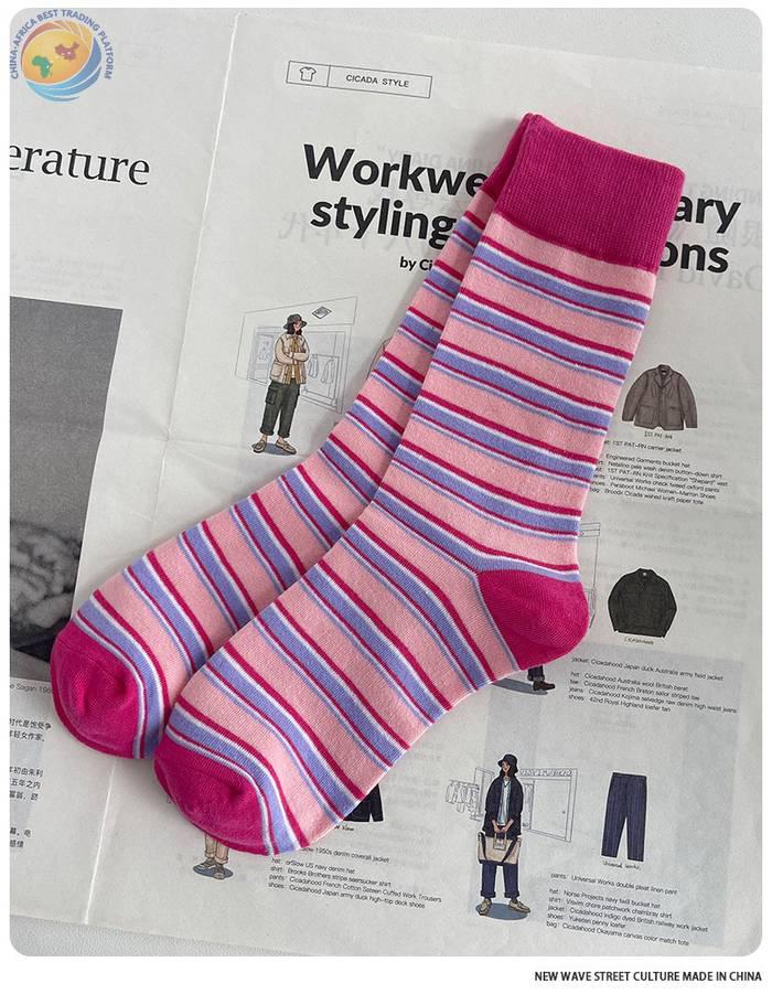 plusox秋冬季韩国条纹袜子女中筒袜ins潮学生简约百搭长筒堆堆袜