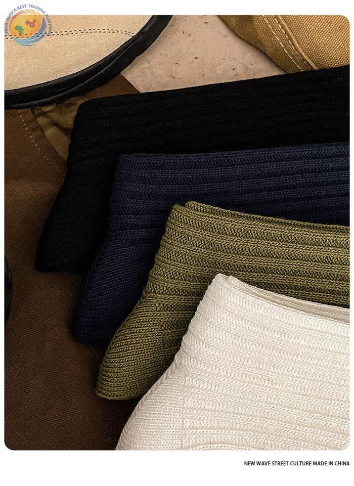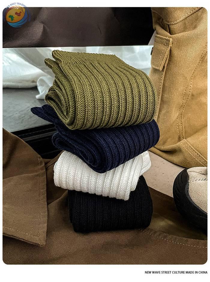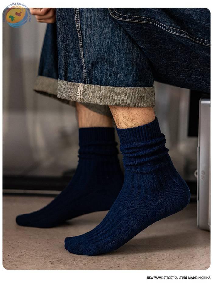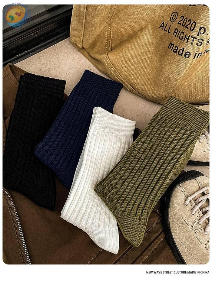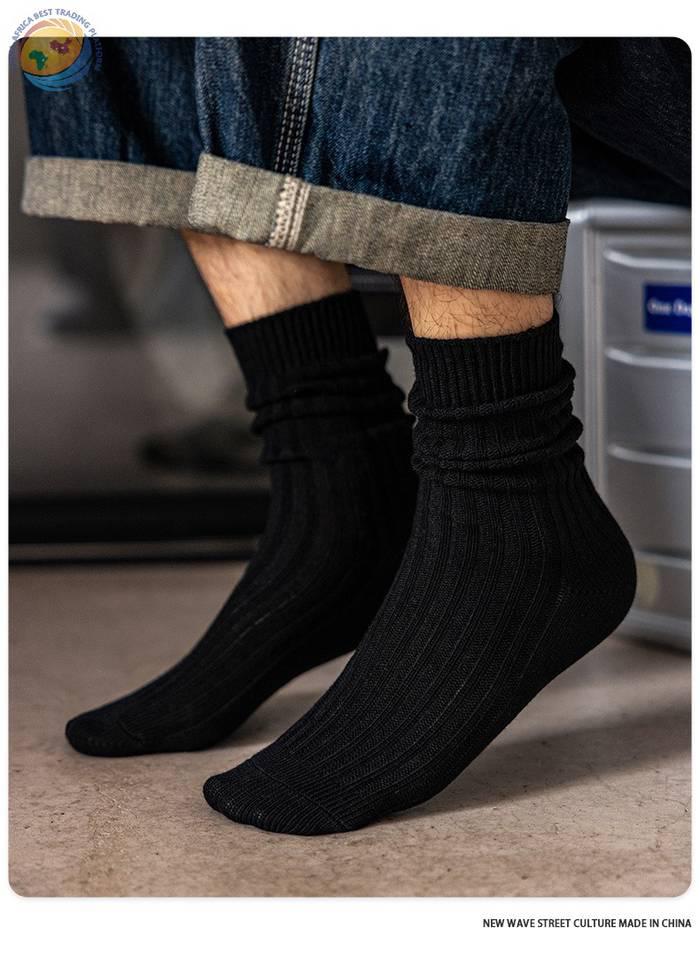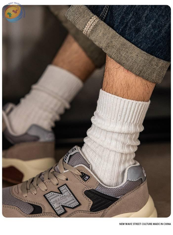 plusox潮牌ins日系复古袜子男士棉中筒秋冬季粗线长袜吸汗堆堆袜