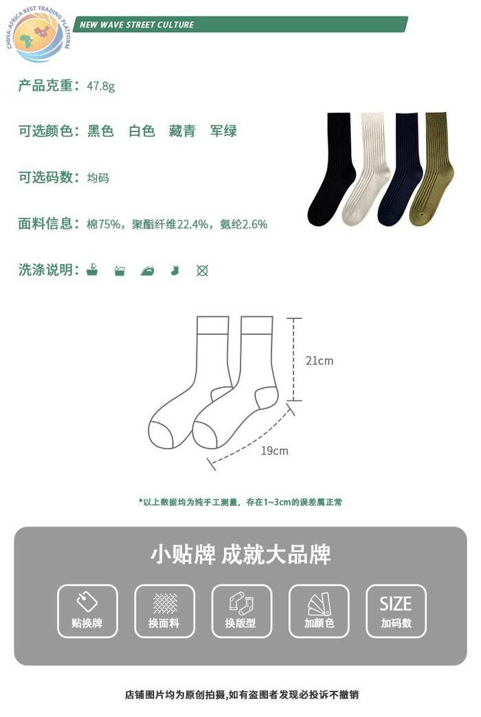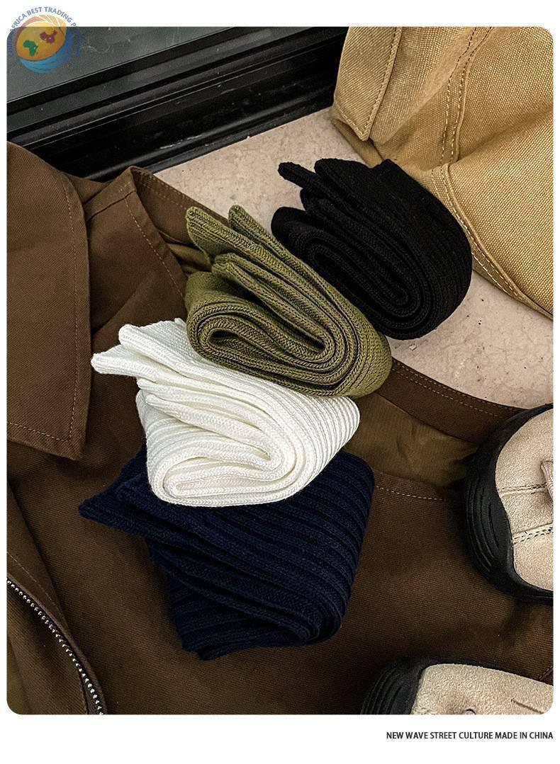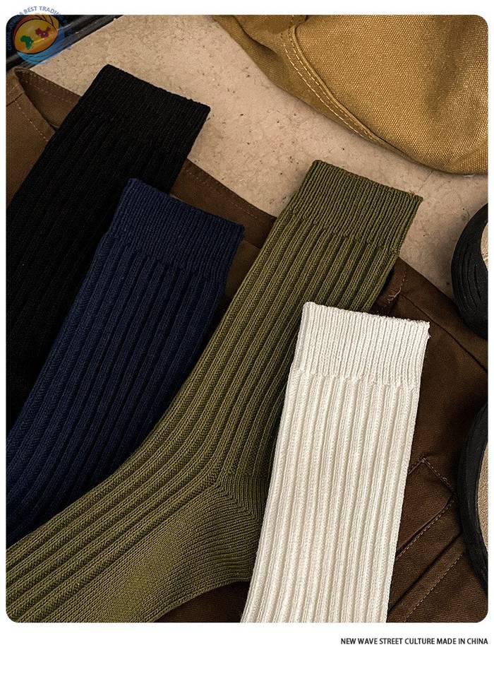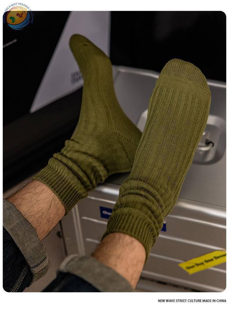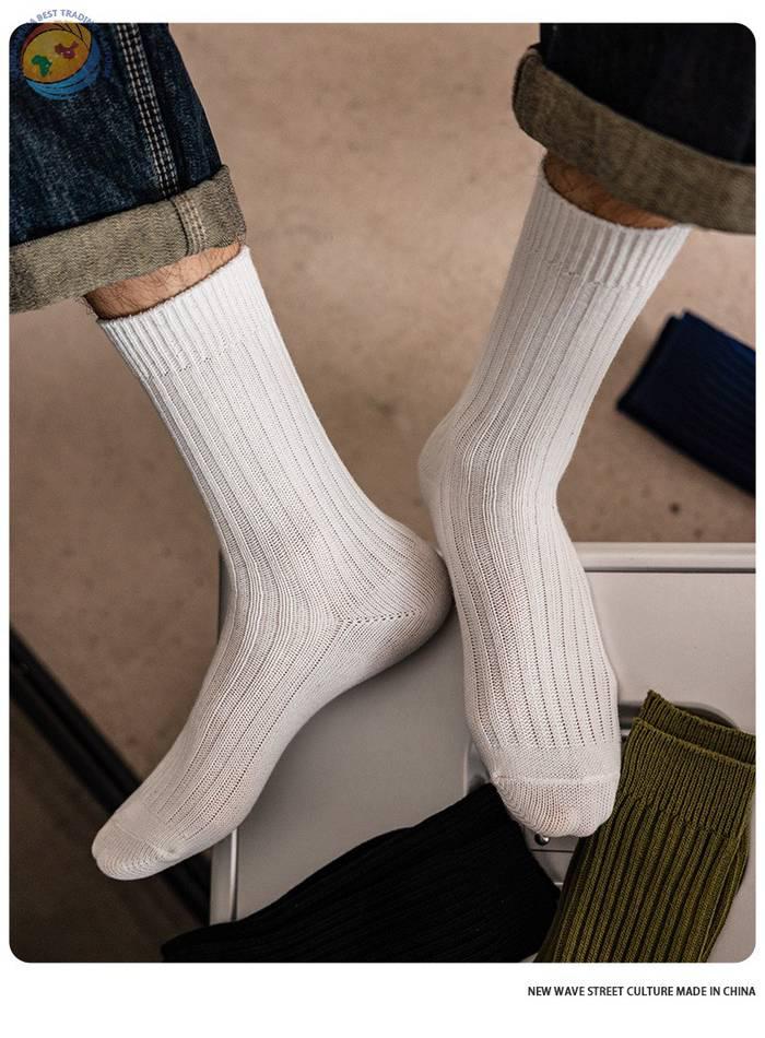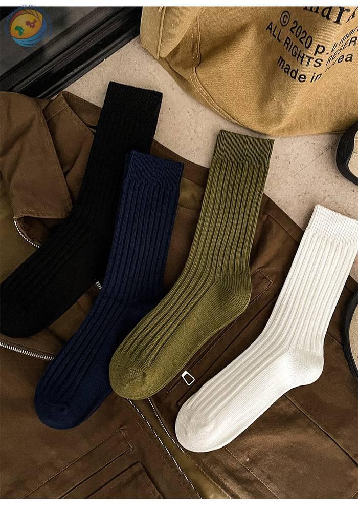 plusox潮牌ins日系复古袜子男士棉中筒秋冬季粗线长袜吸汗堆堆袜