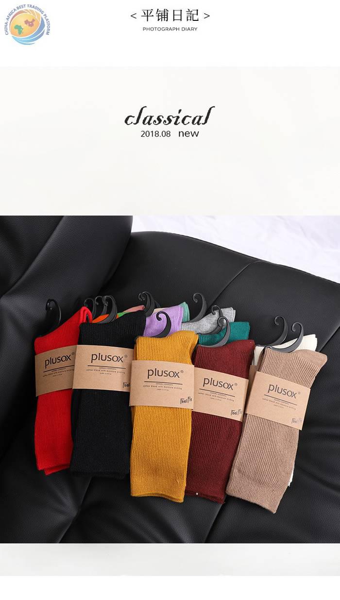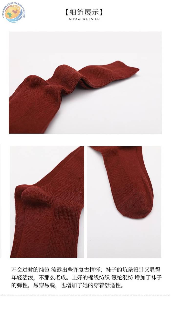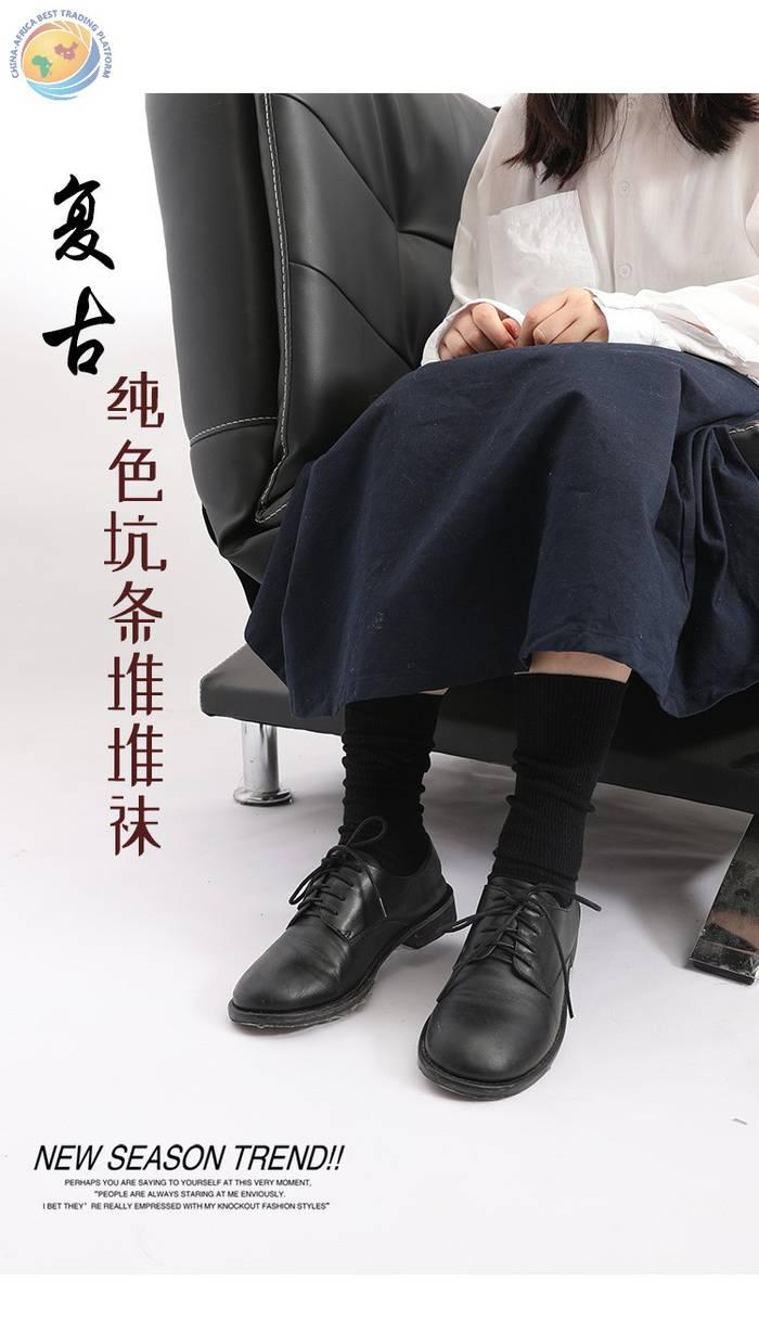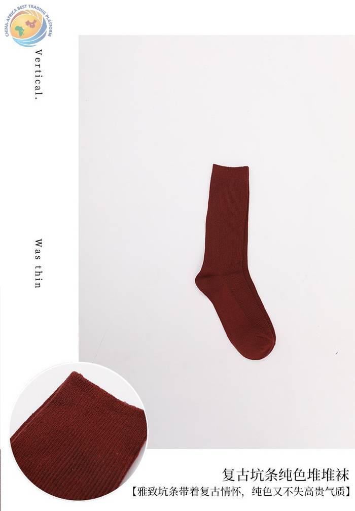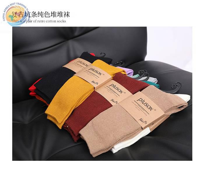 批发日系新款女士堆堆袜 秋季纯色中长筒棉袜 女士双针糖果色袜子