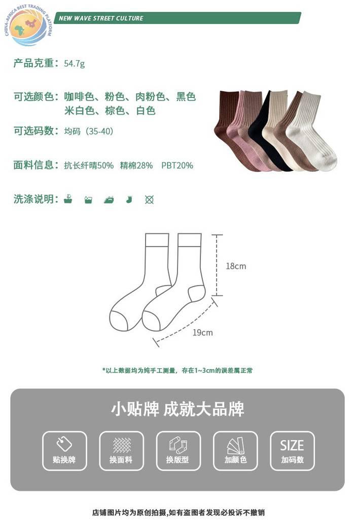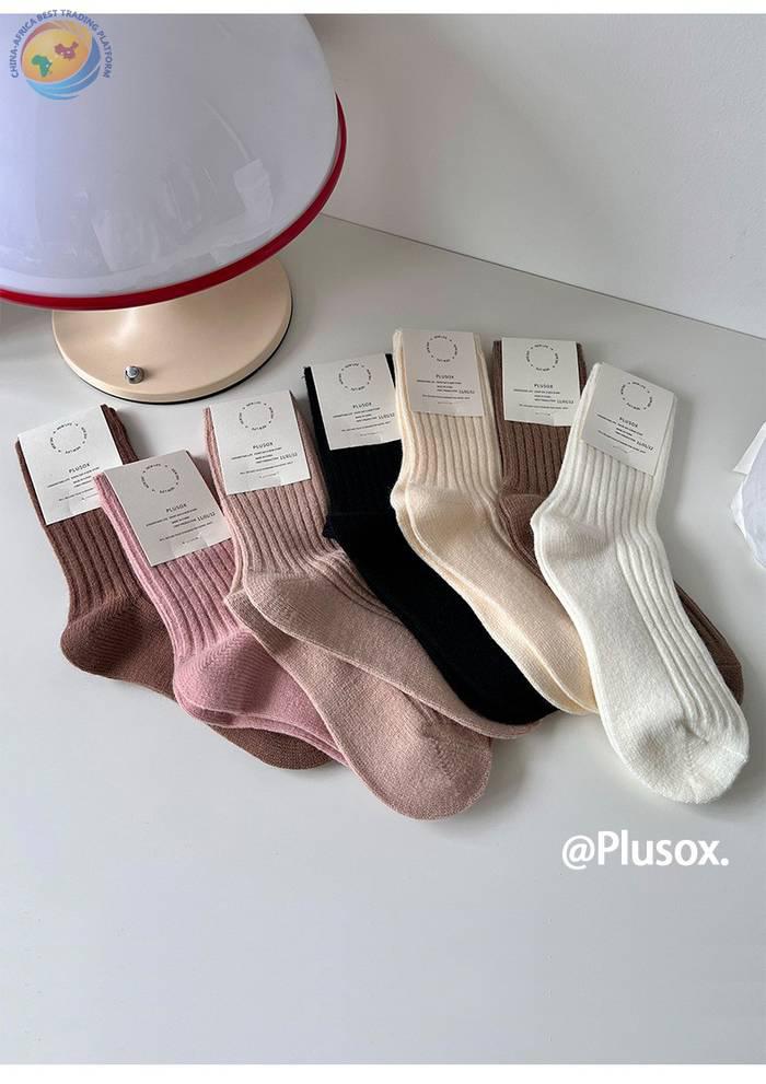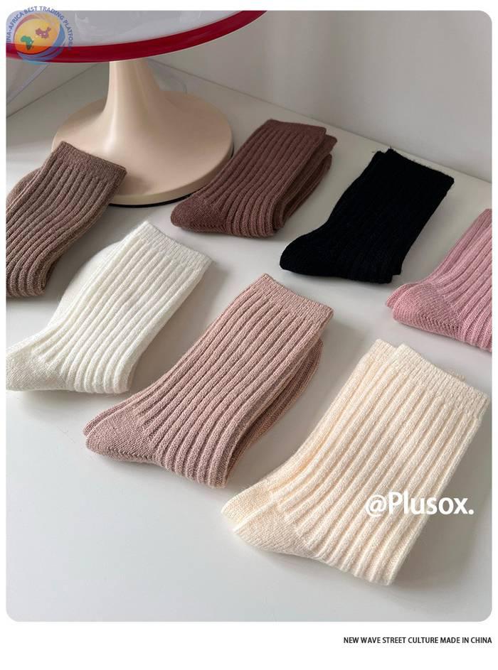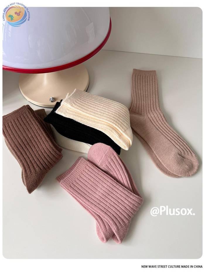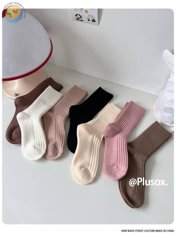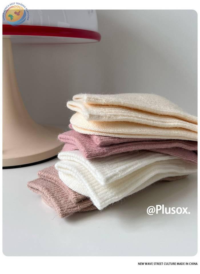 堆堆羊毛袜子女中筒袜白色冬季加厚保暖纯色长筒袜冬天咖色月子袜