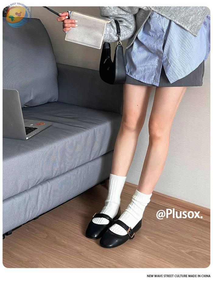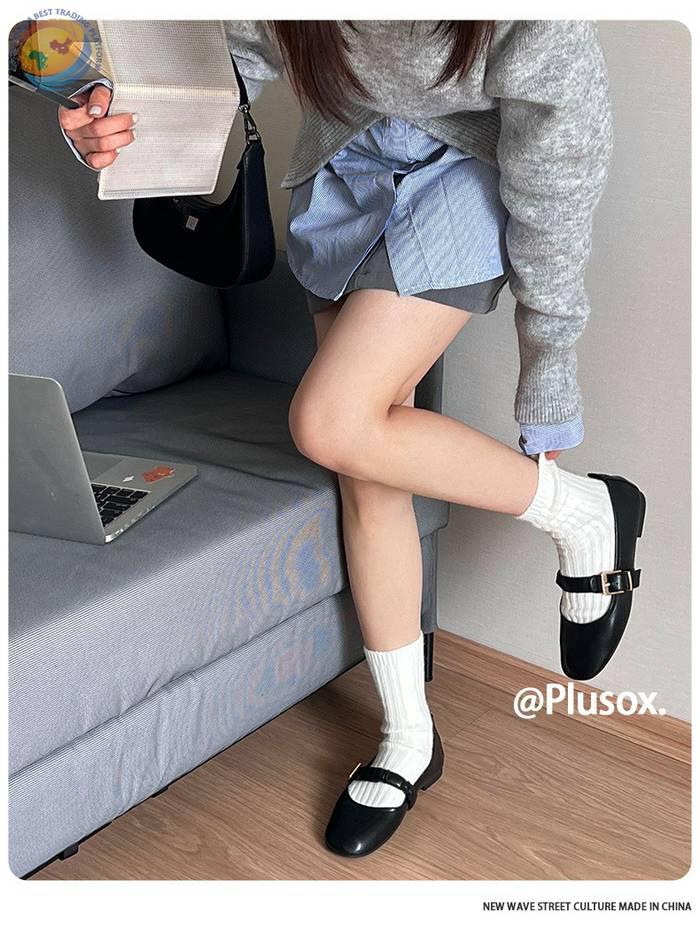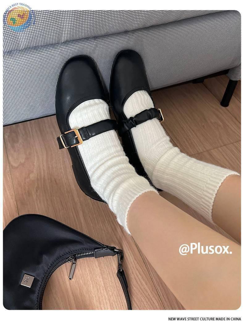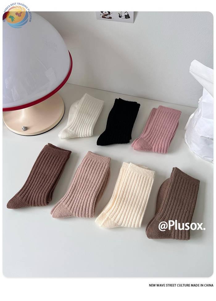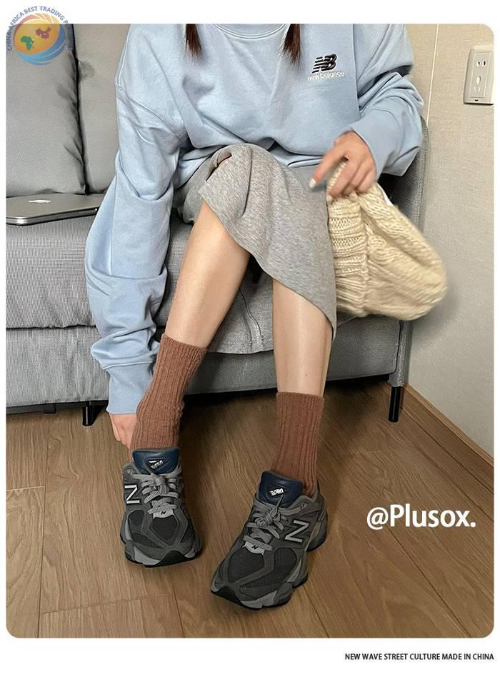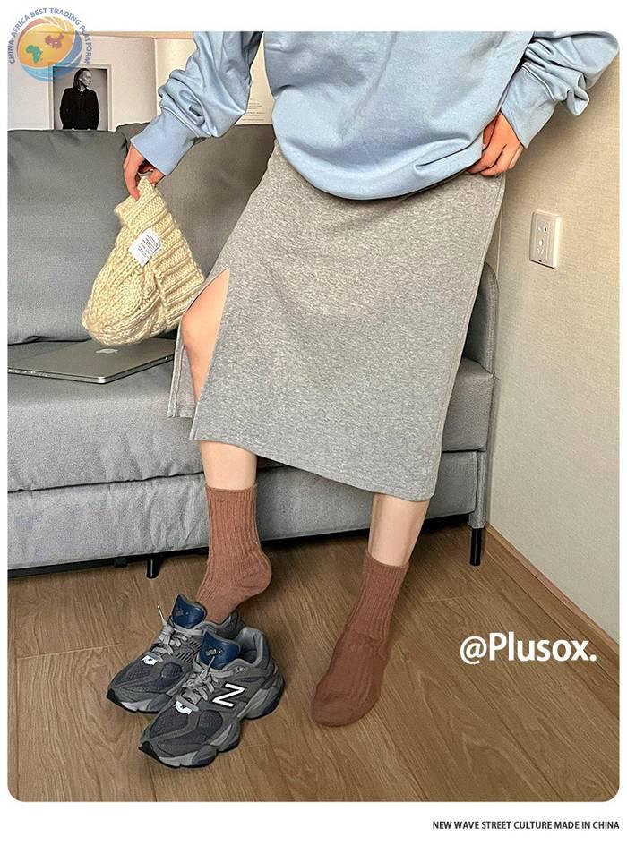 堆堆羊毛袜子女中筒袜白色冬季加厚保暖纯色长筒袜冬天咖色月子袜